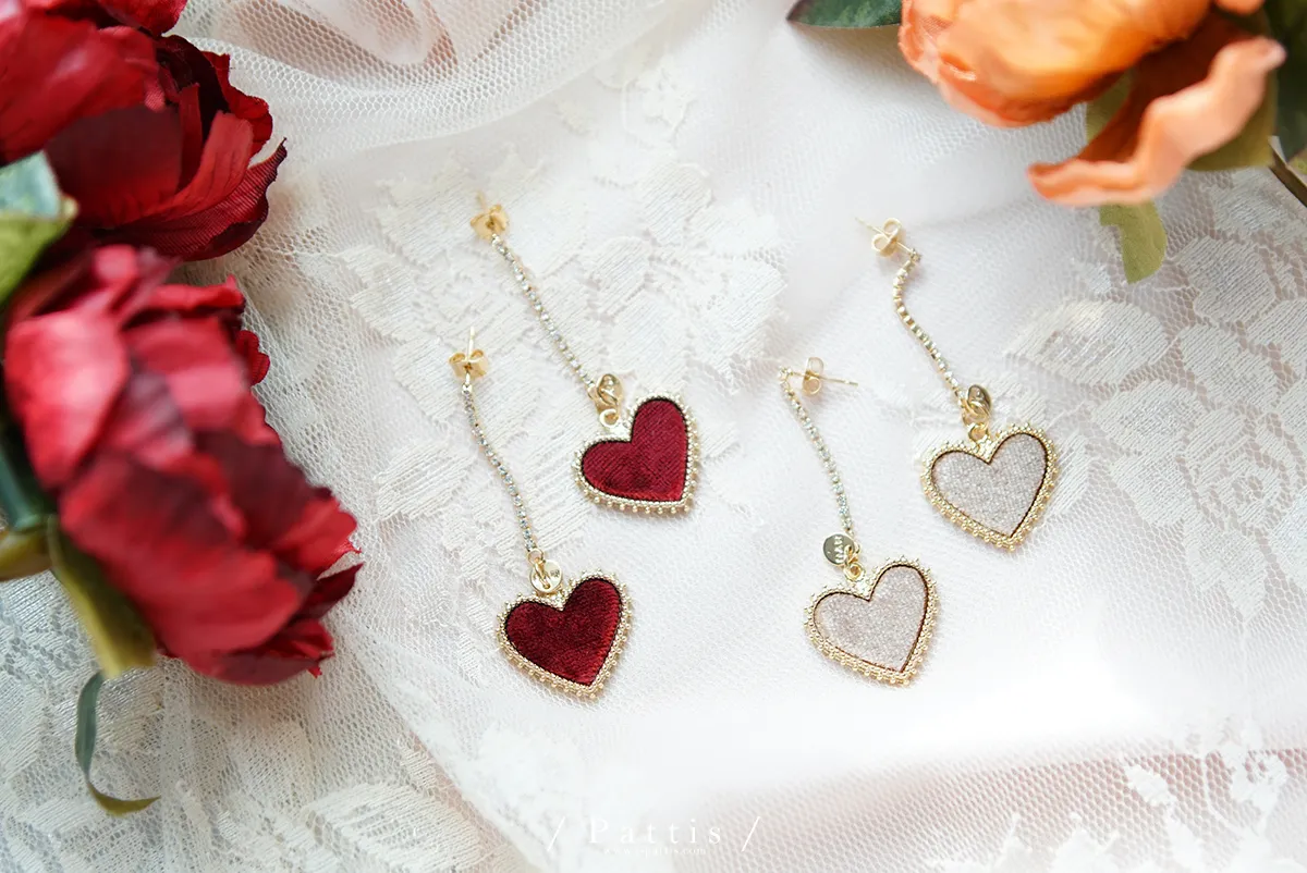 心臟戀人 | 金邊愛心耳環(金/紅)