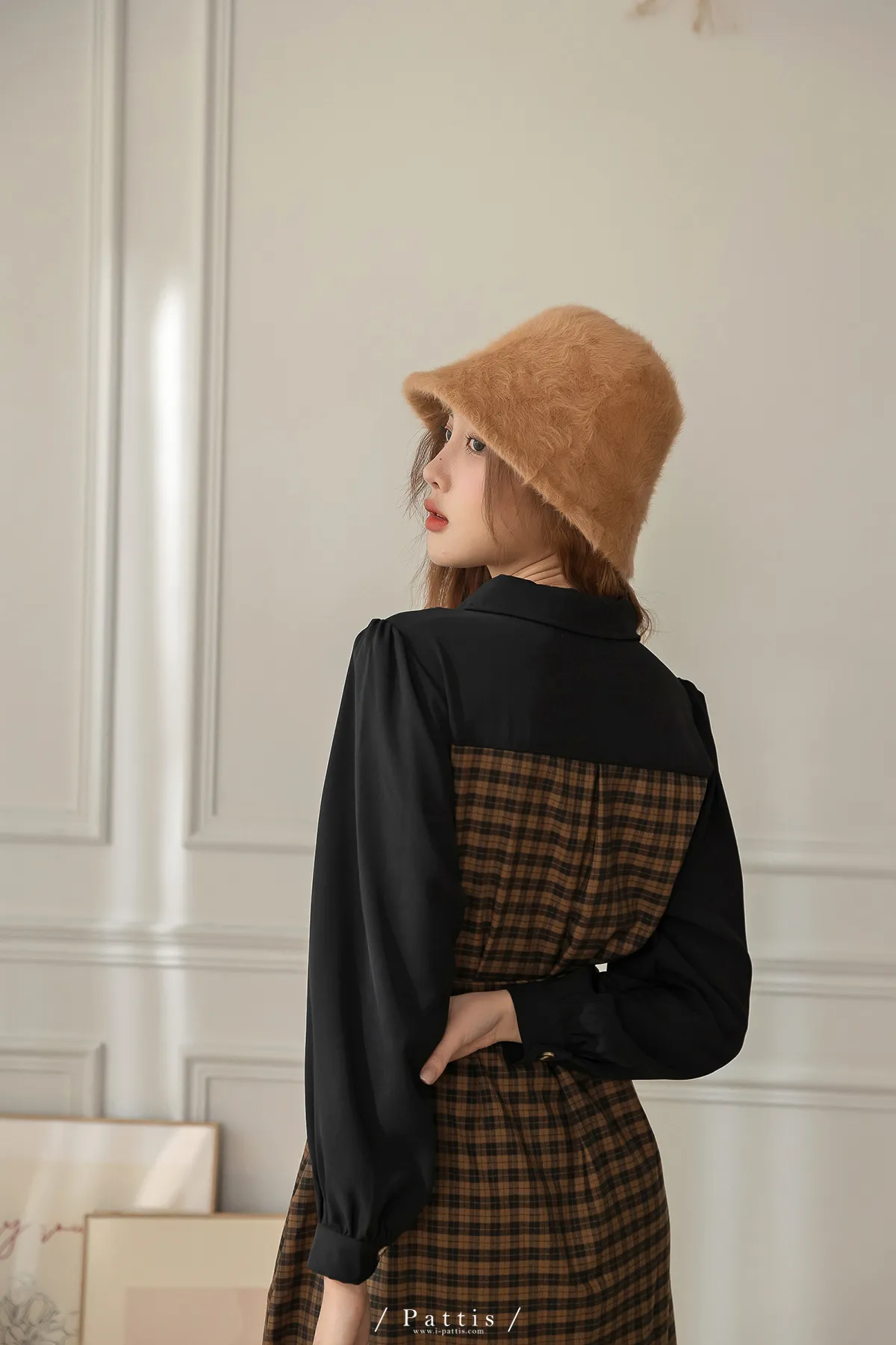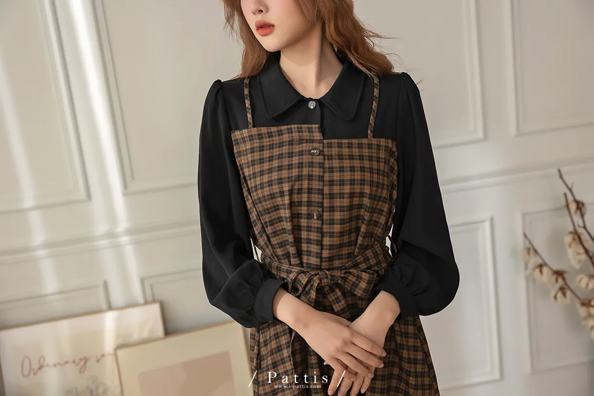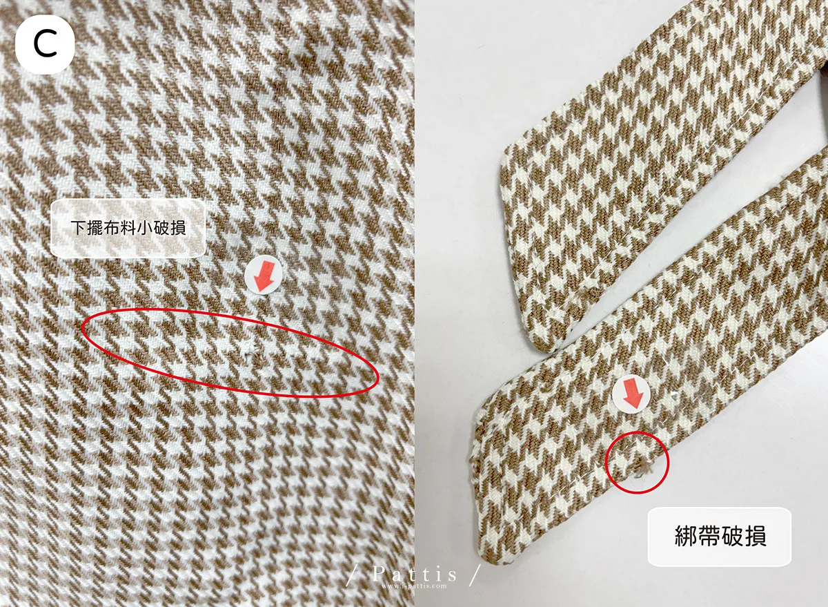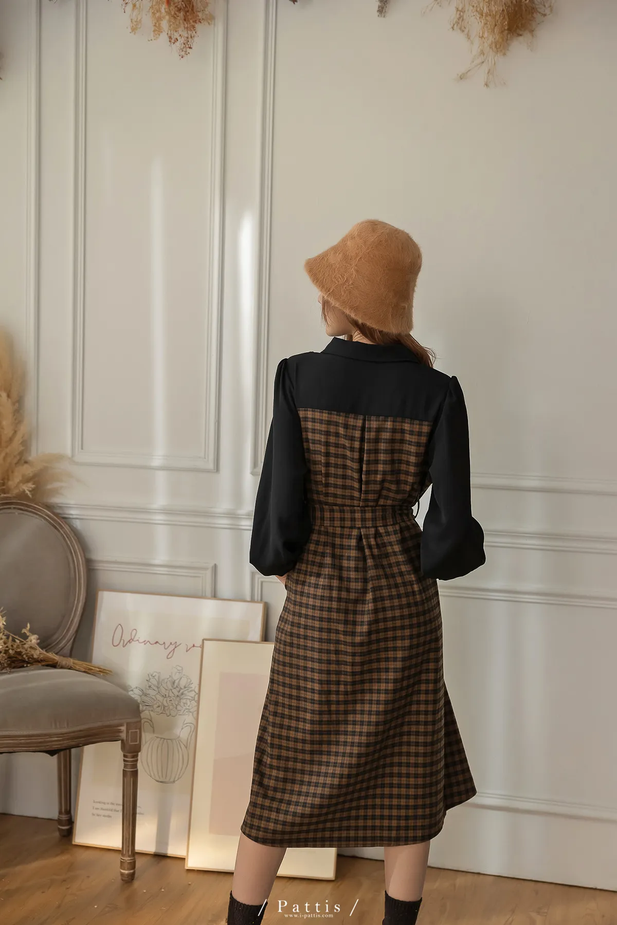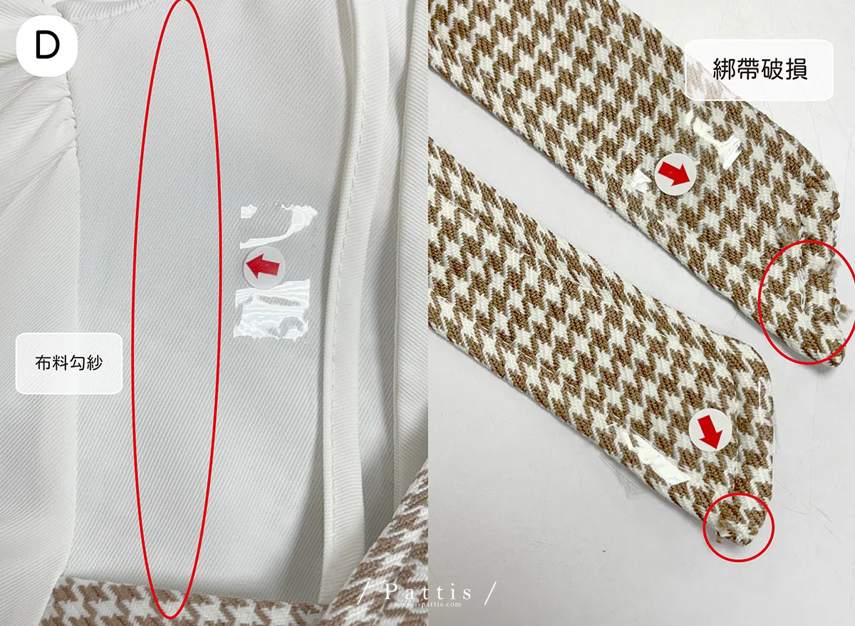 / NG品 原價$1390 / 拼接格紋不對稱綁帶襯衫洋裝(米白)
