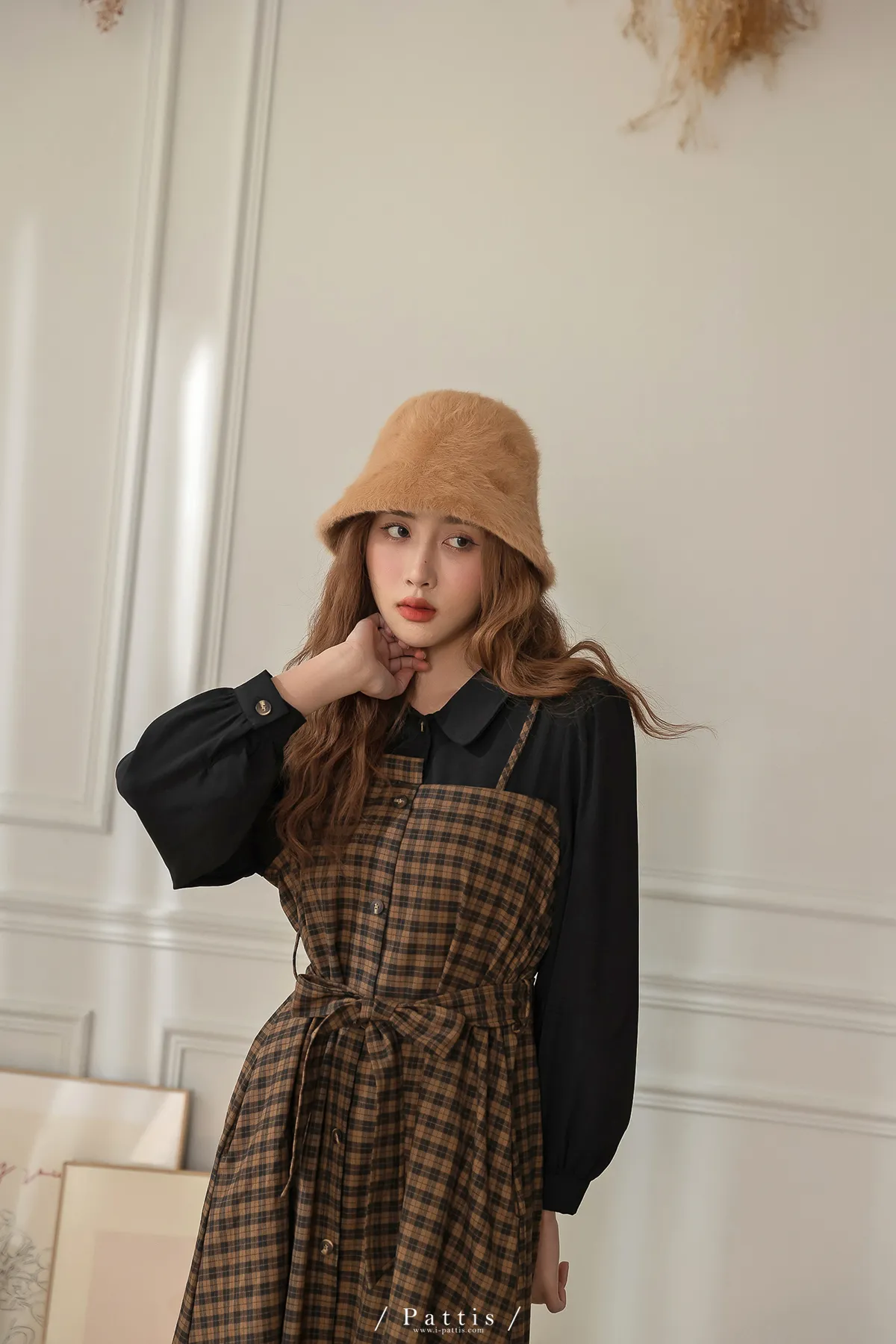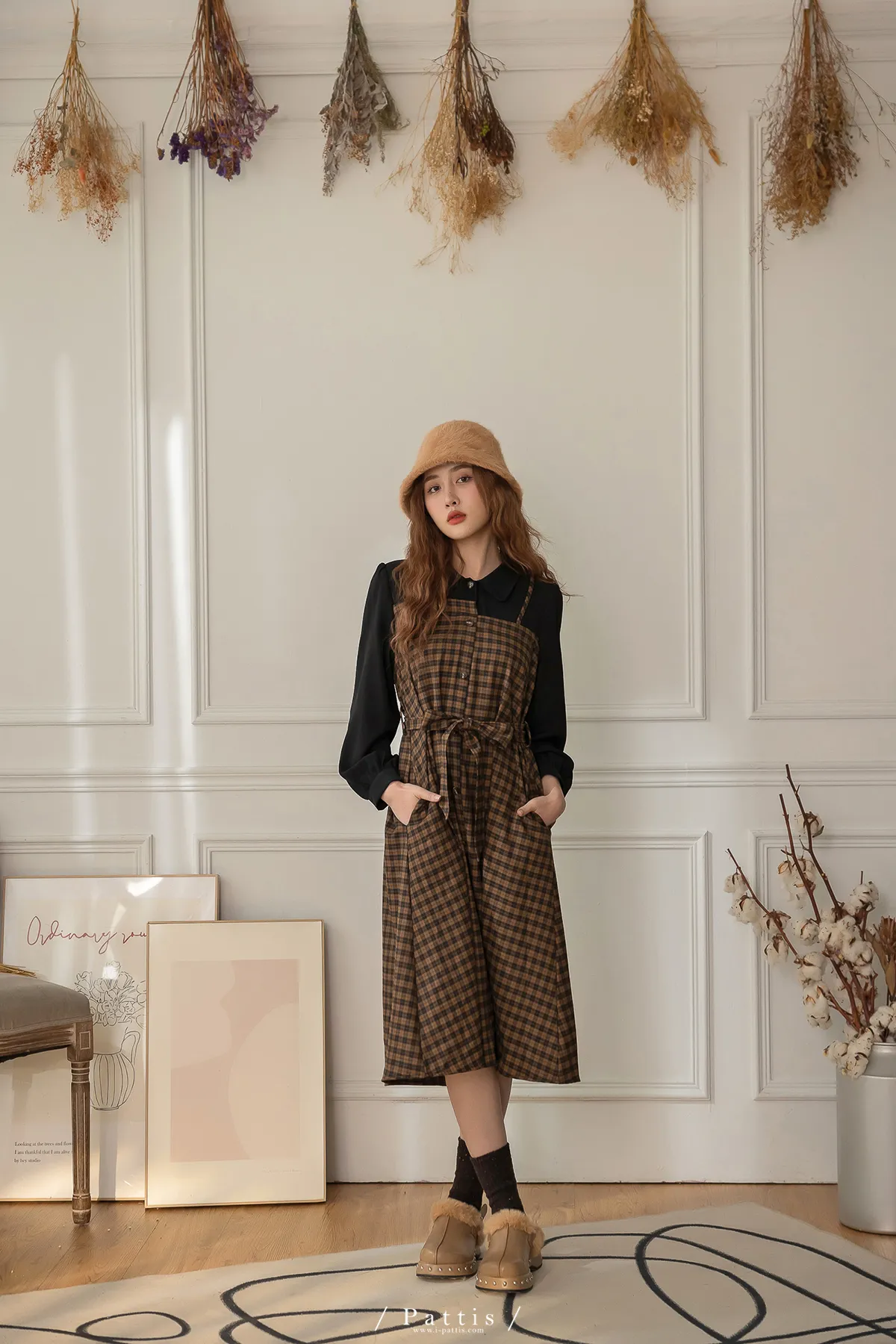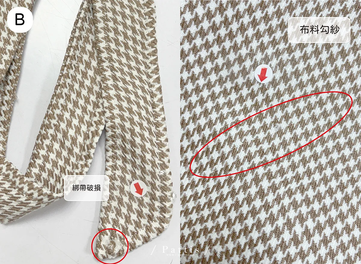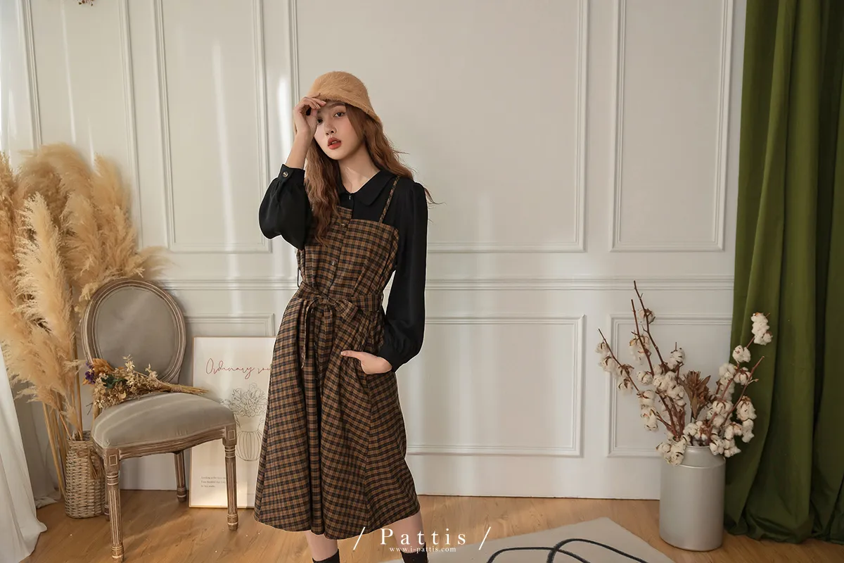 / NG品 原價$1390 / 拼接格紋不對稱綁帶襯衫洋裝(米白)