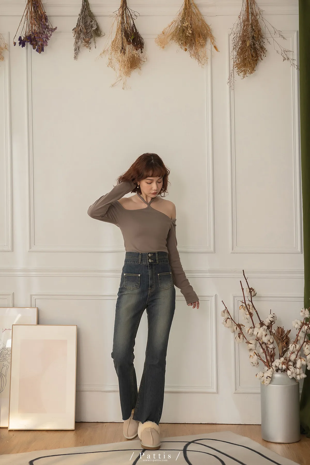 偶爾溫柔泰半直率 | 2way交叉設計綁帶領上衣(米棕)