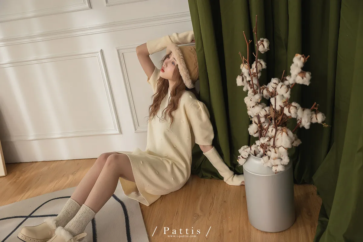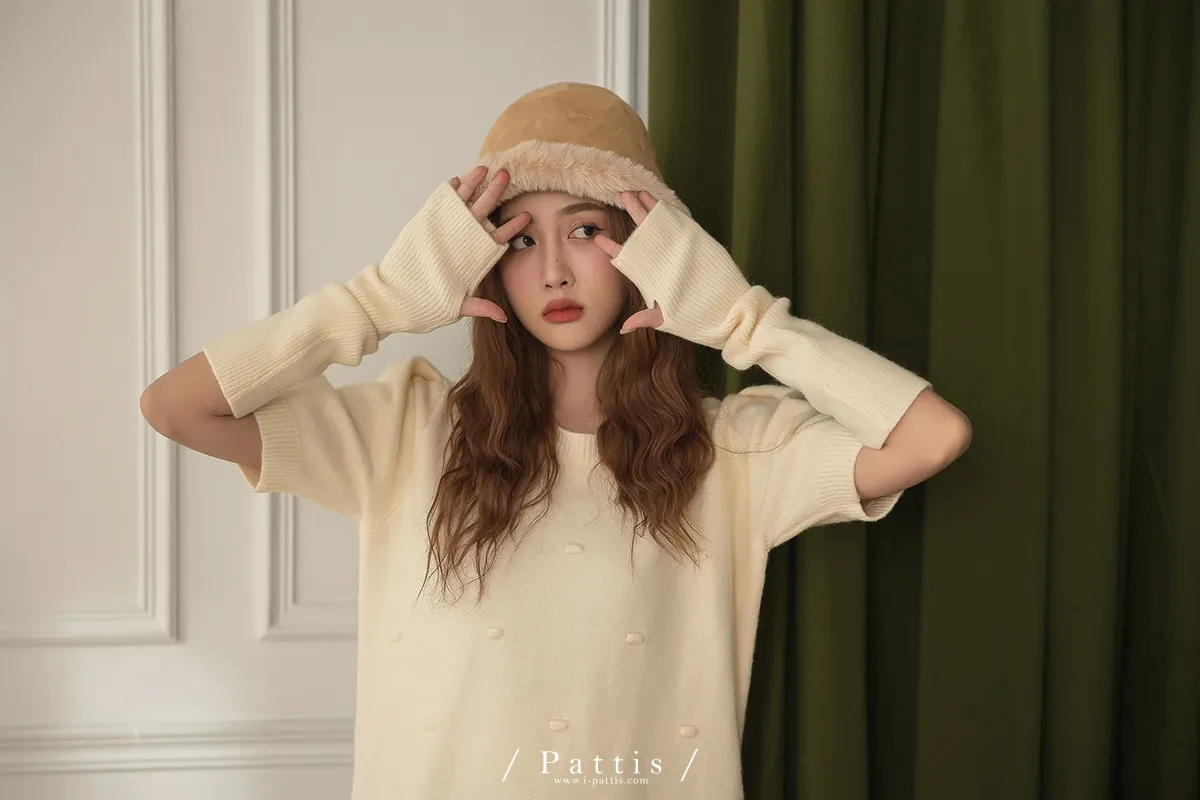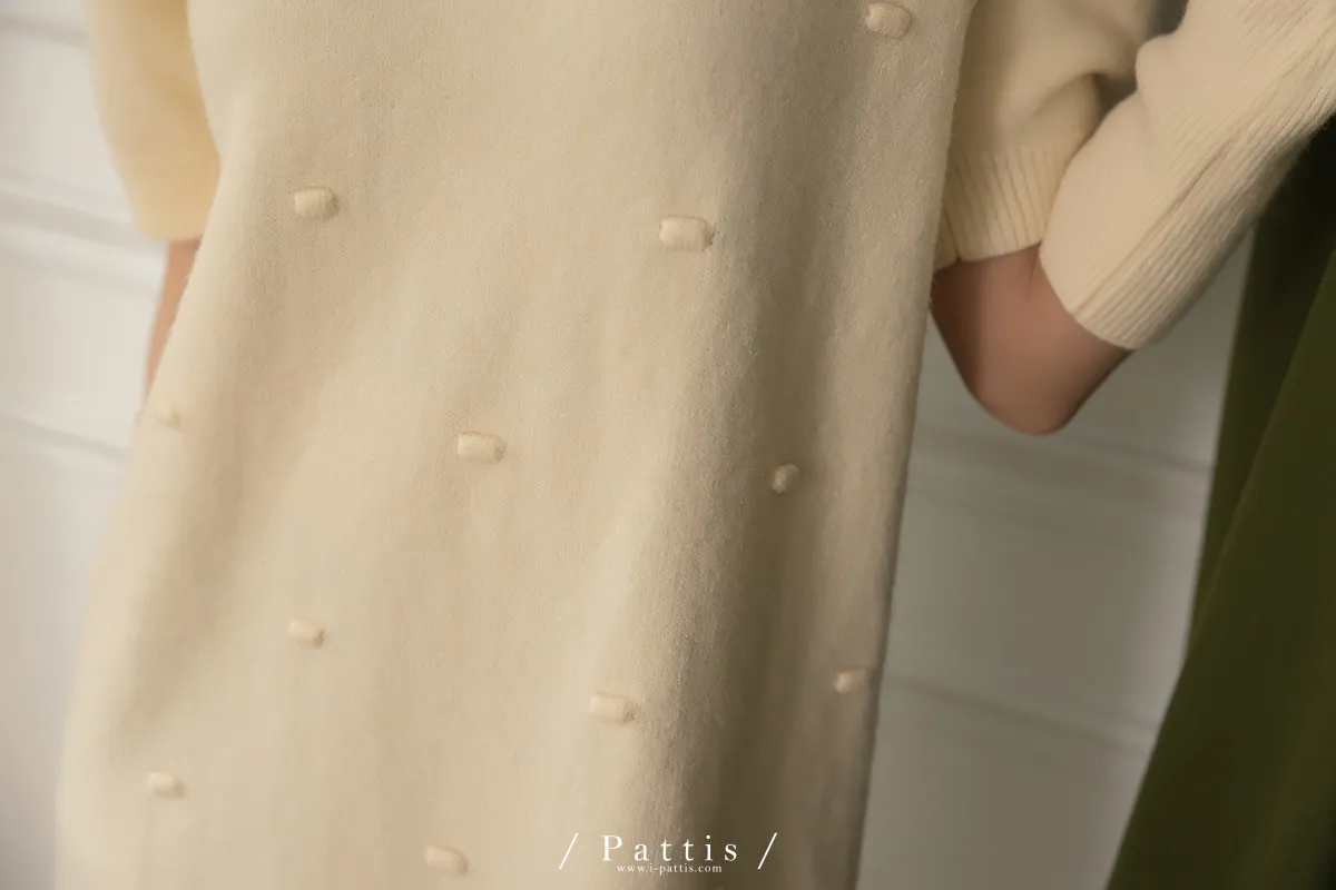 甜酒泡泡 | 球球圓領洋裝+袖套set組(米白)