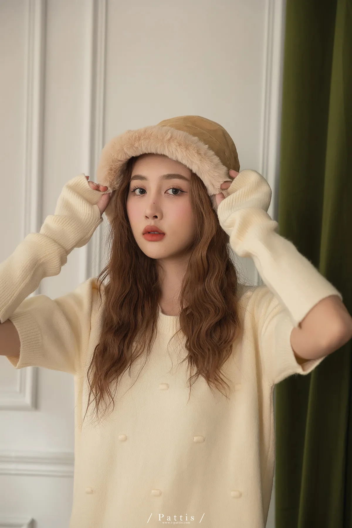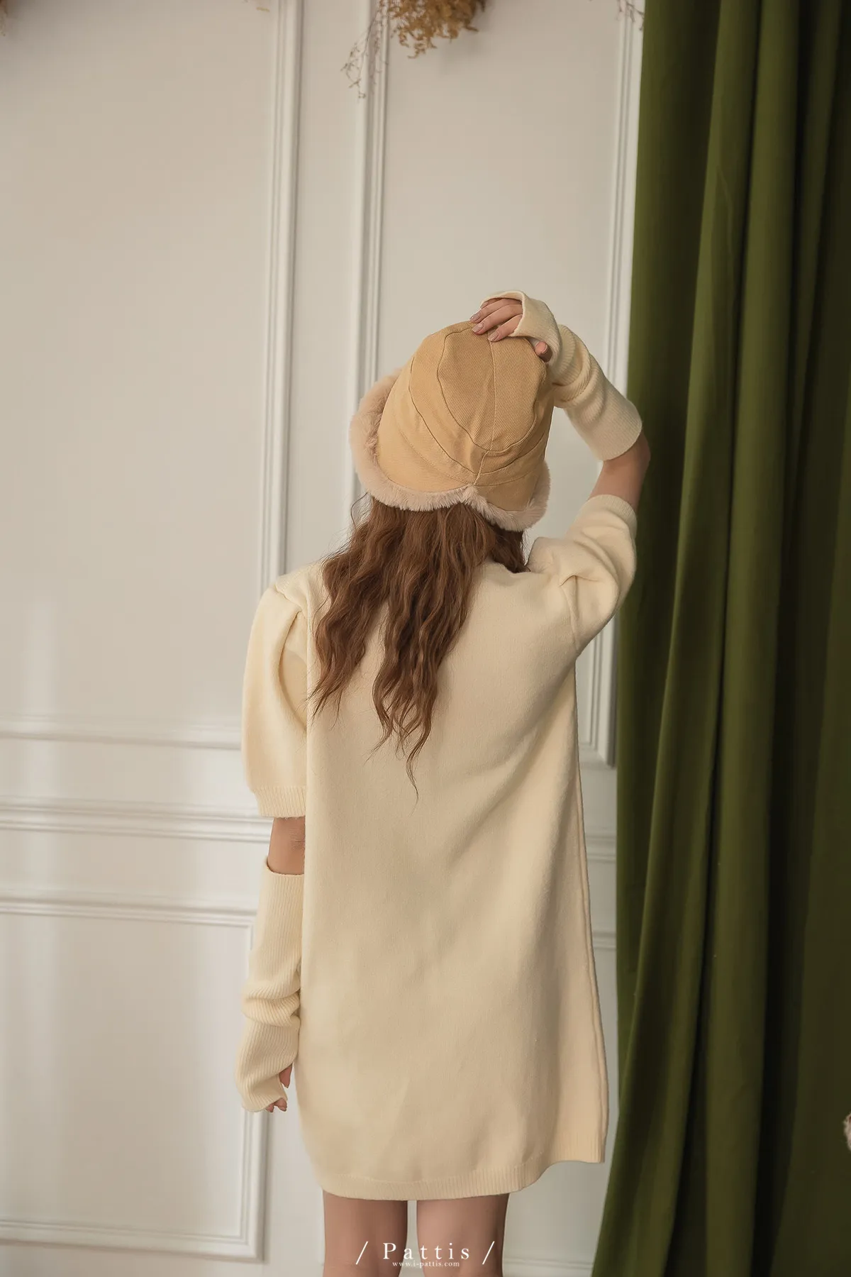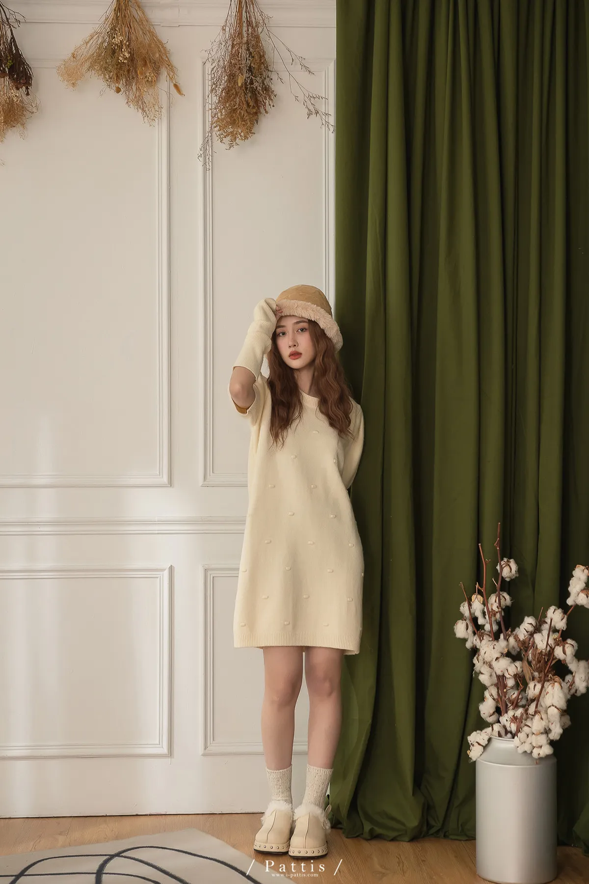 甜酒泡泡 | 球球圓領洋裝+袖套set組(米白)