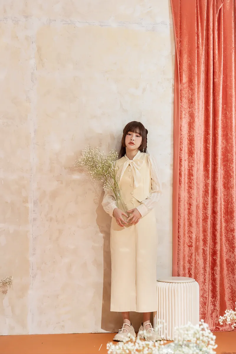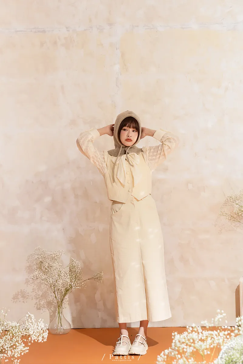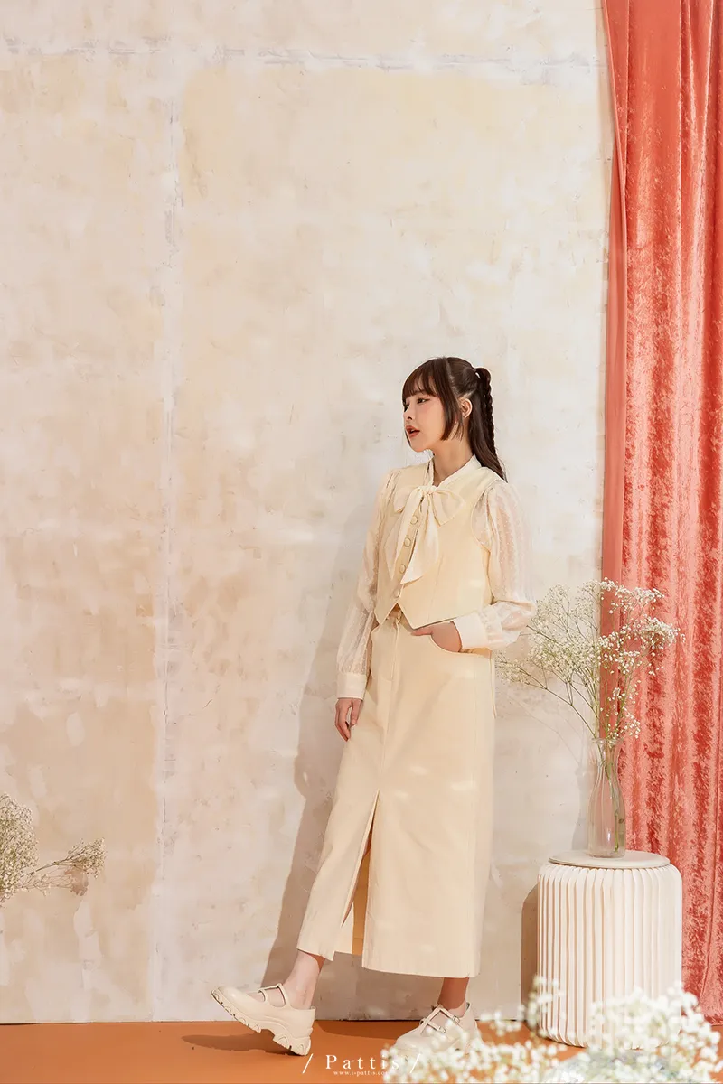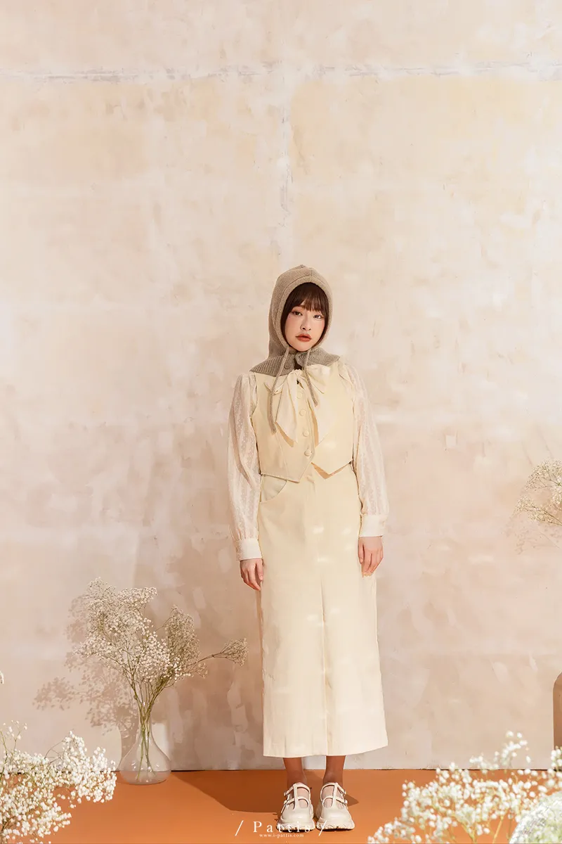 命運也是種必然 | (可分售)燈心絨包扣背心+長裙set組(米白)