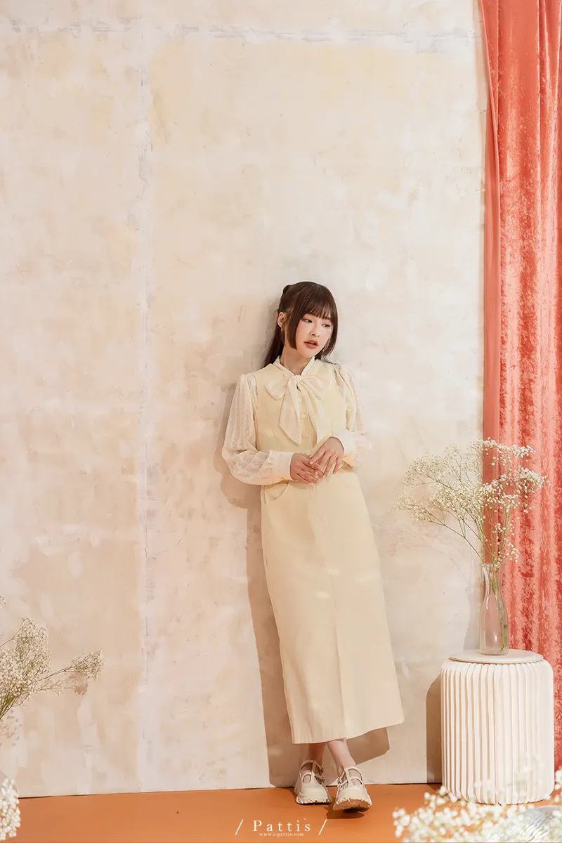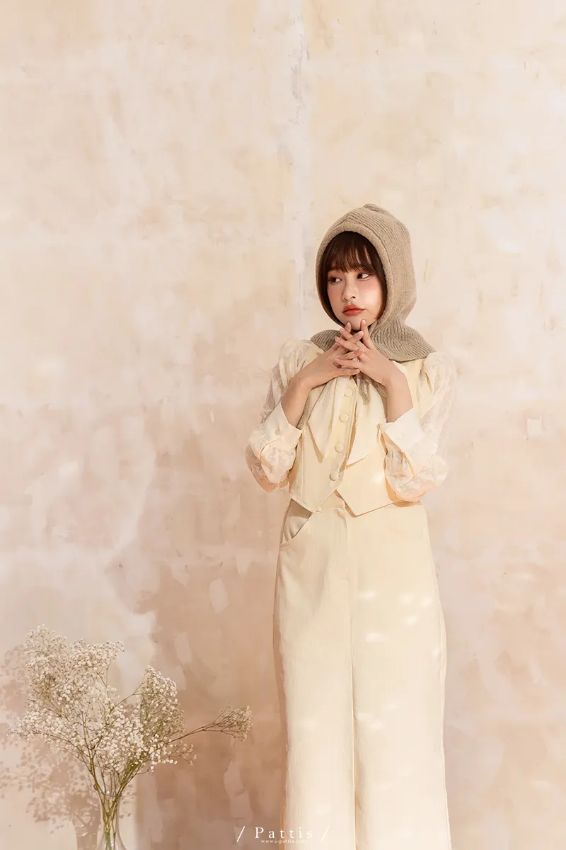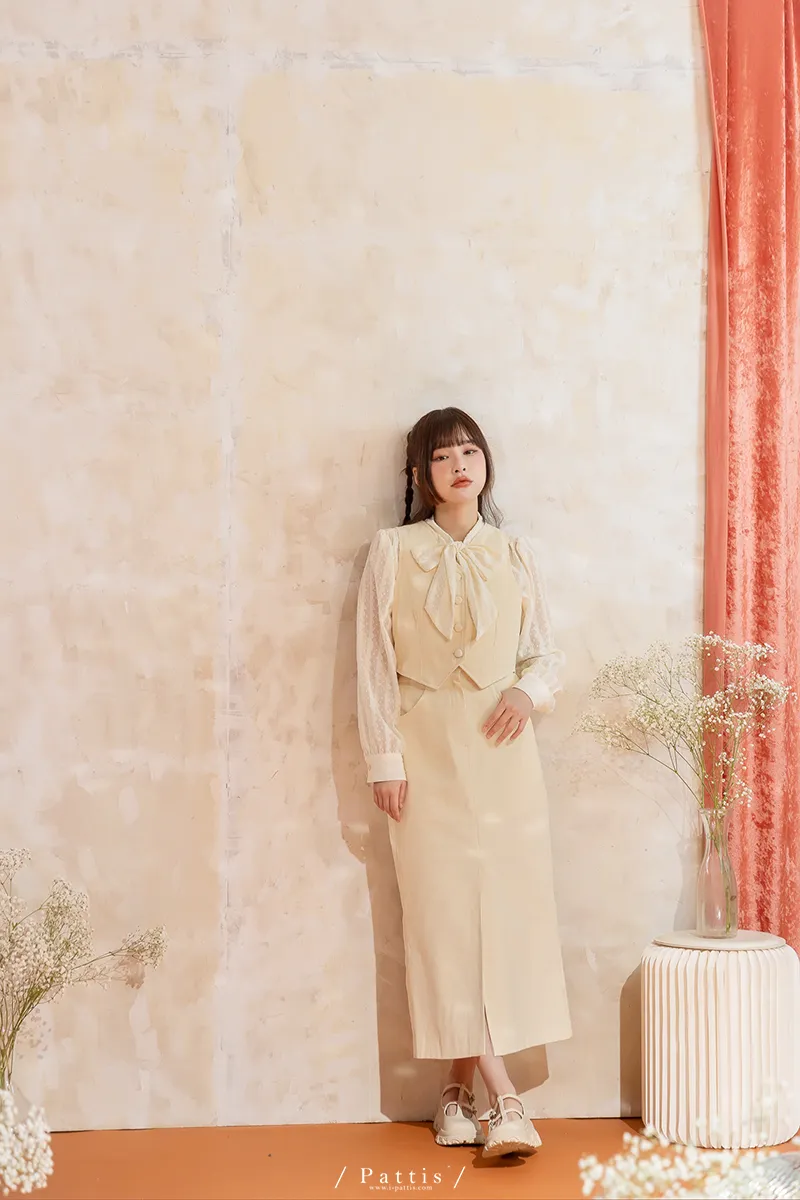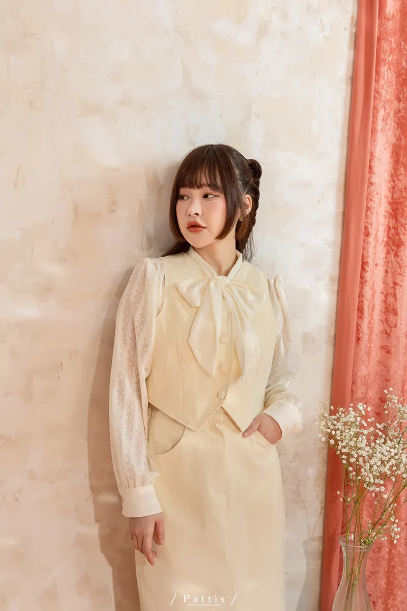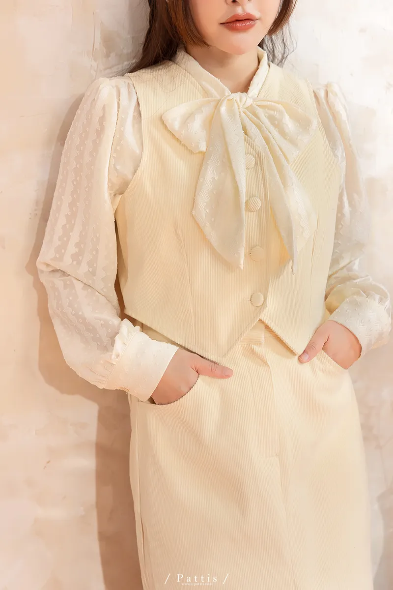 命運也是種必然 | (可分售)燈心絨包扣背心+長裙set組(米白)