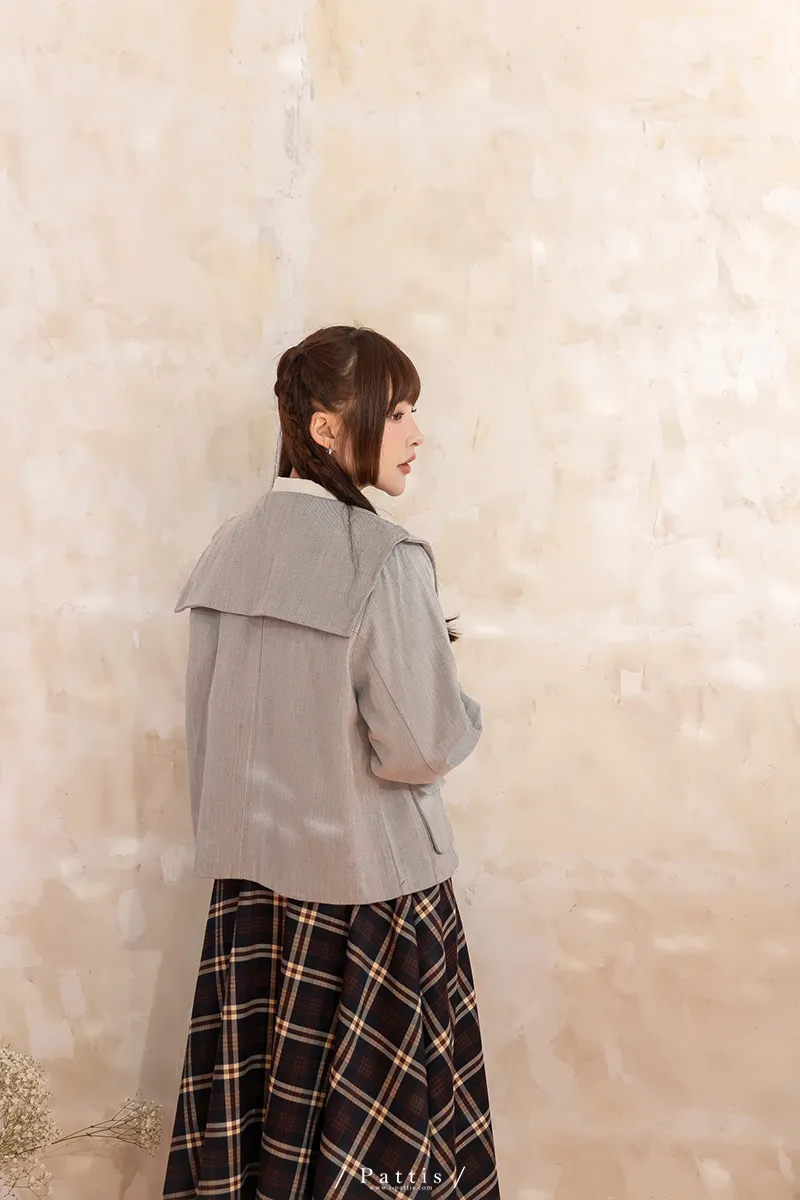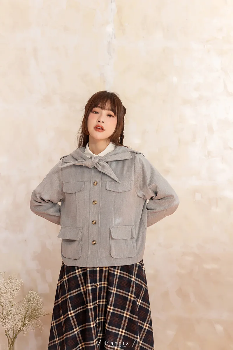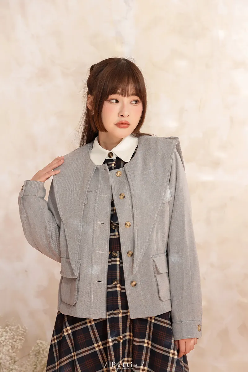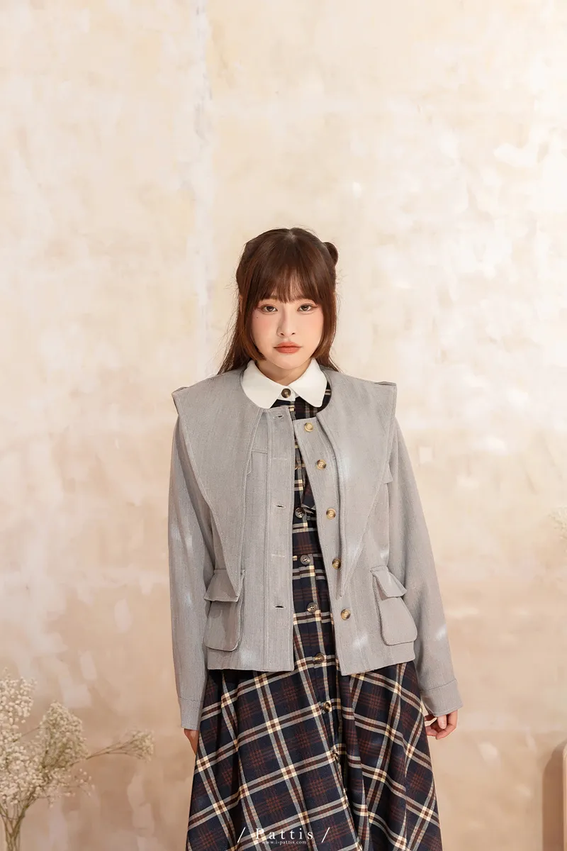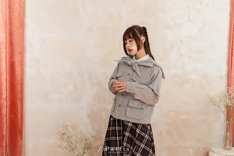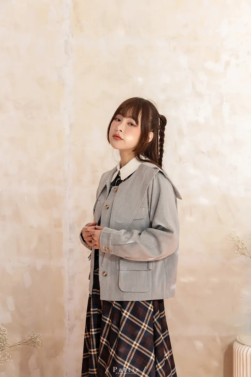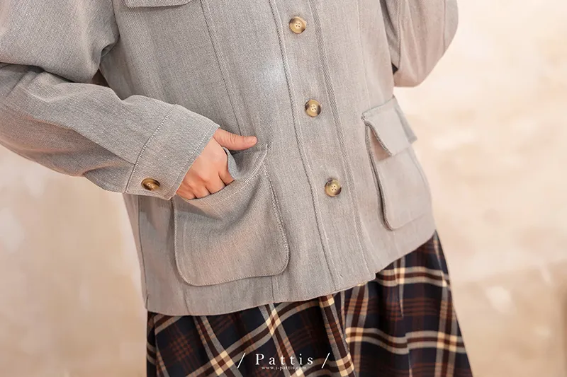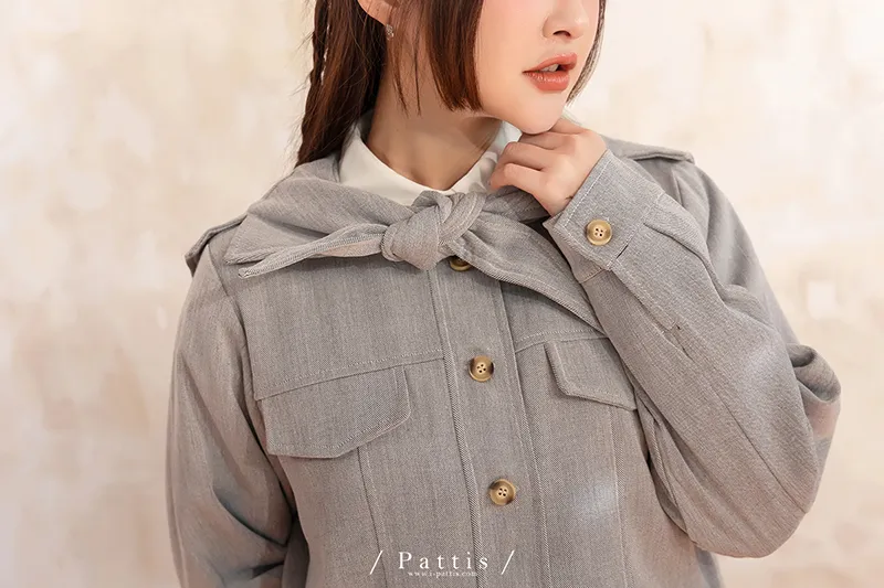 中性調筆觸 | 2way大領片造型雙口袋短外套(灰)