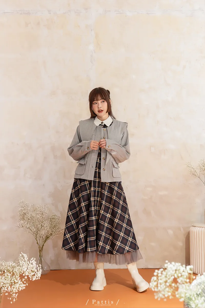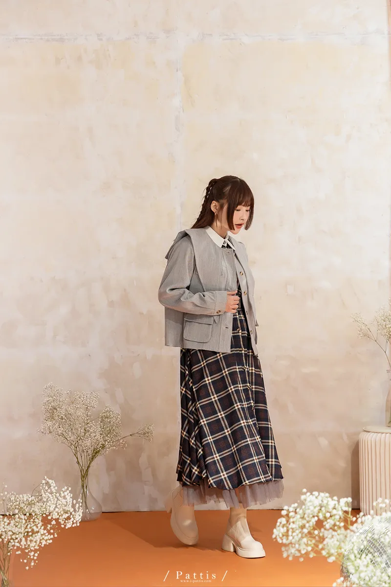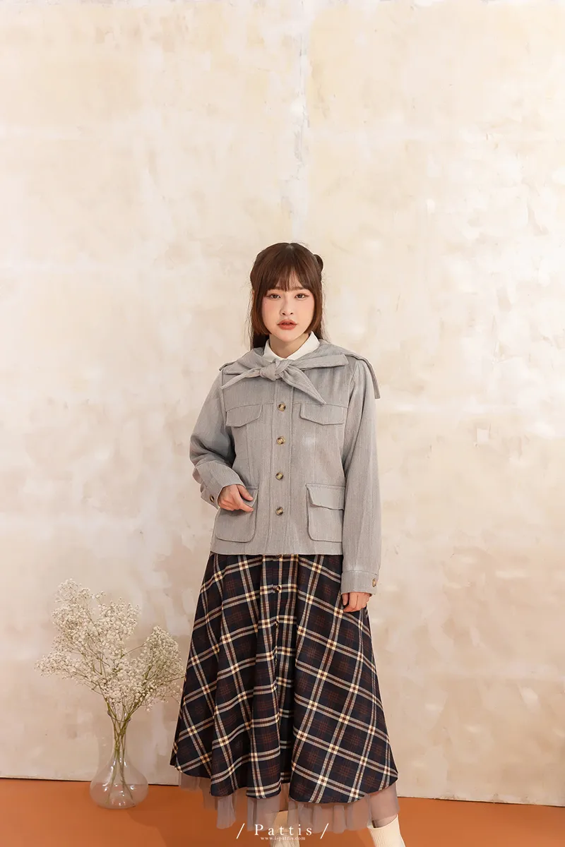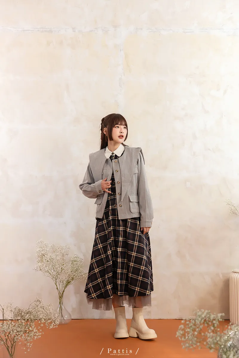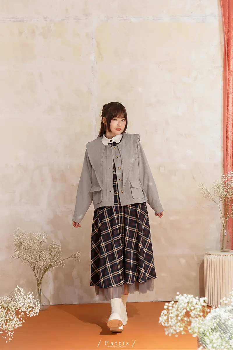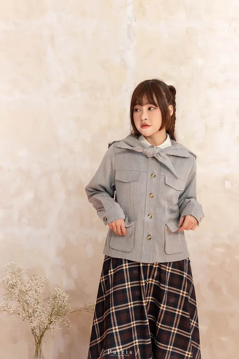 中性調筆觸 | 2way大領片造型雙口袋短外套(灰)