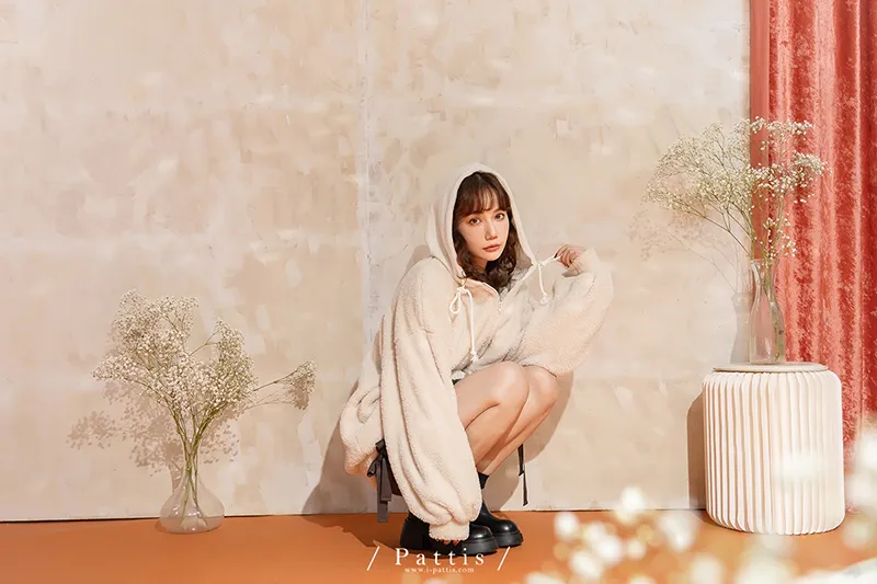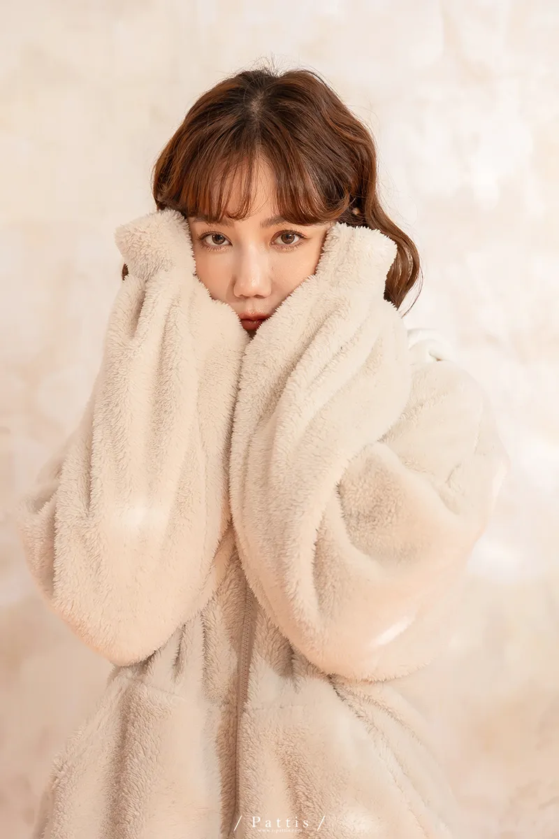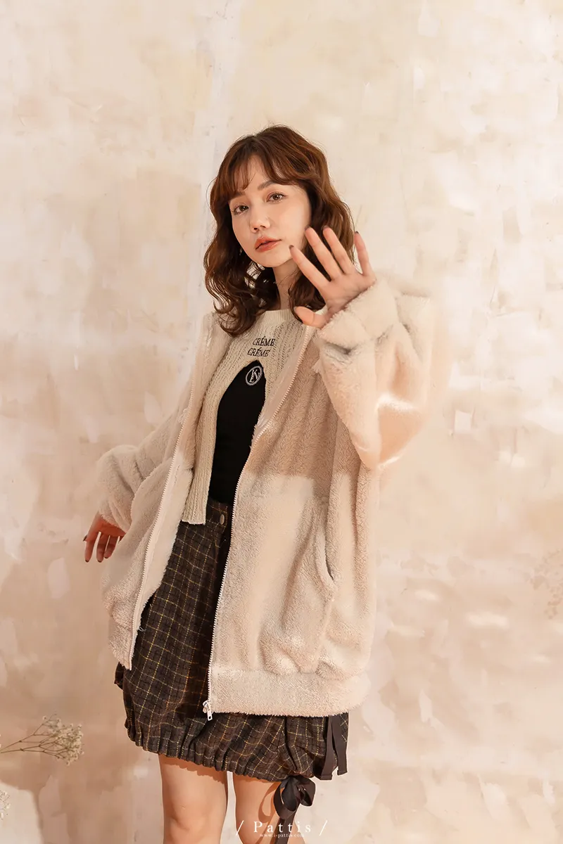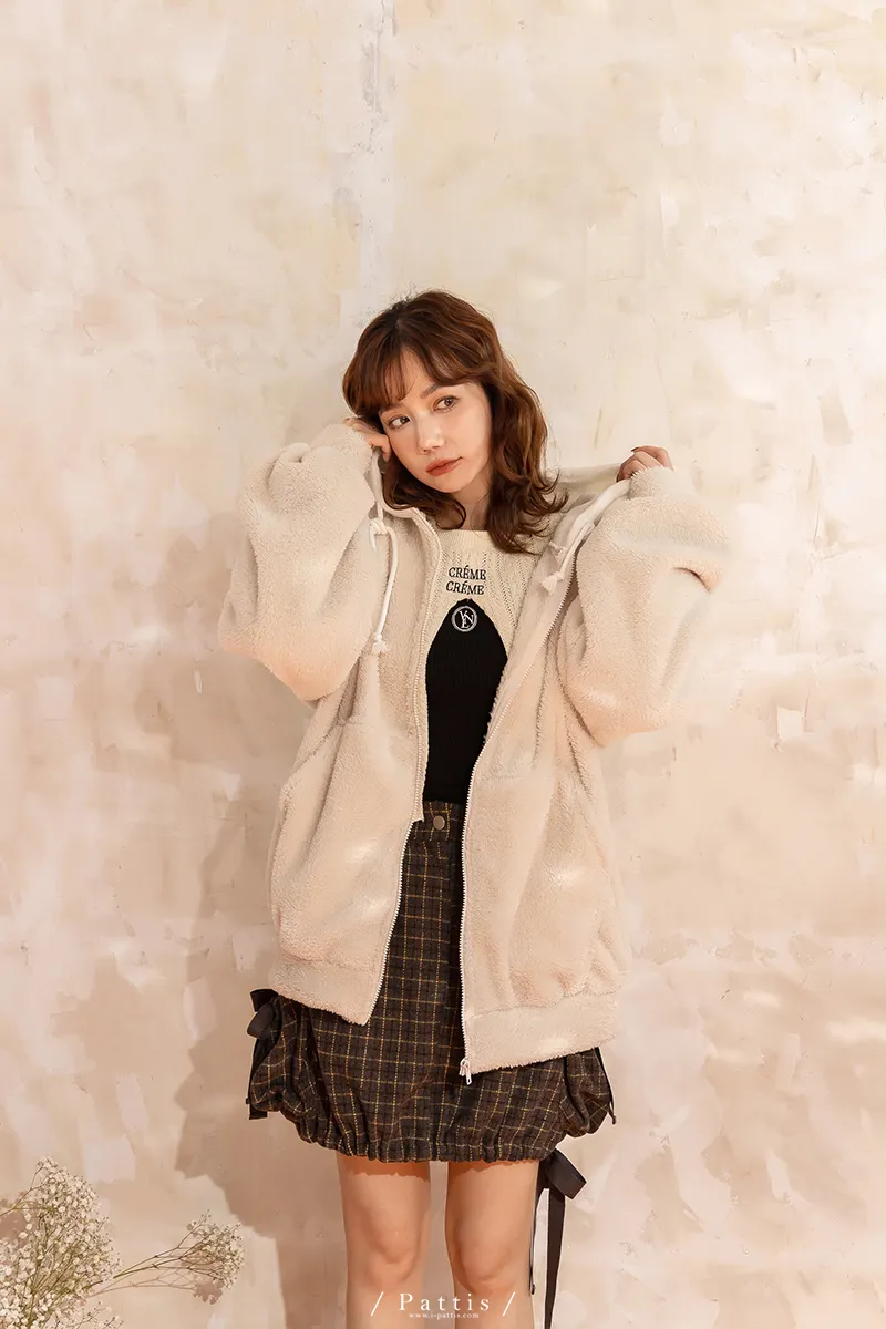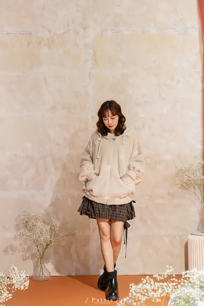 重返幼時的木造房 | 泰迪熊軟毛雙色連帽口袋長版外套(米杏)