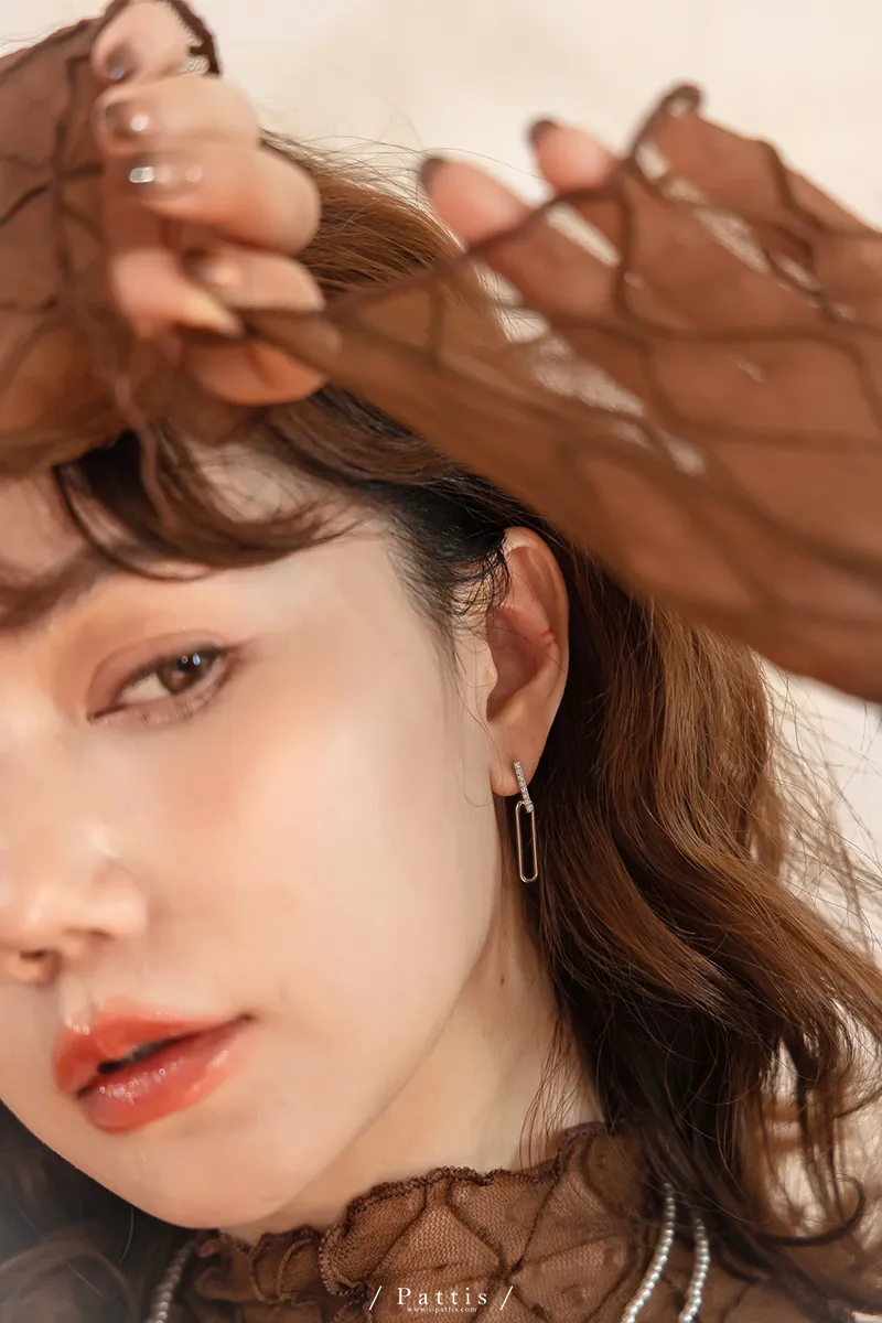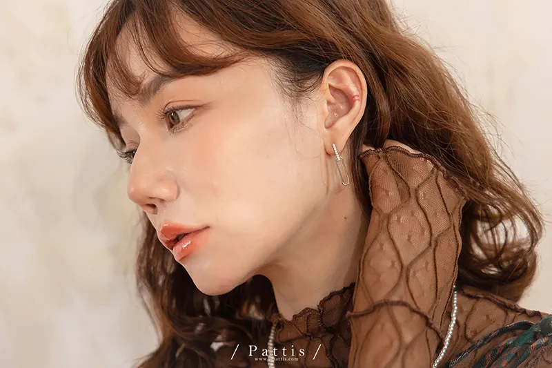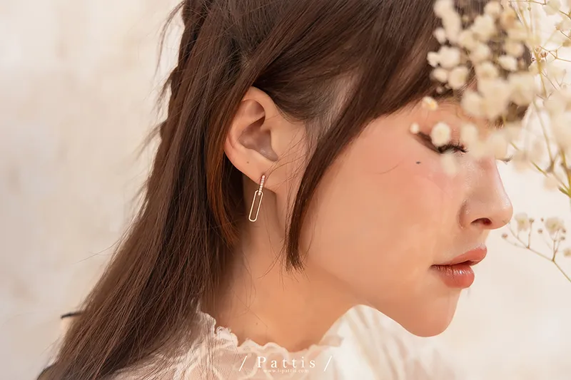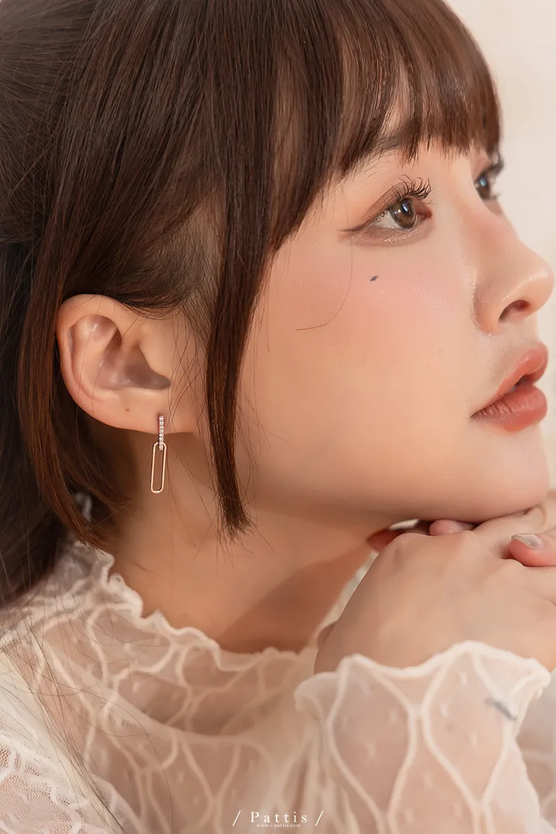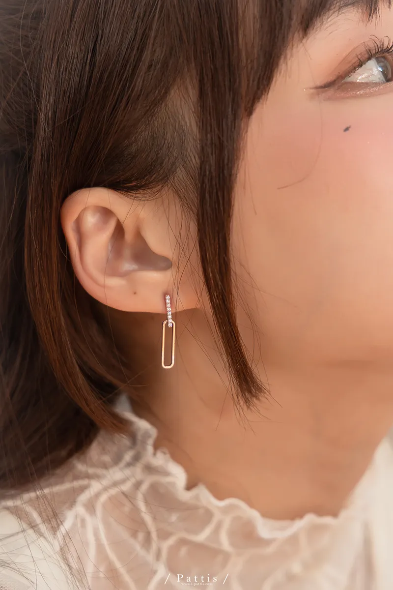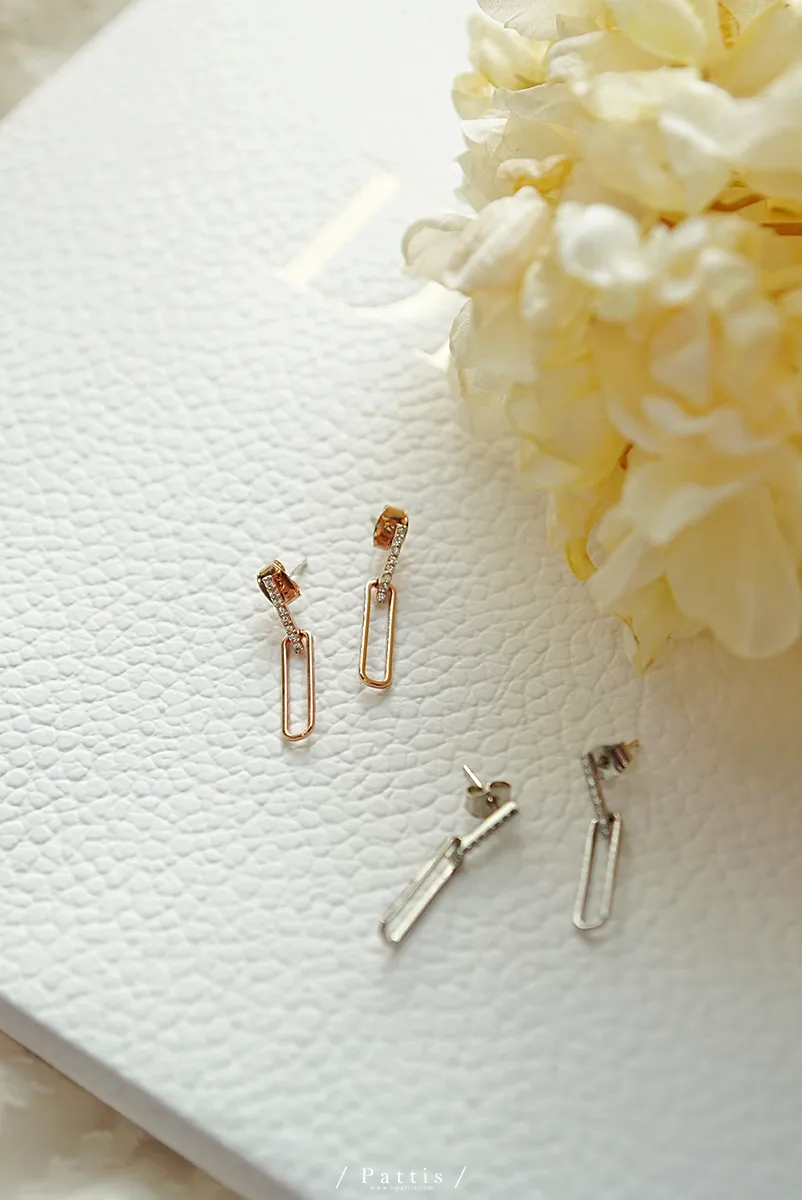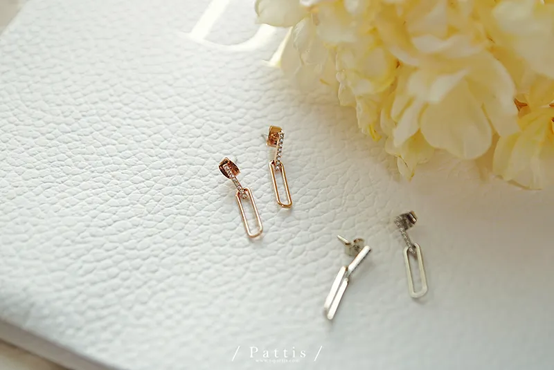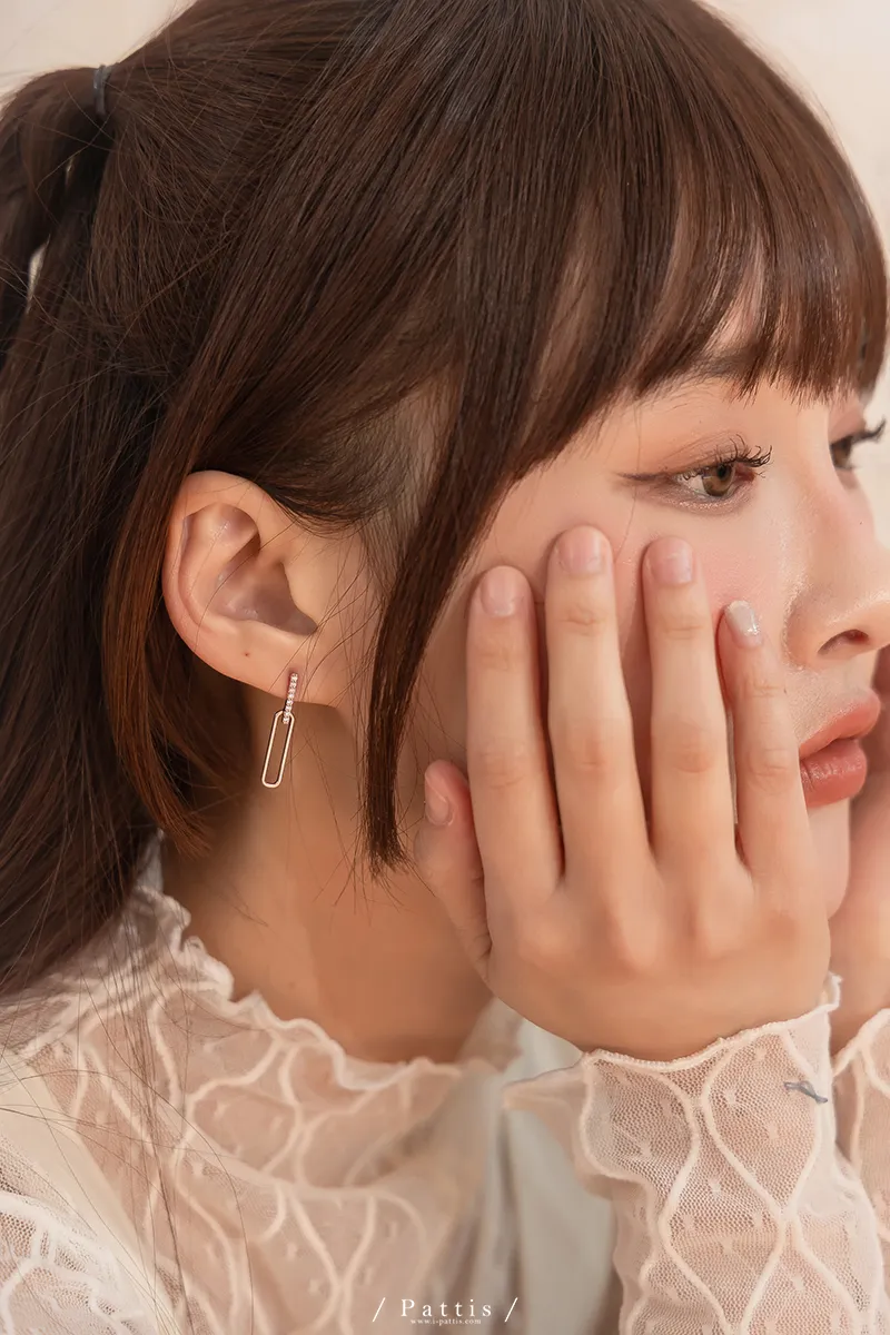 小碎鑽長圈簡約耳環(銀色/玫瑰金)