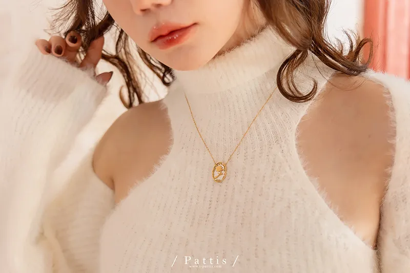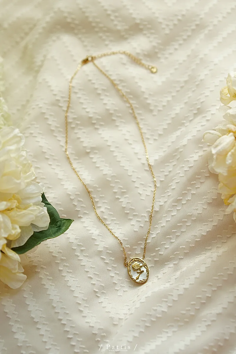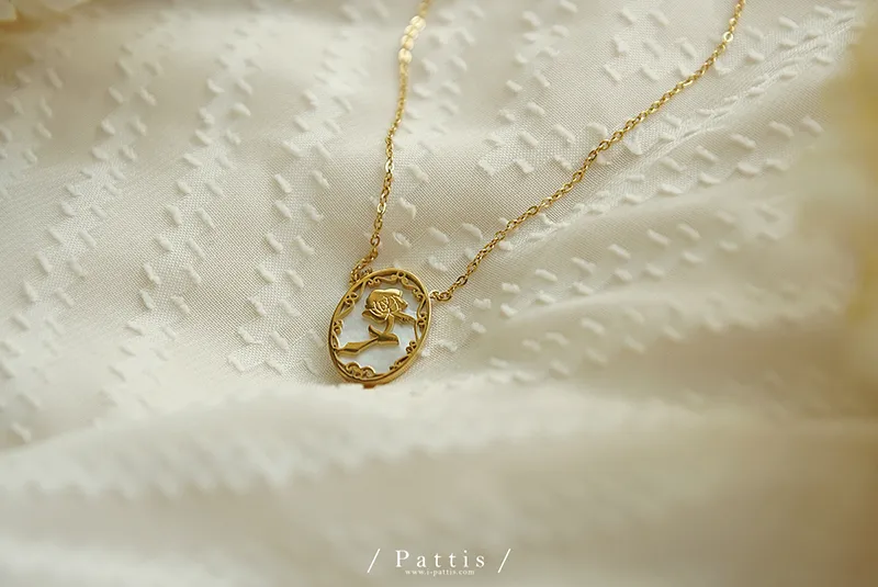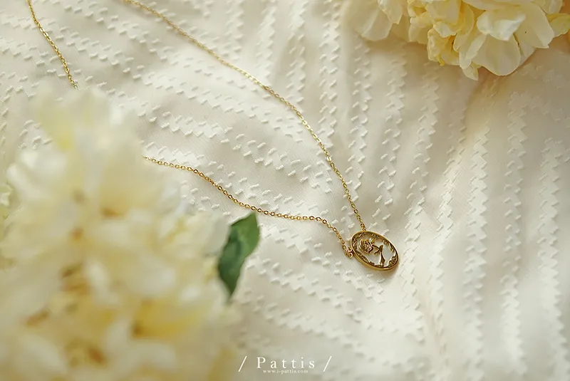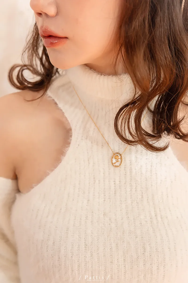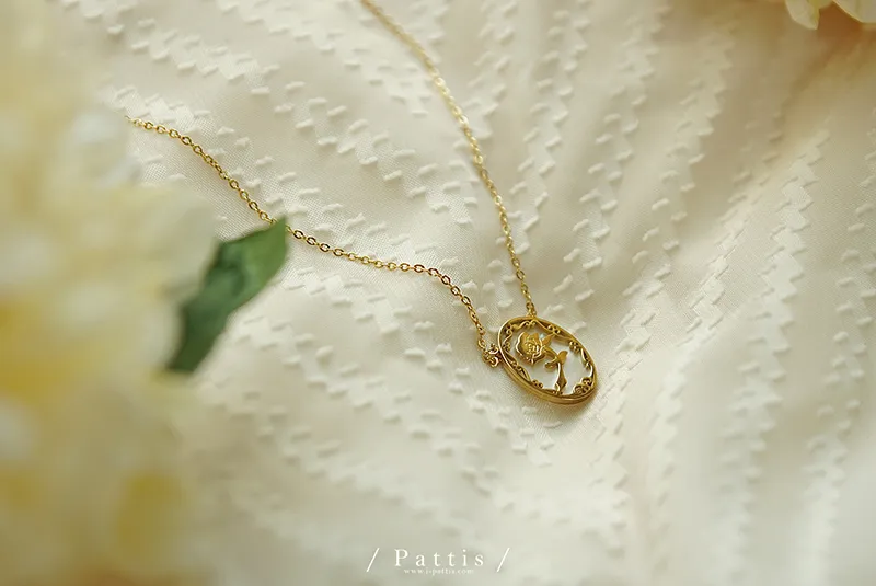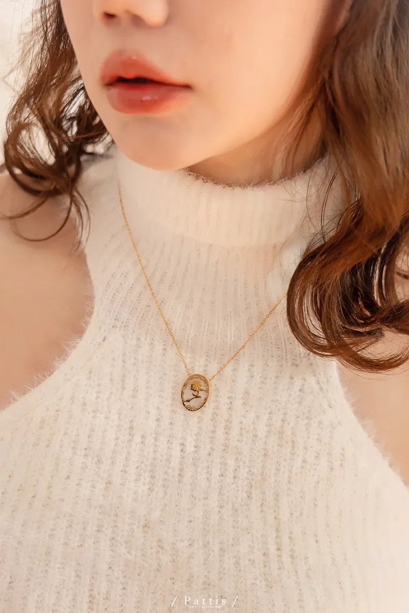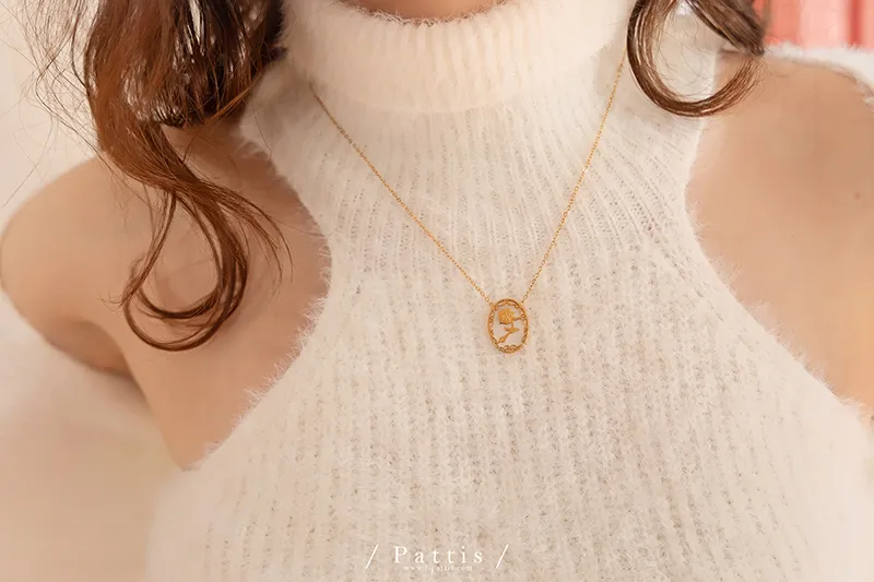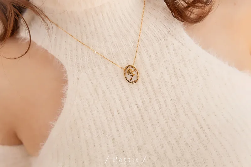 薔薇剪影雕花金邊項鍊(單一色)