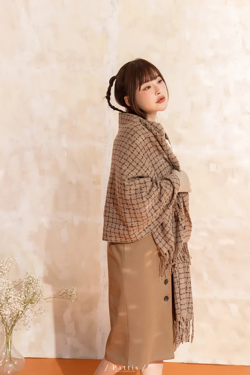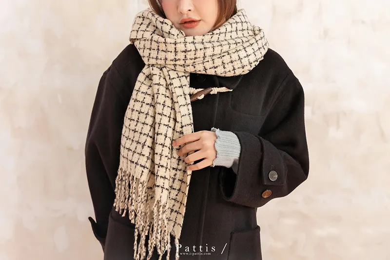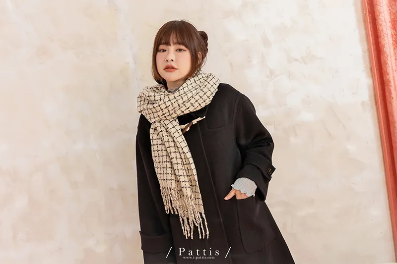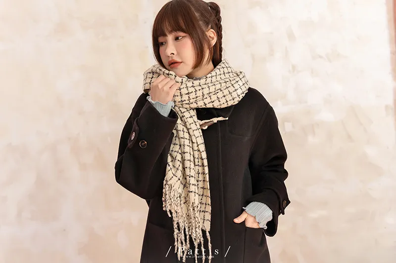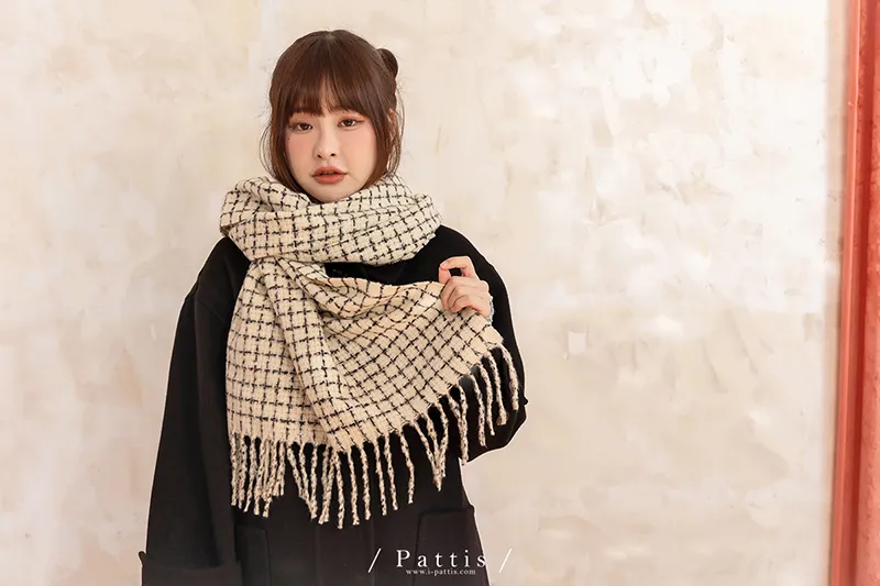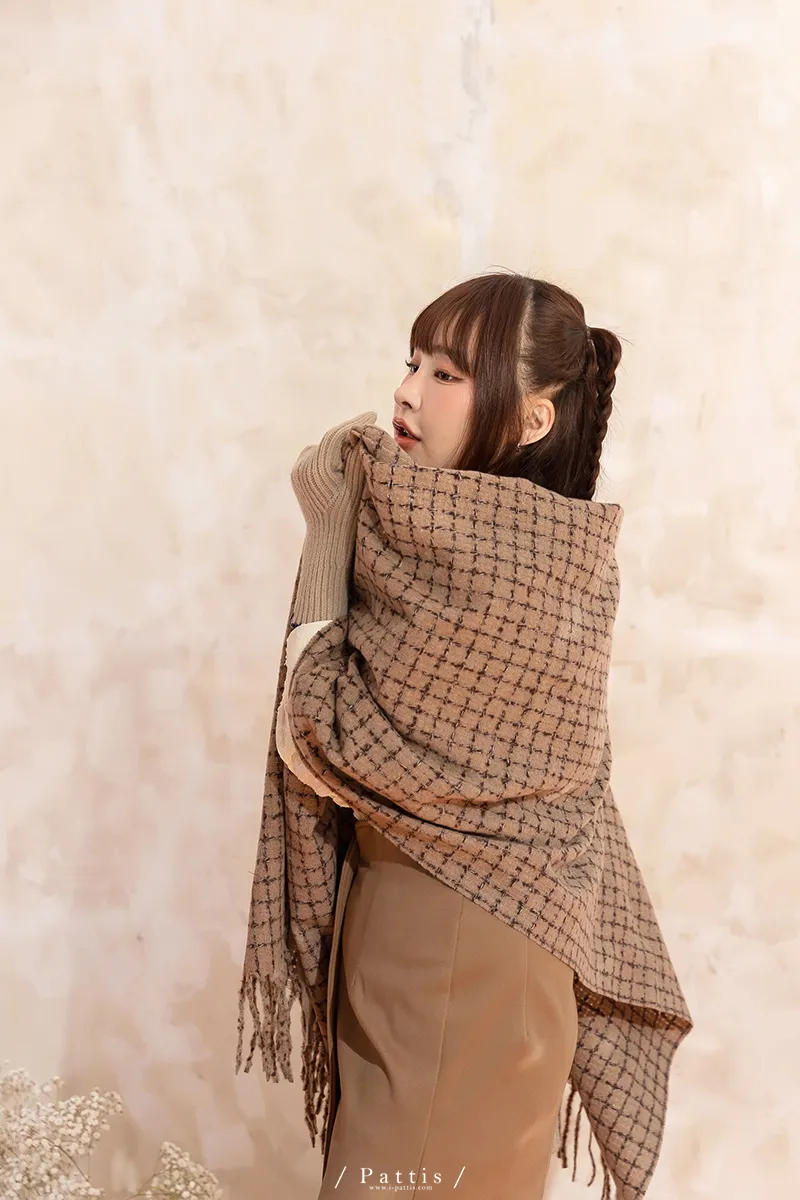 不刺癢刷色格紋流蘇大圍巾(白/米棕/藍棕)
