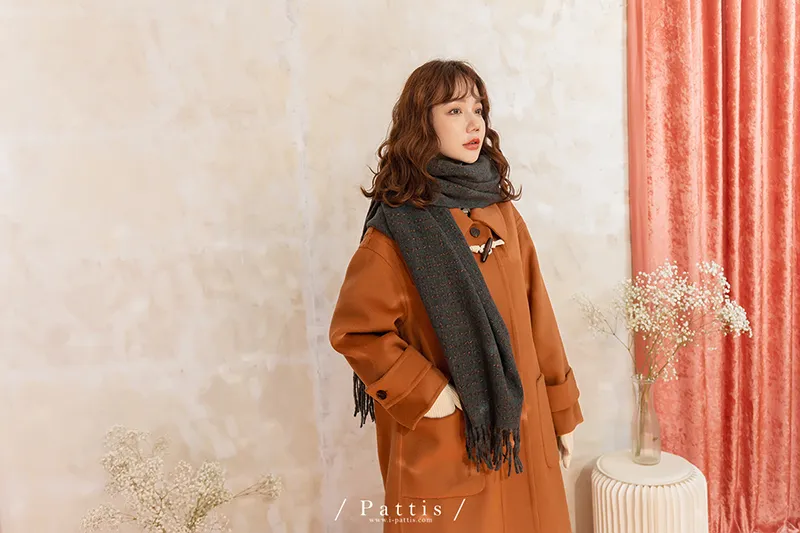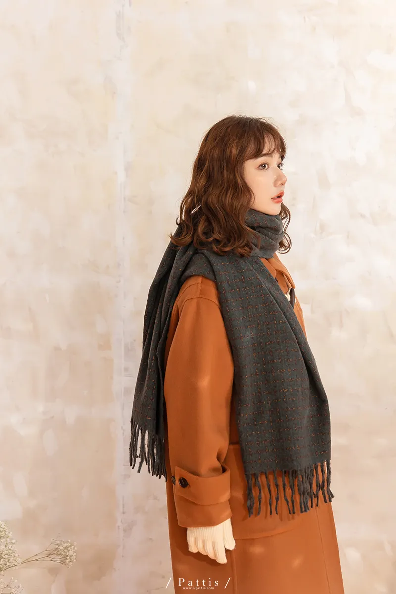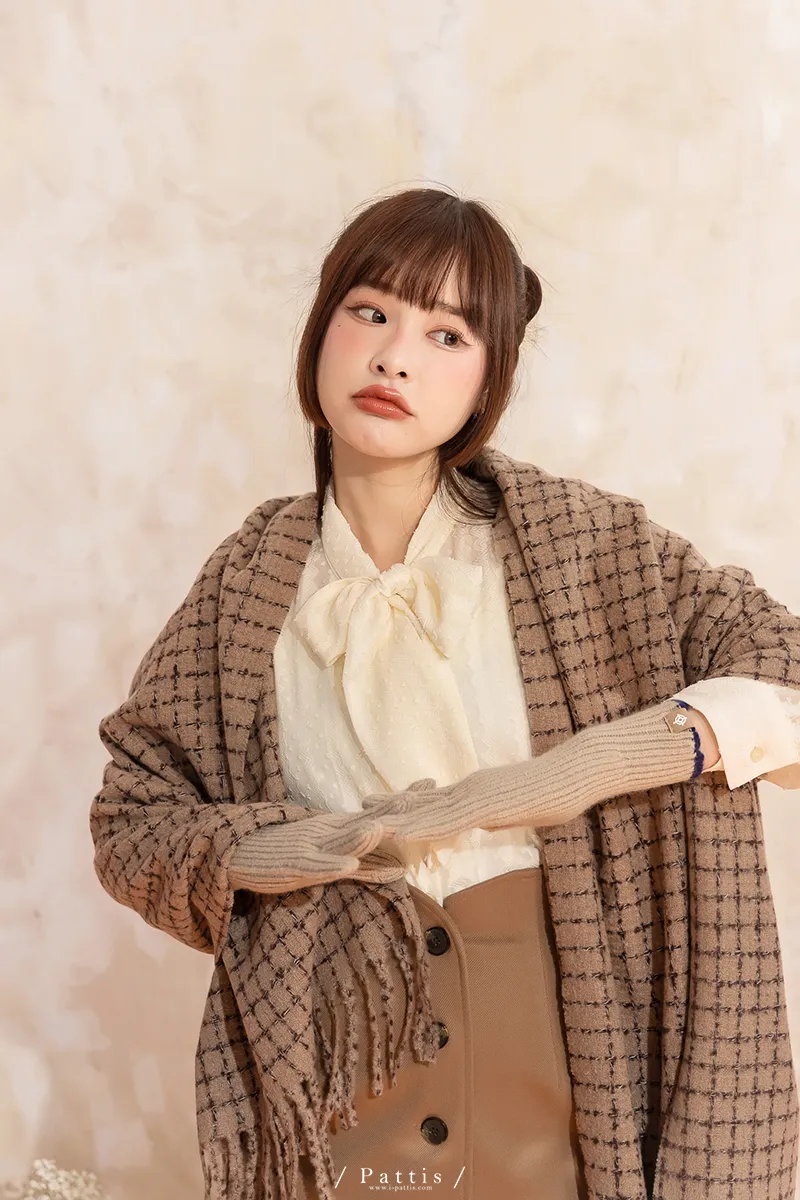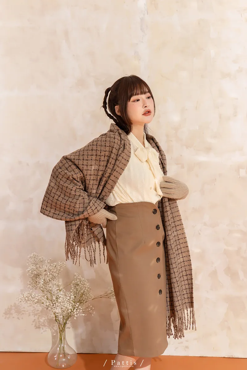 不刺癢刷色格紋流蘇大圍巾(白/米棕/藍棕)