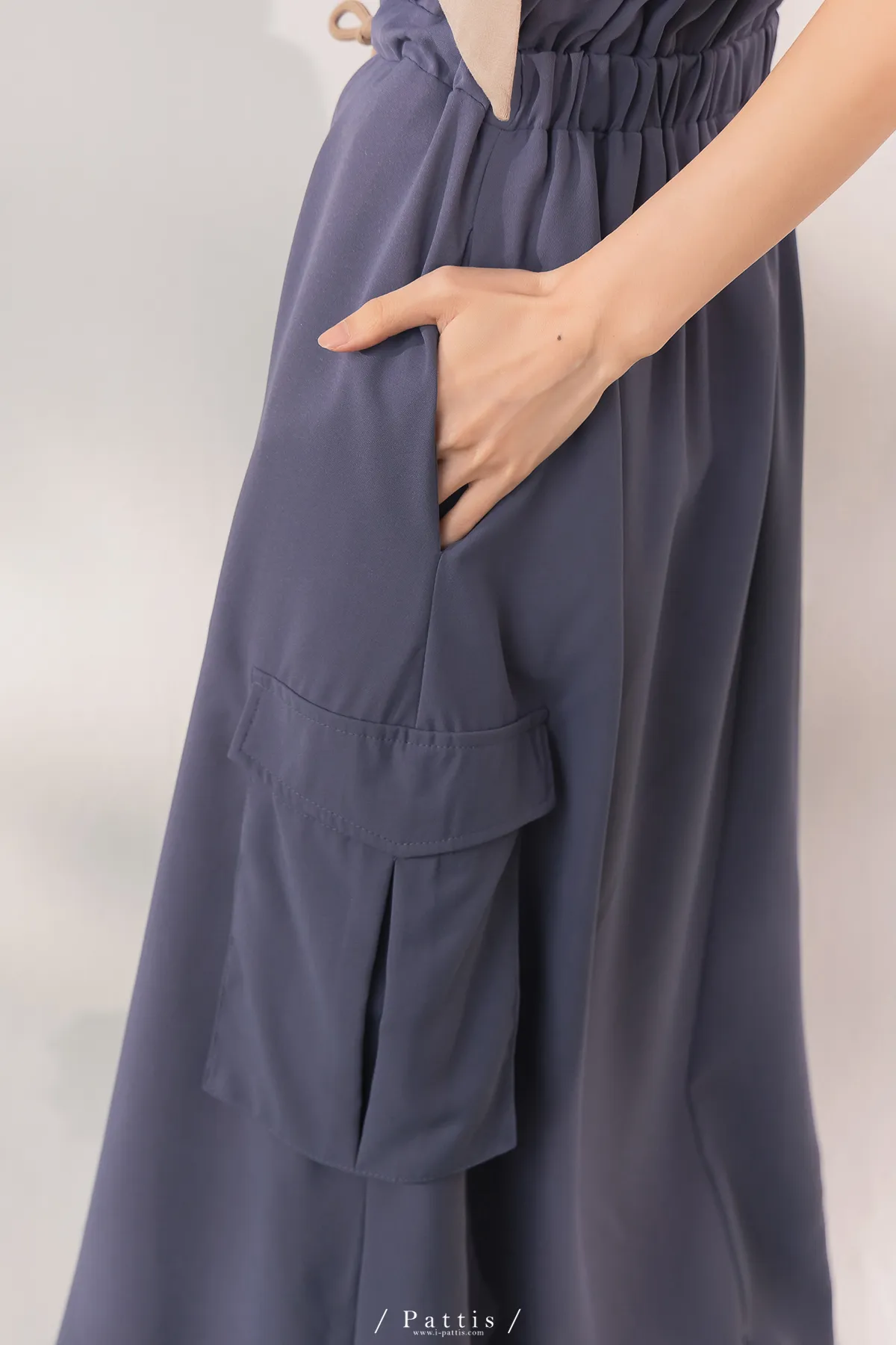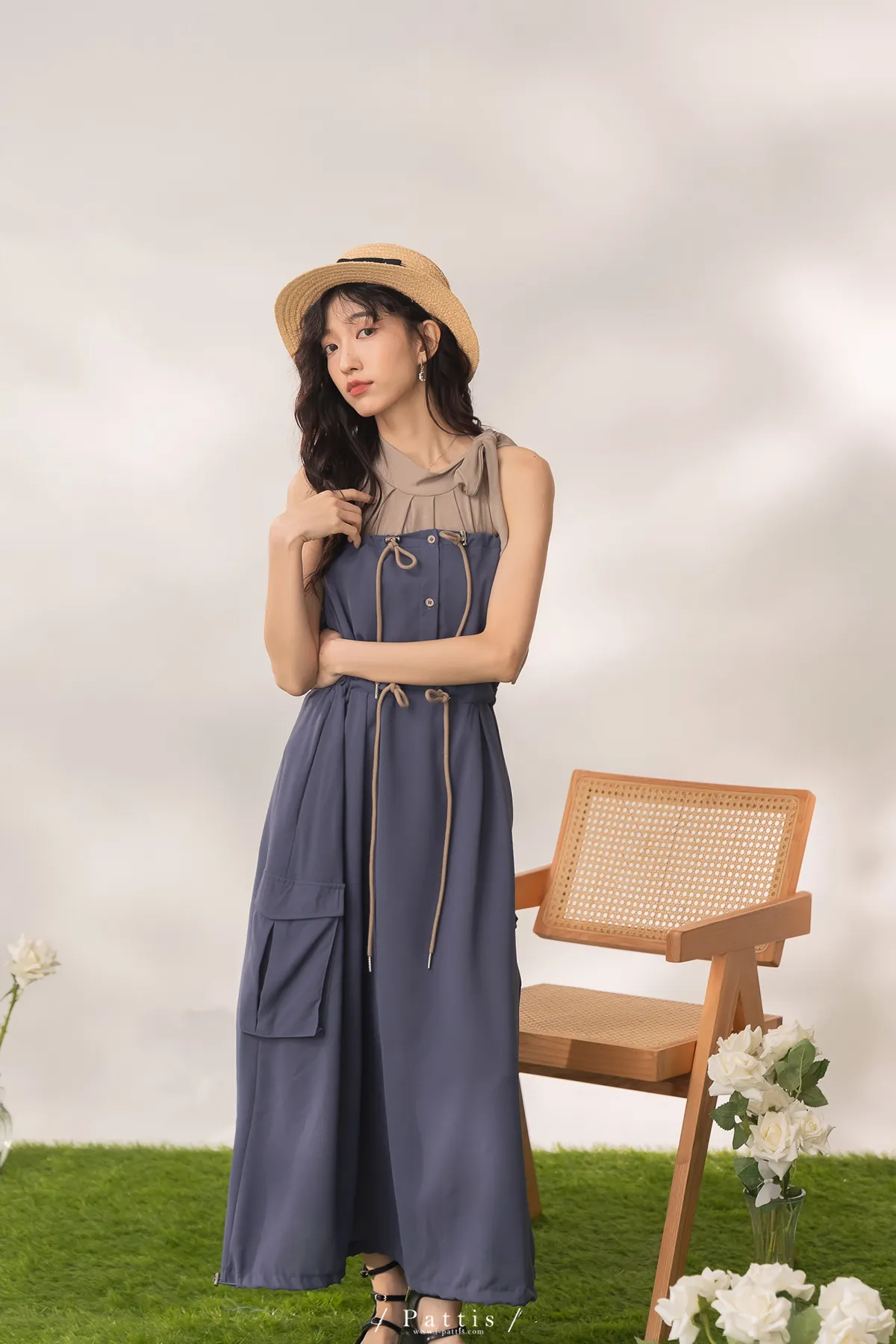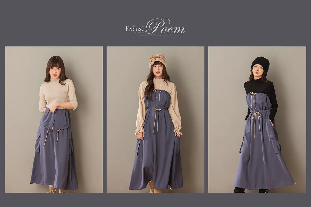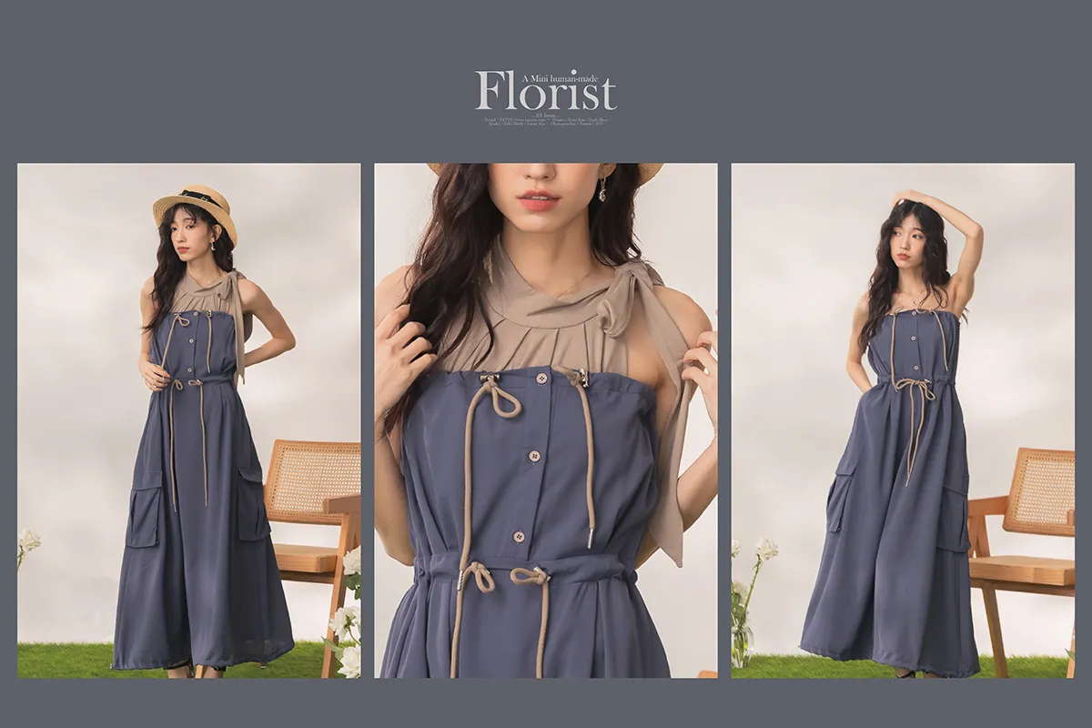 (復刻回歸) 餘韻是色譜依存症 | 2way大口袋抽繩平口洋裝長裙(藍尾雀鳥)
