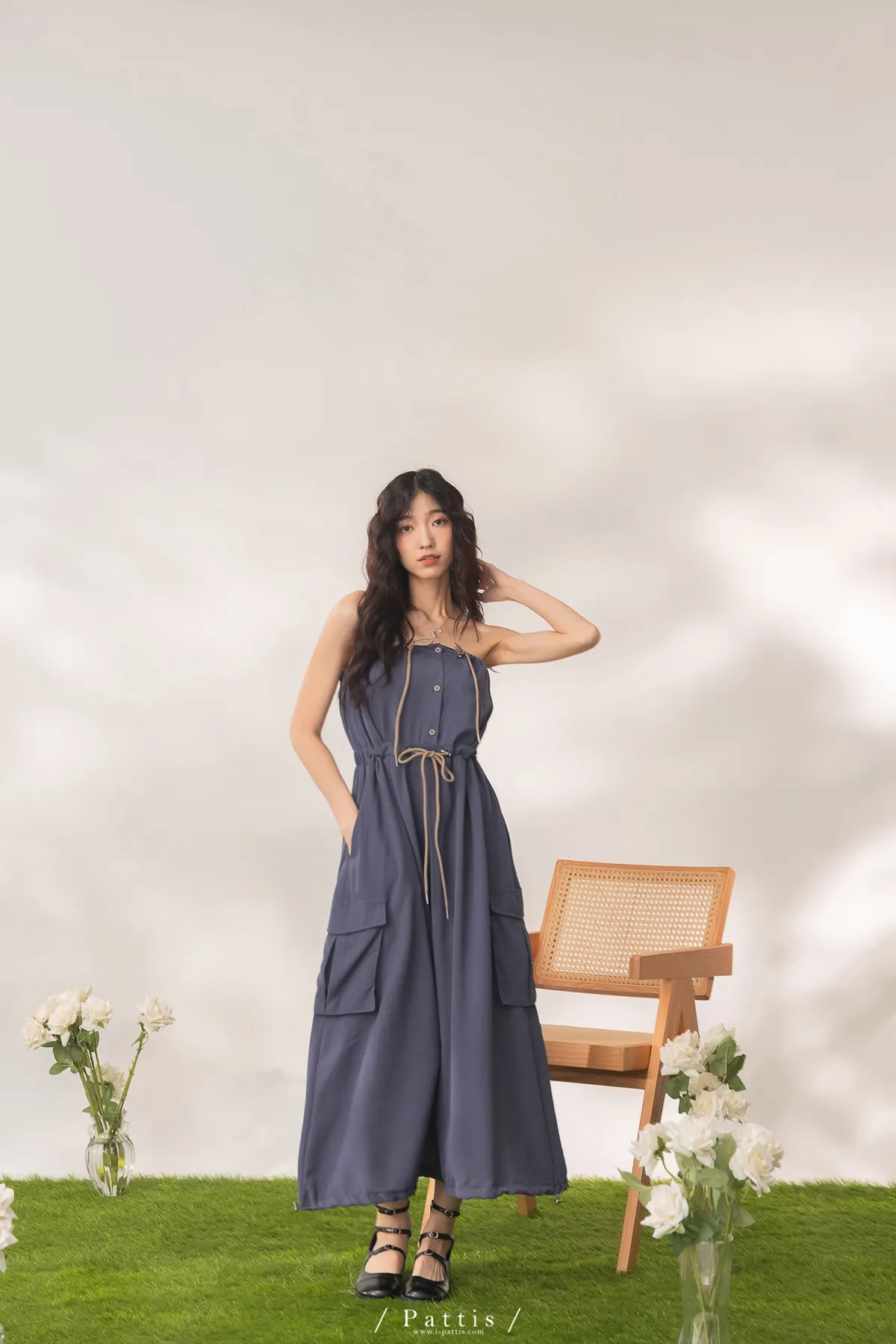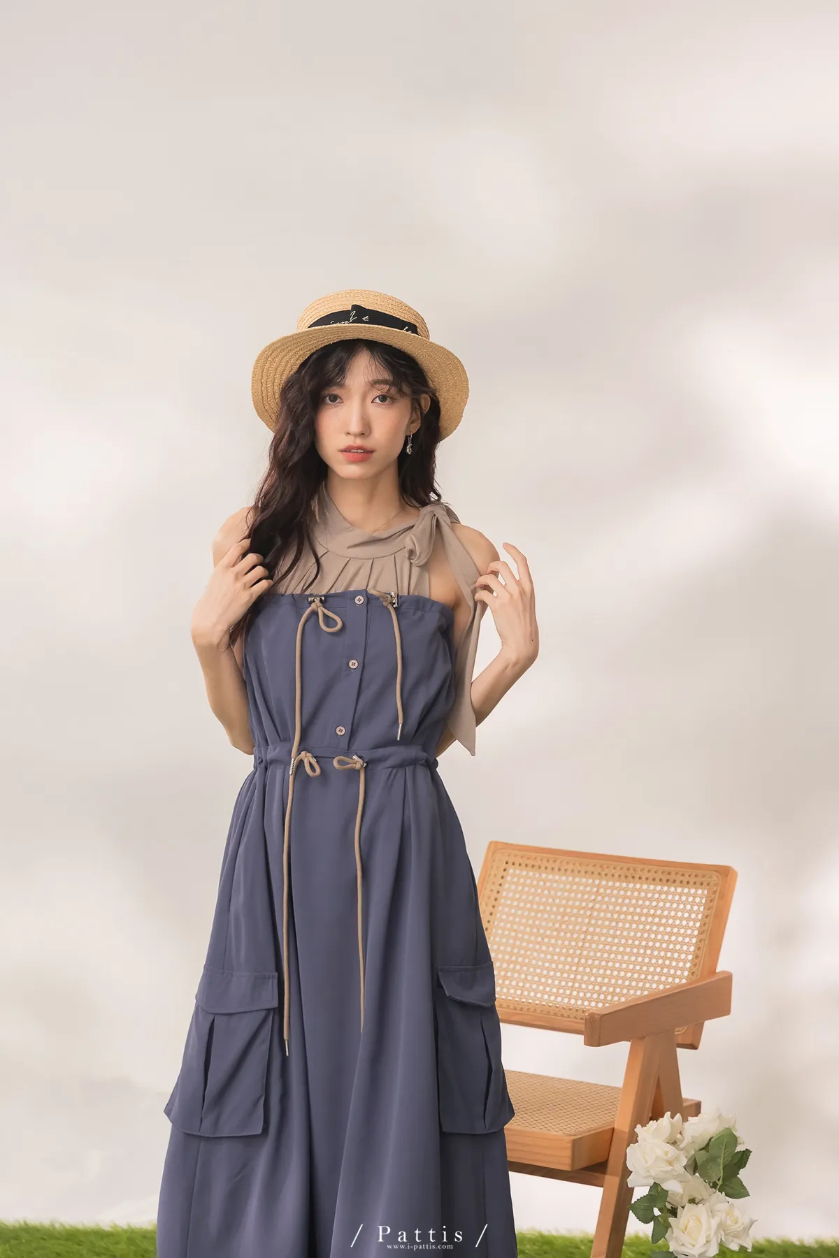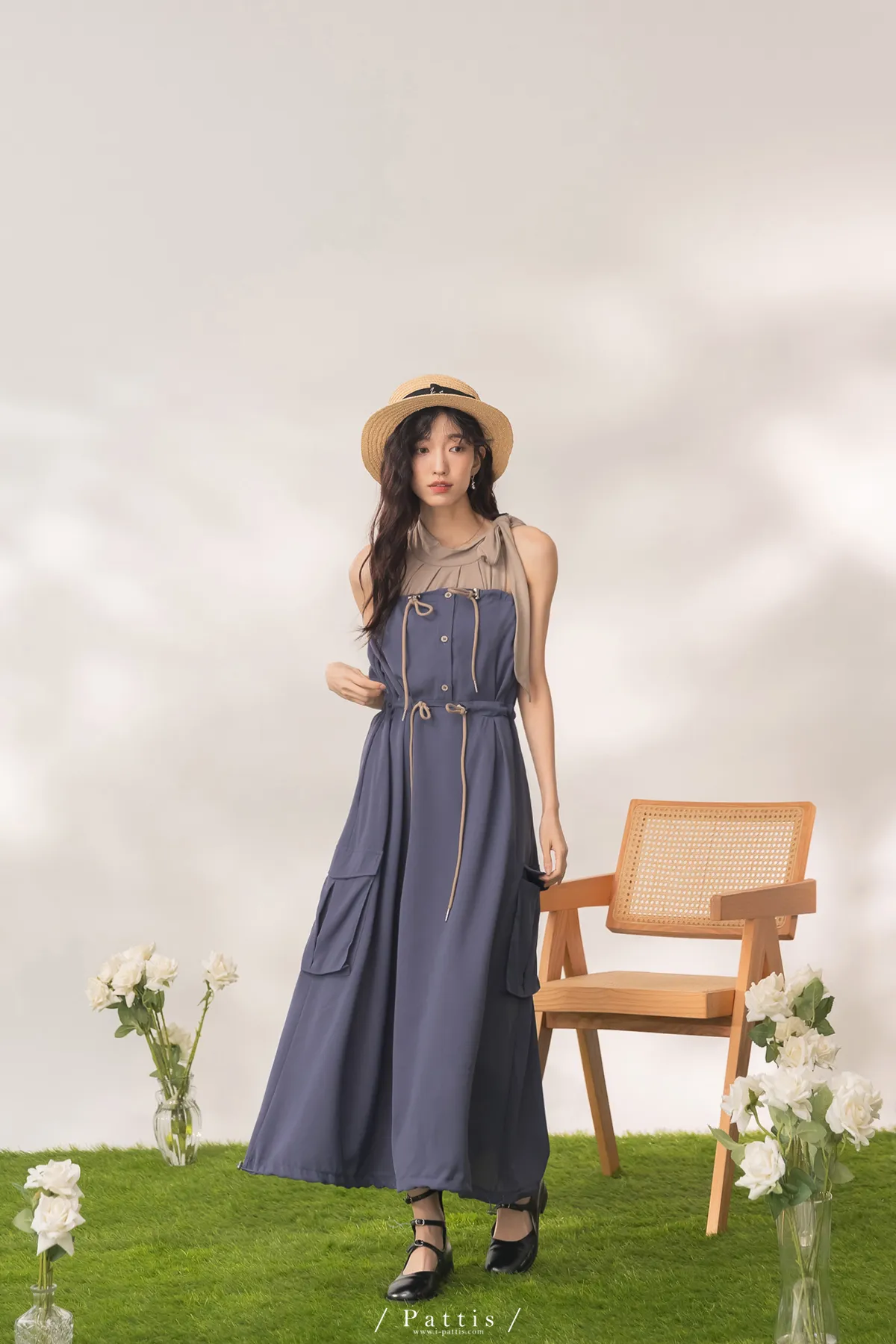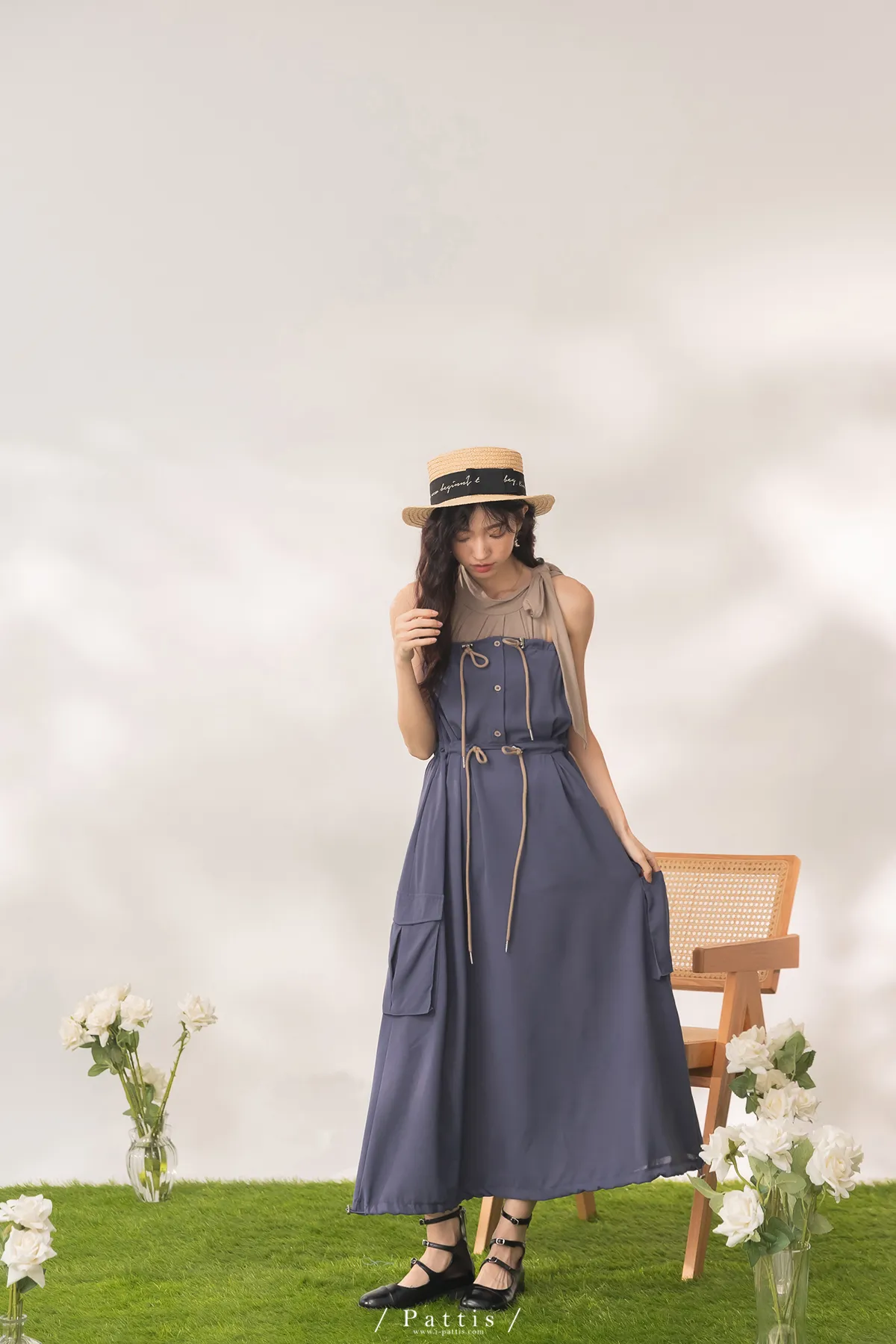洋裝是平口設計,胸上的是做抽繩繫帶,可以完全按照身形調整;