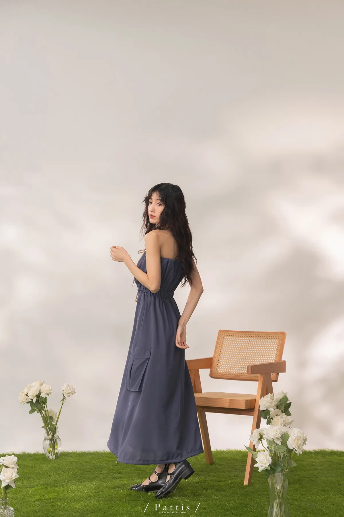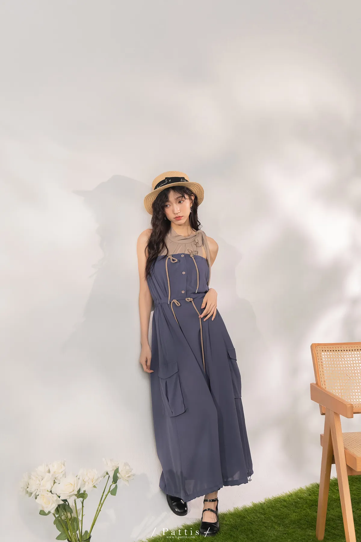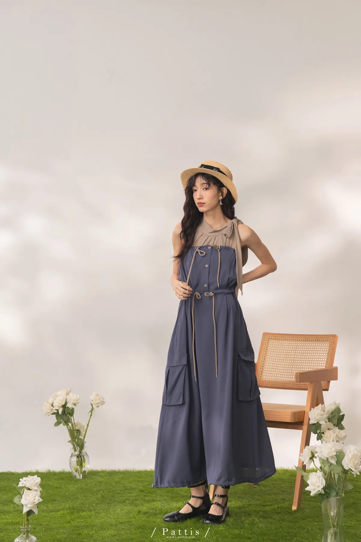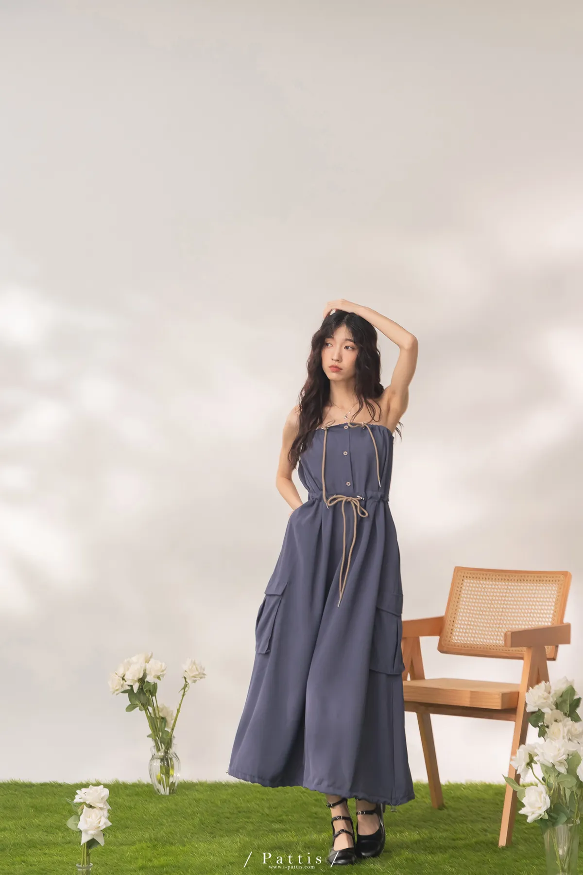 洋裝是平口設計,胸上的是做抽繩繫帶,可以完全按照身形調整;