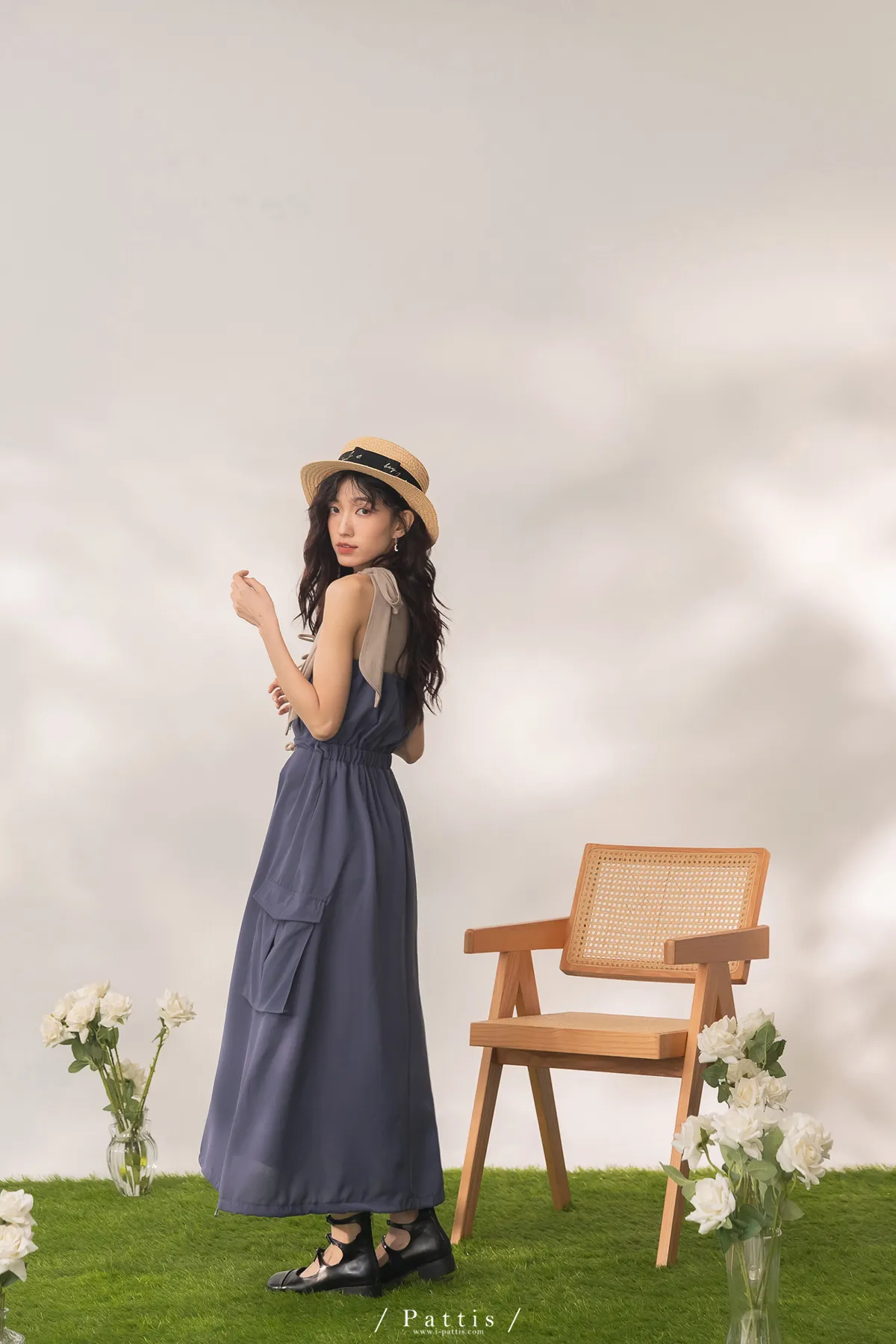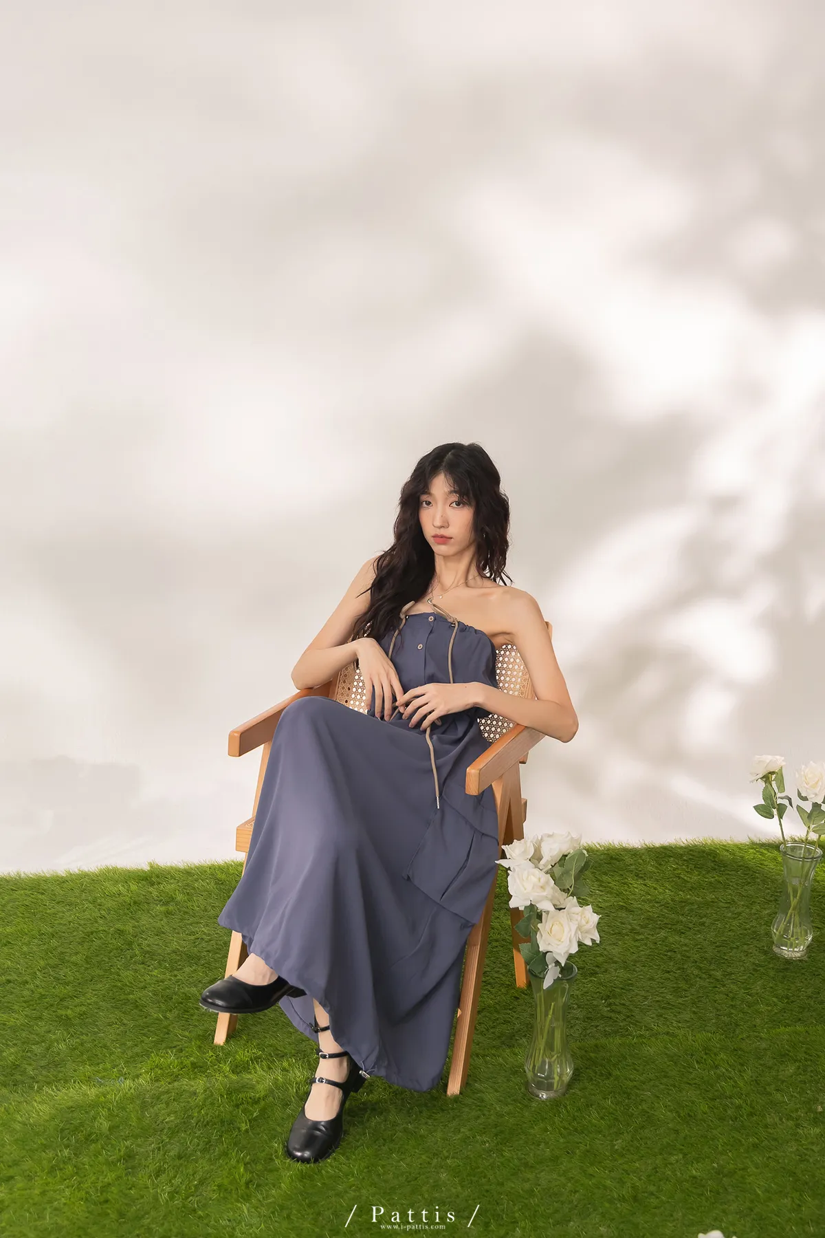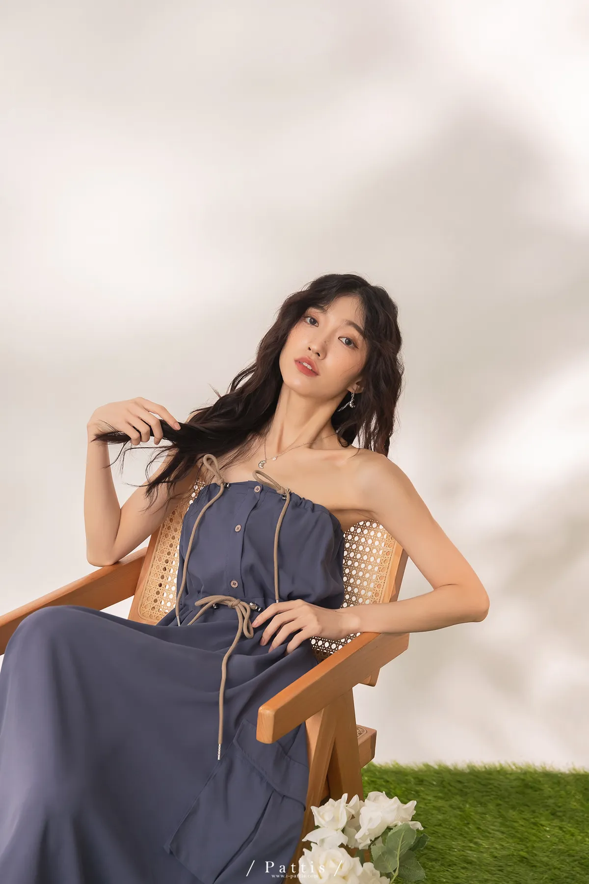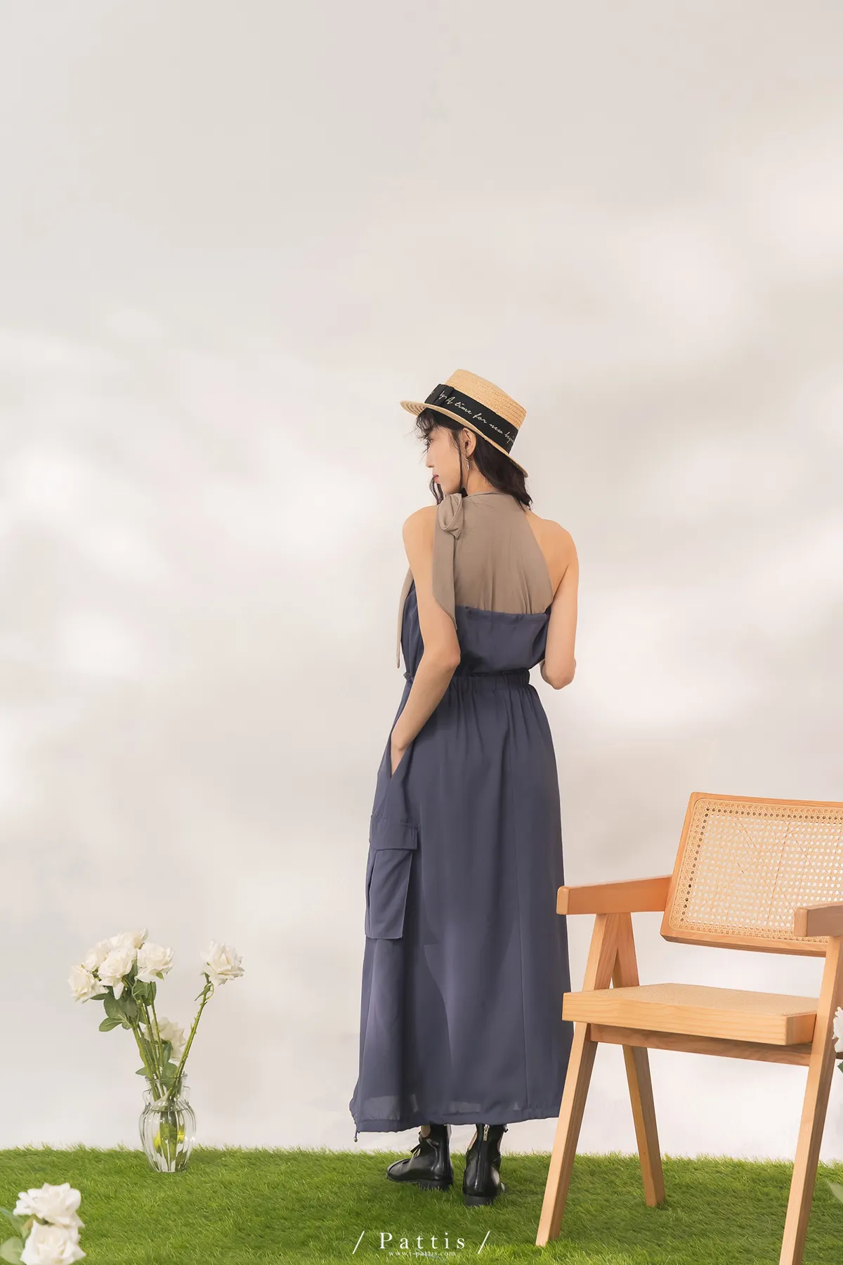 洋裝是平口設計,胸上的是做抽繩繫帶,可以完全按照身形調整;