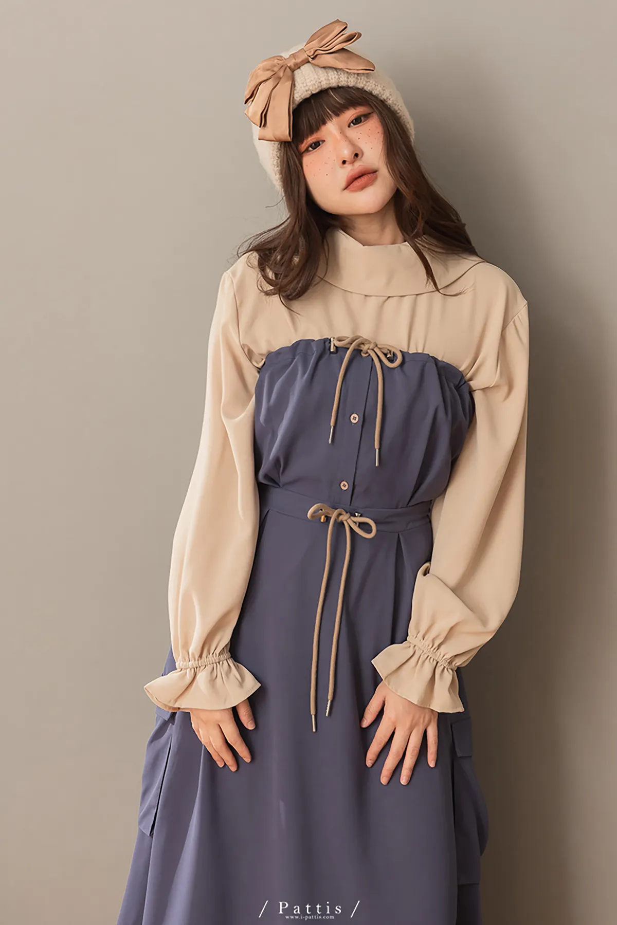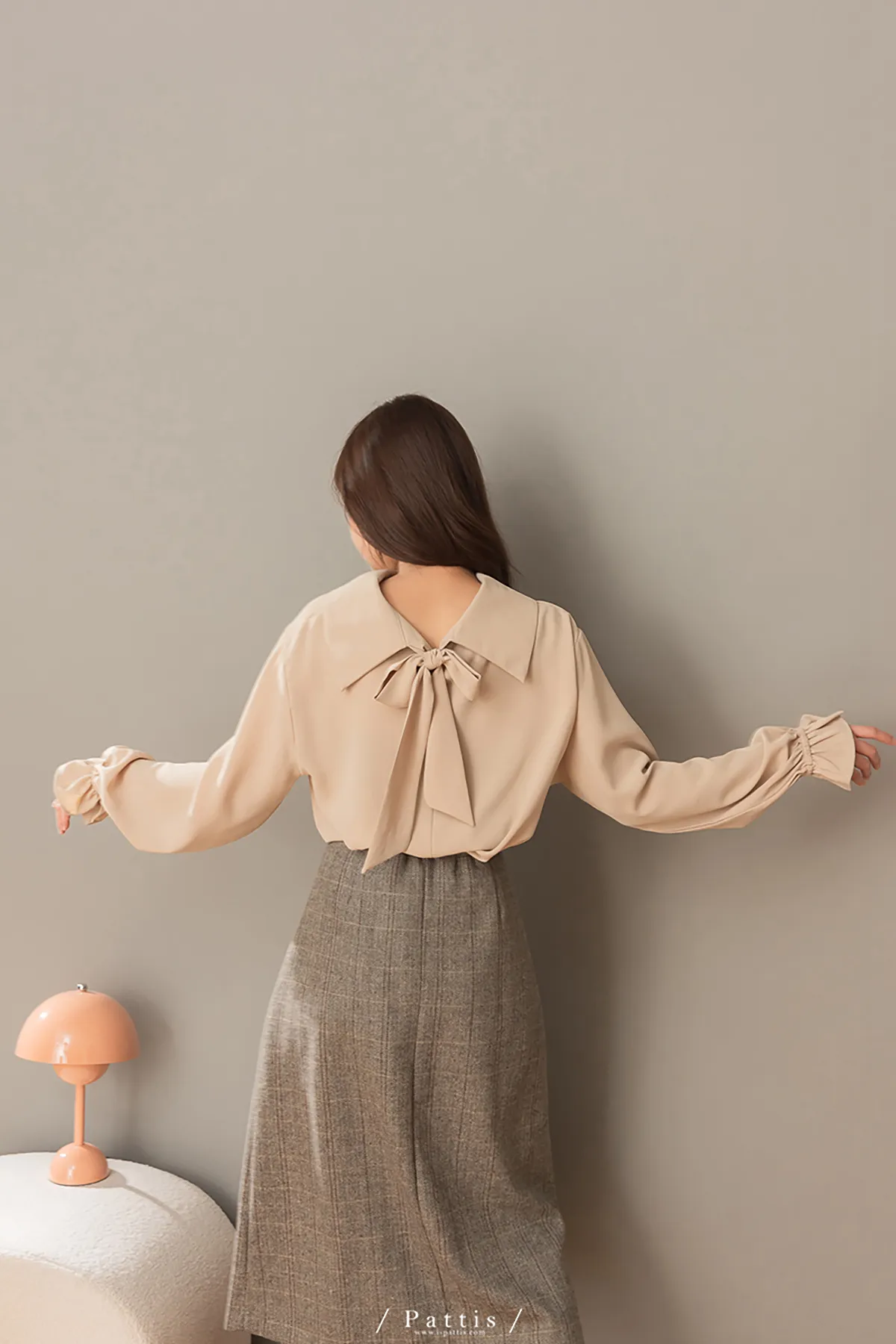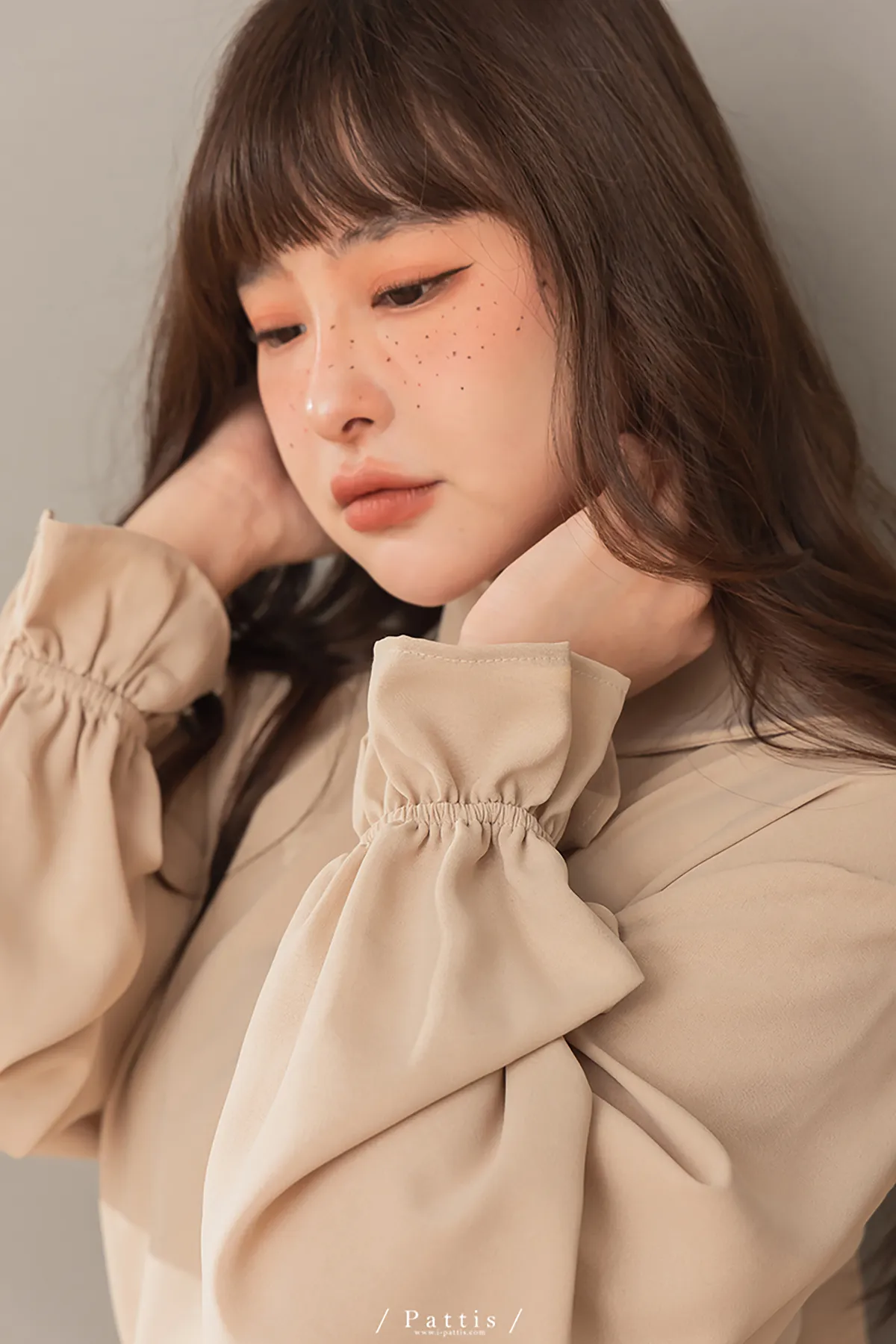 靈魂是複數變化 | 正反兩穿領巾設計小澎袖上衣(象牙高塔)