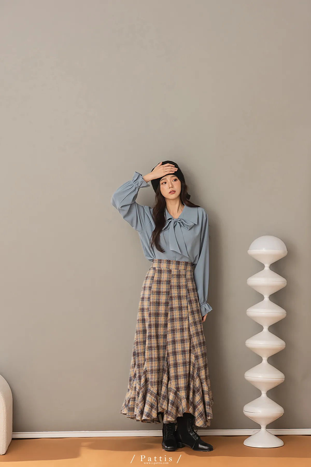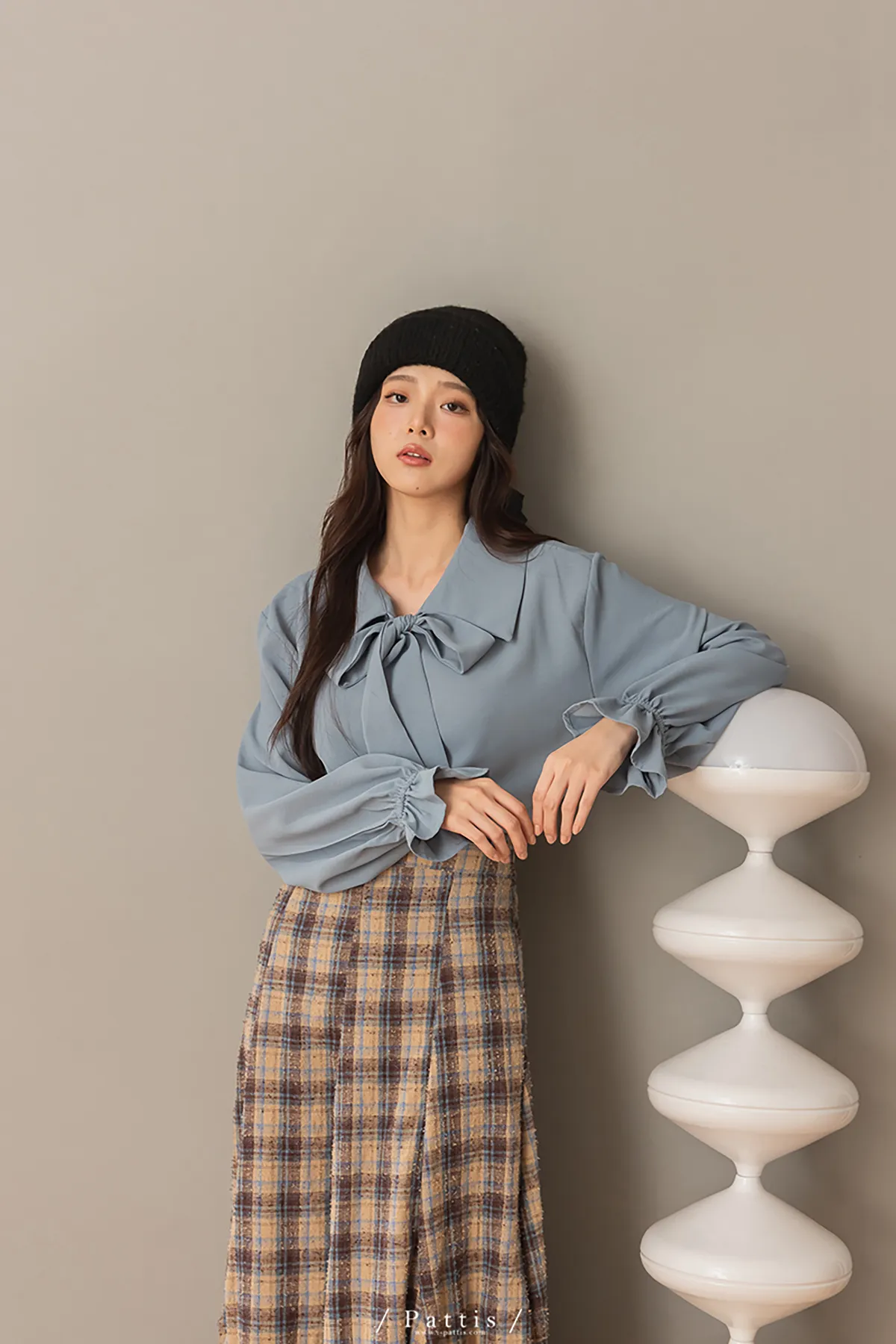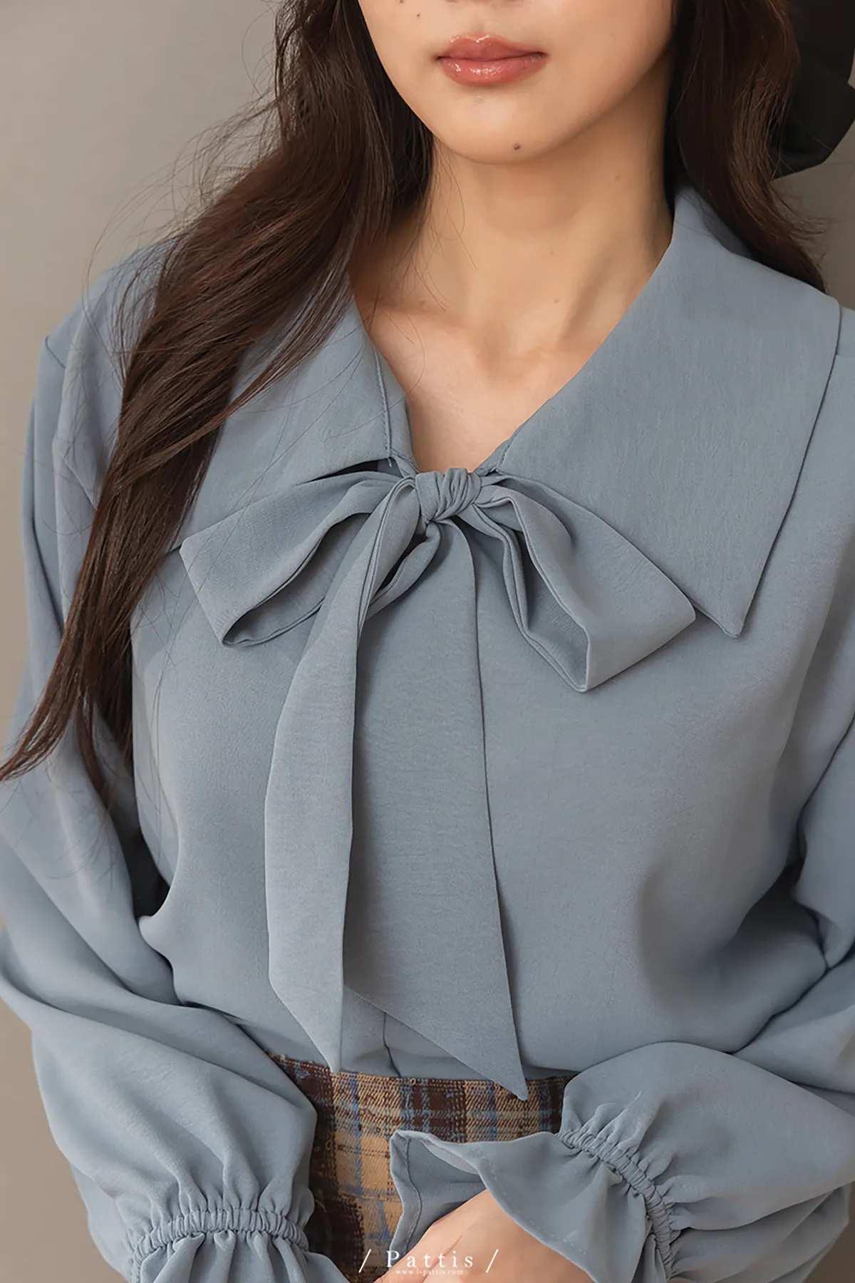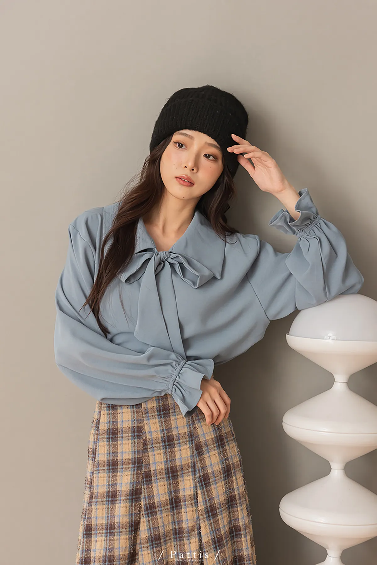 靈魂是複數變化 | 正反兩穿領巾設計小澎袖上衣(挪威清晨)