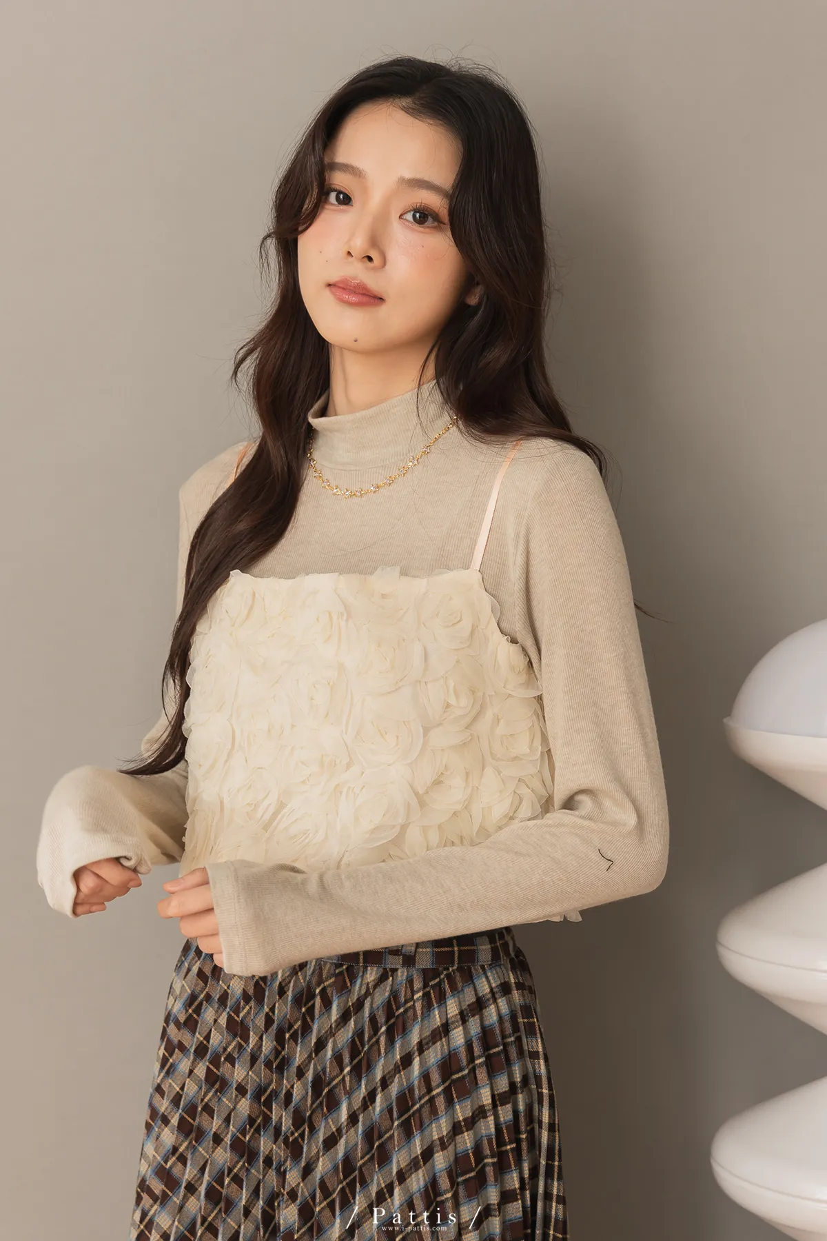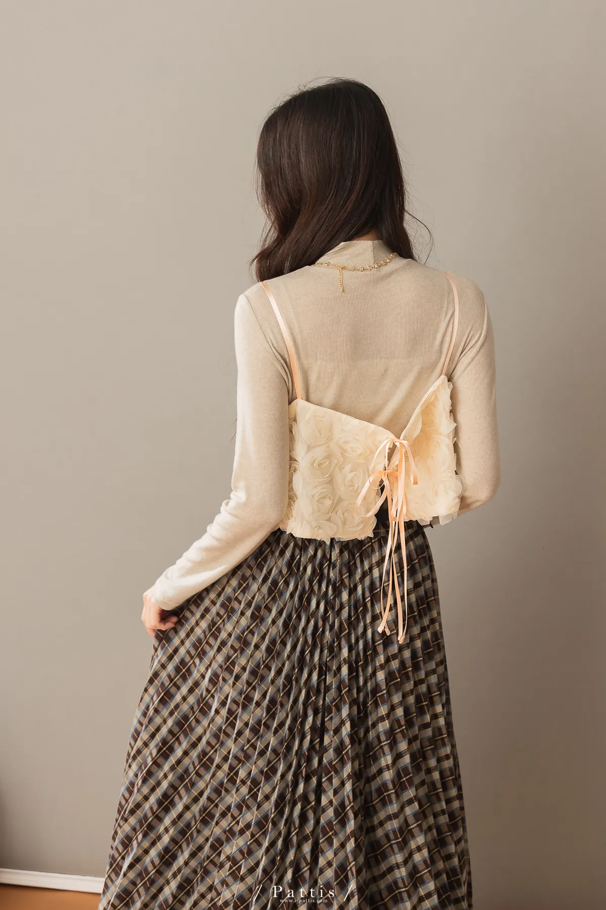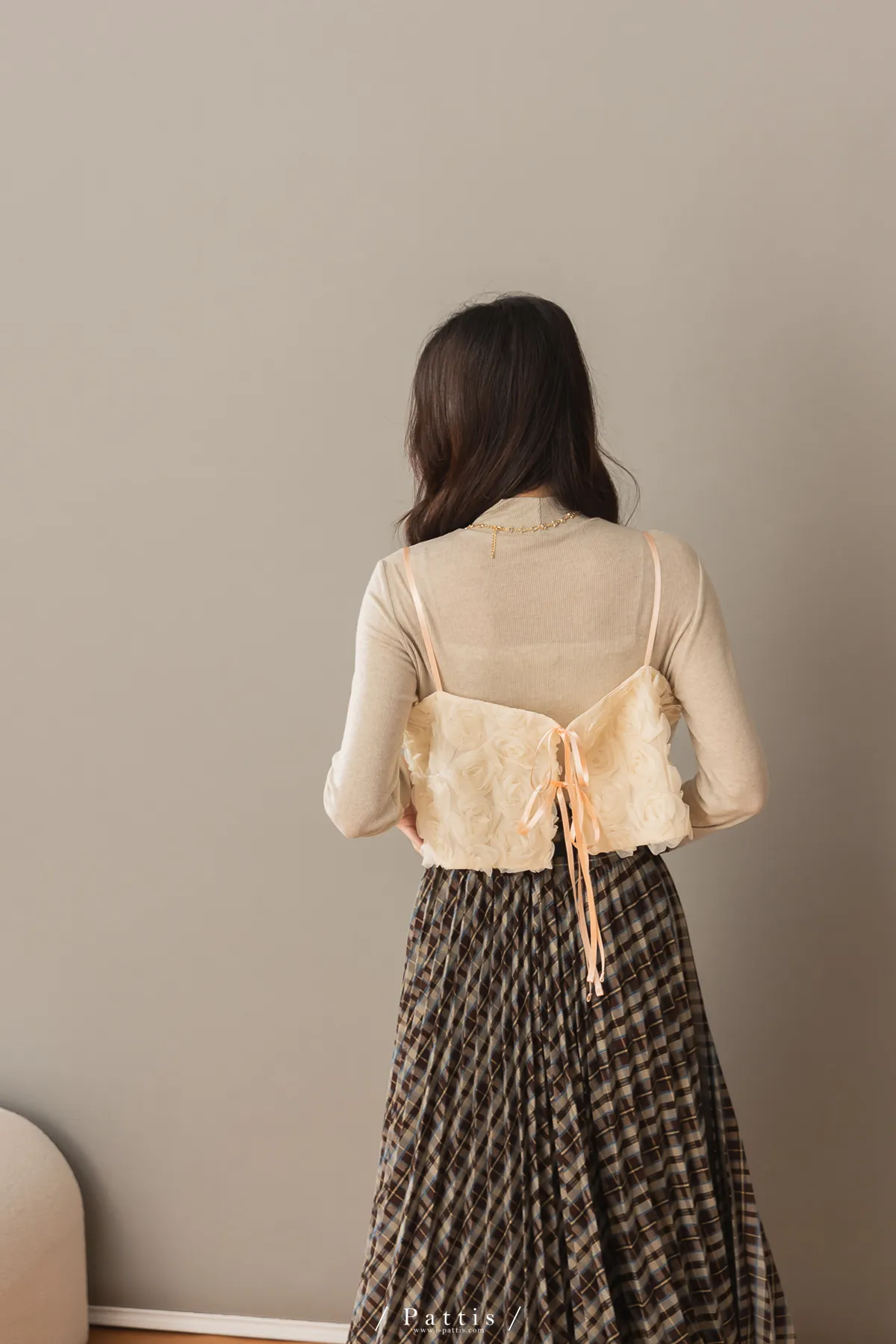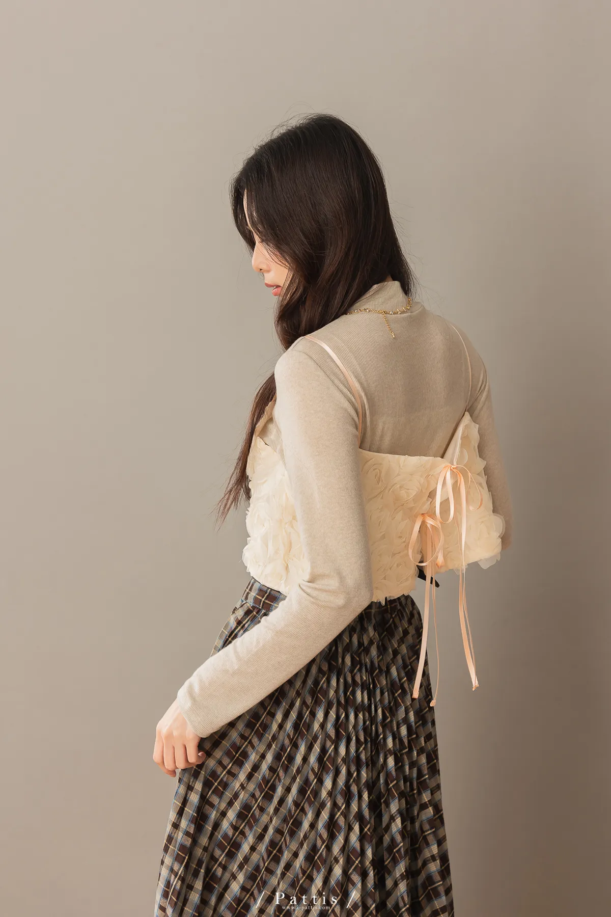(現貨) 在巴黎送我的花 | 正反兩穿立體玫瑰綁帶背心(米白)