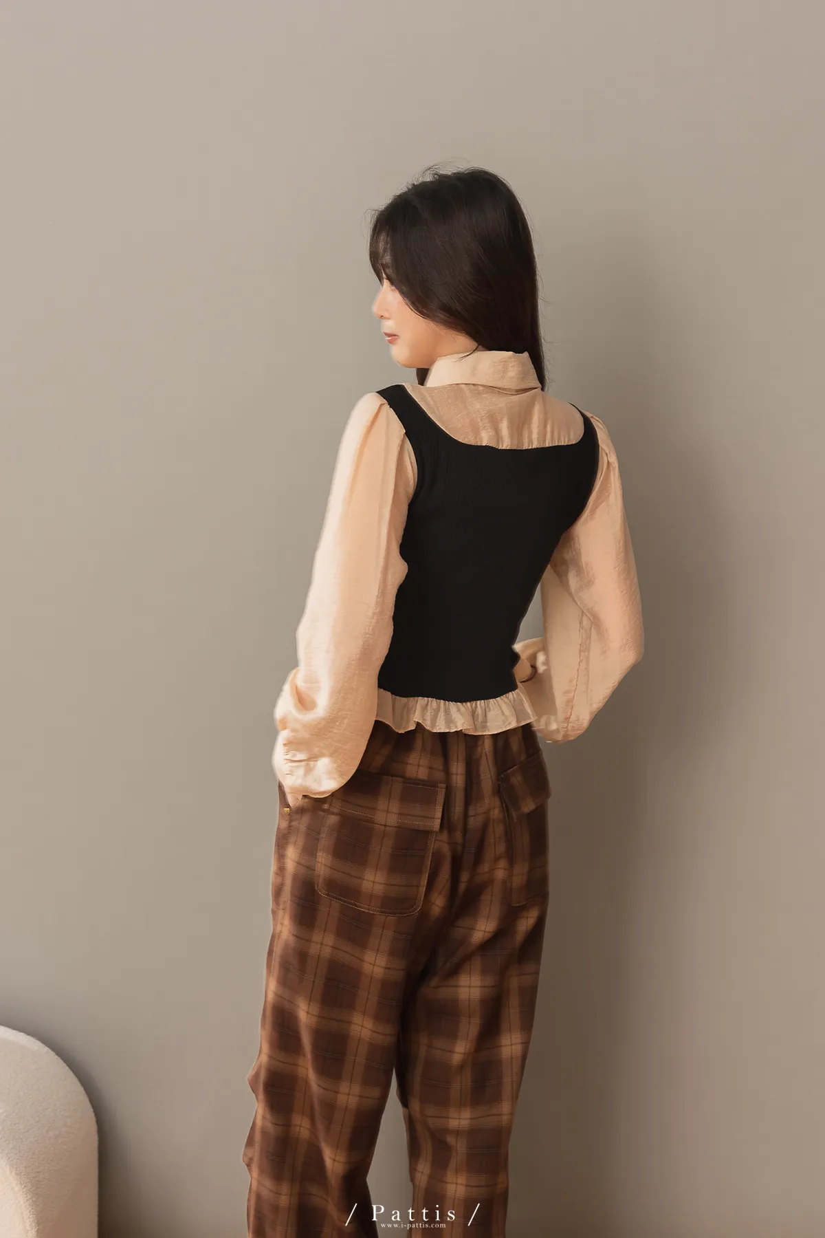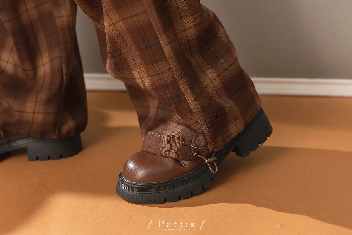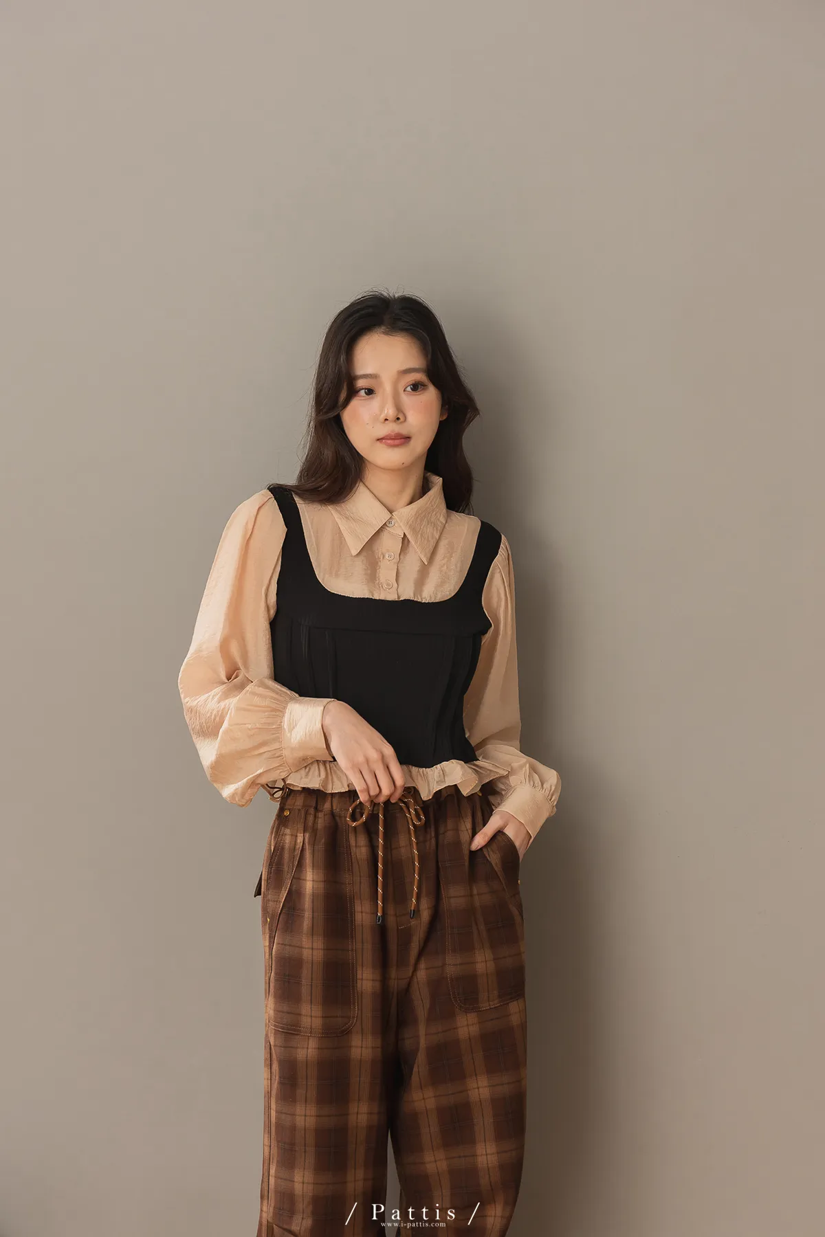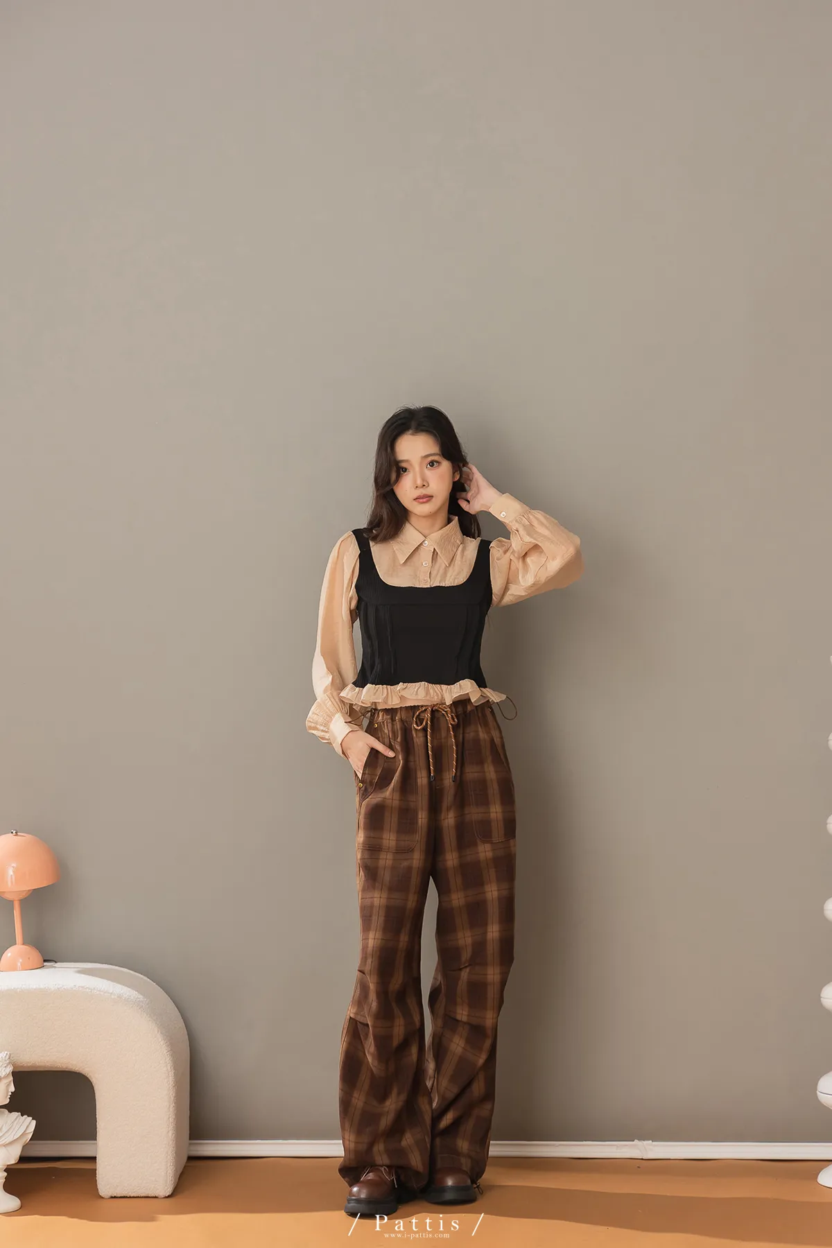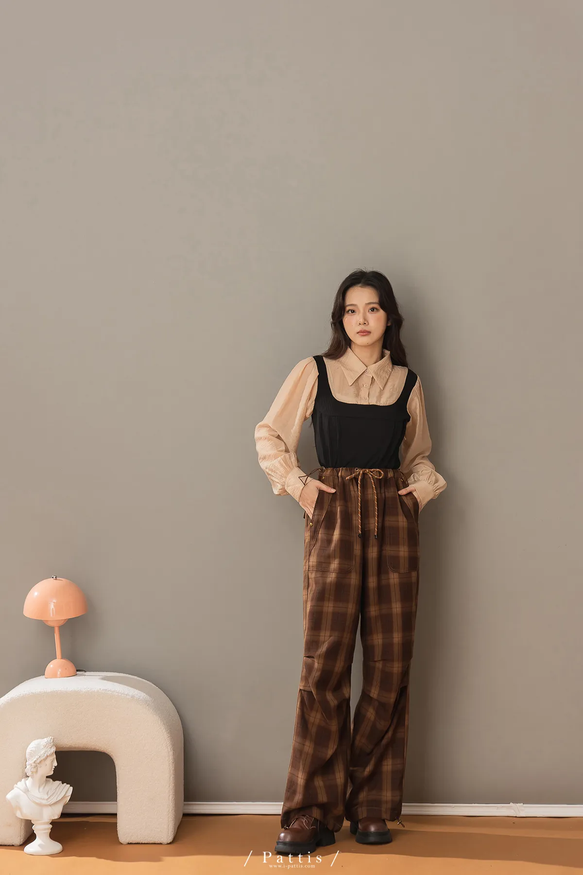 (現貨) 舊時光手札 | 復古格紋繫帶縮口寬褲(咖)