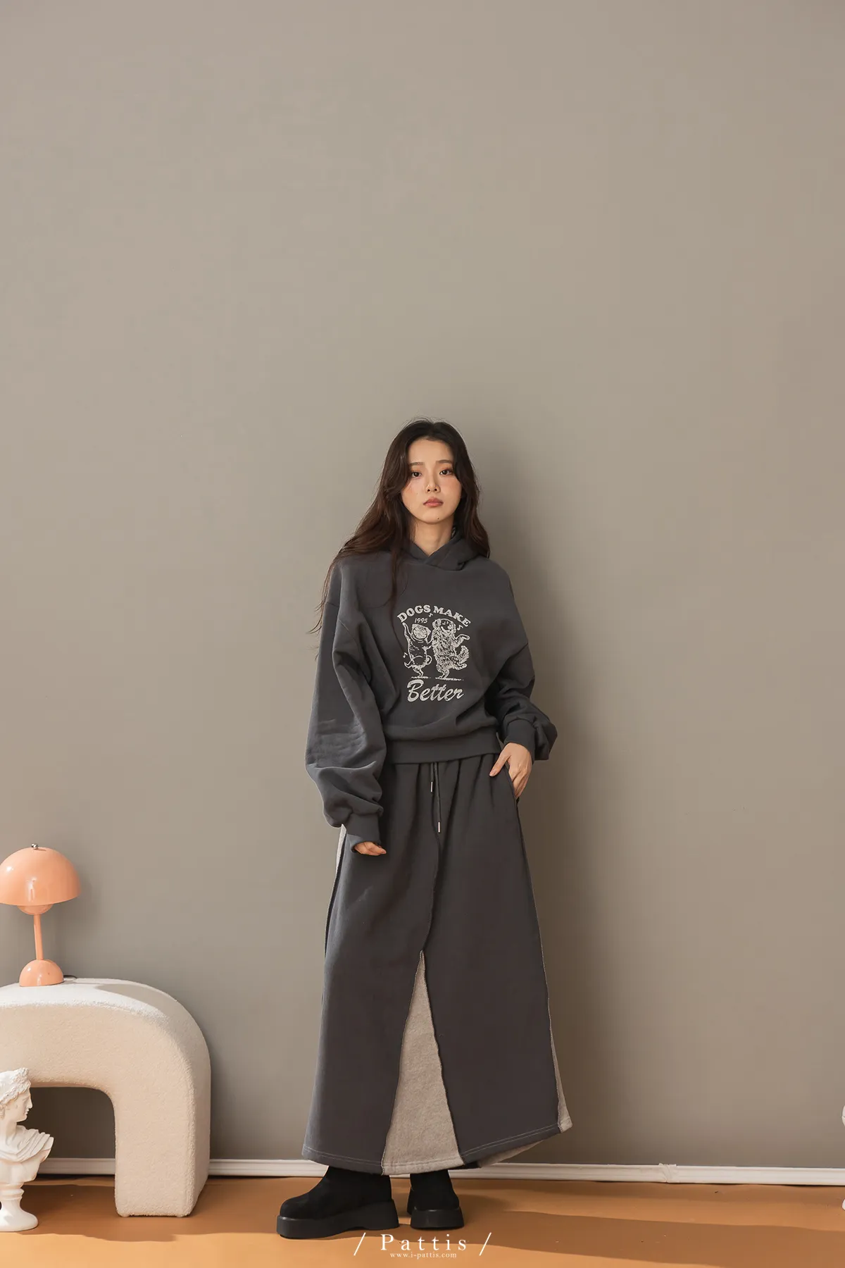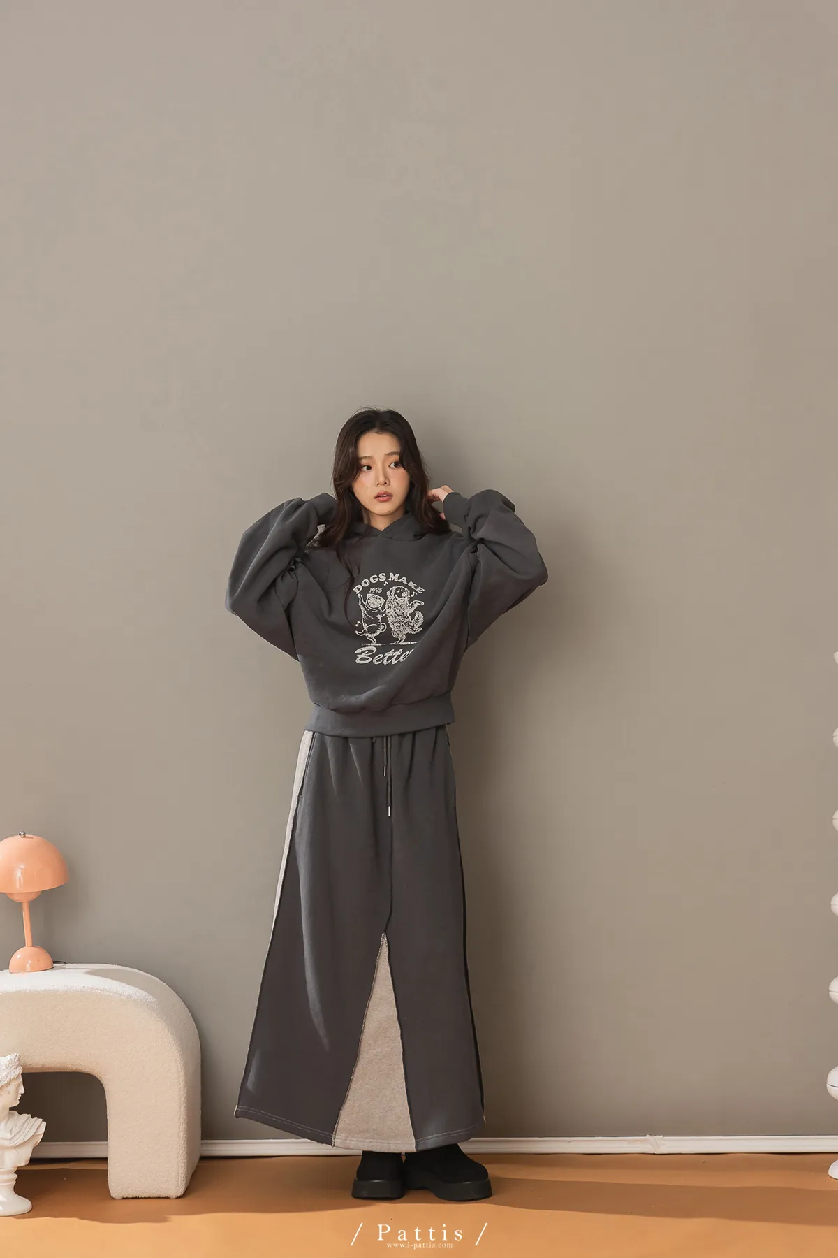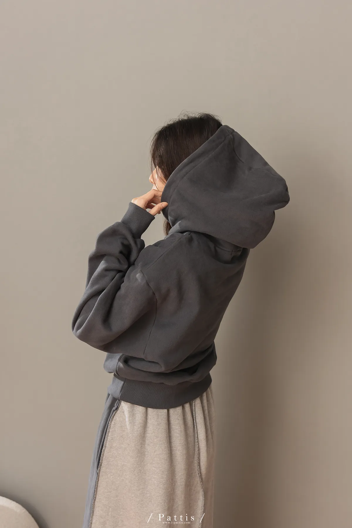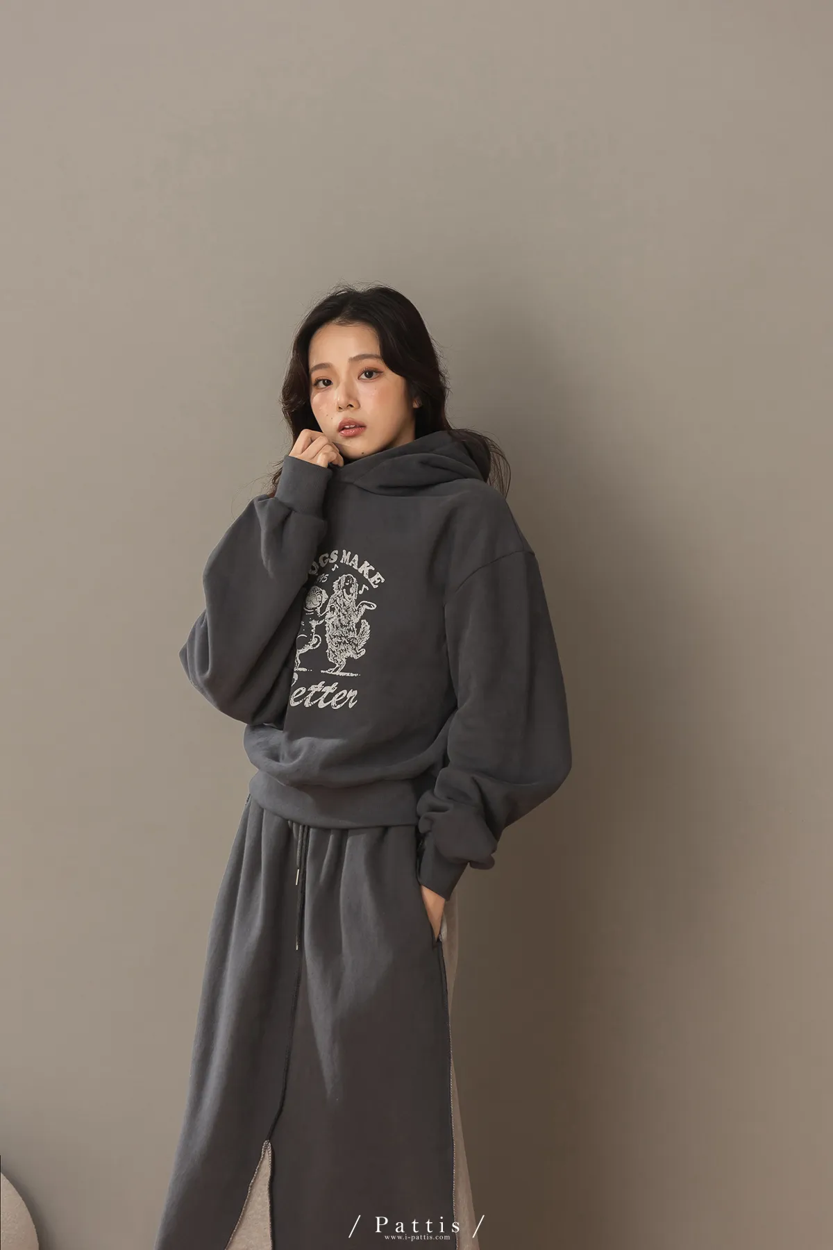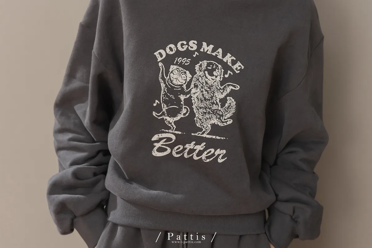 (現貨) 原點是快樂 | 小狗內刷毛厚磅帽T上衣(深灰)