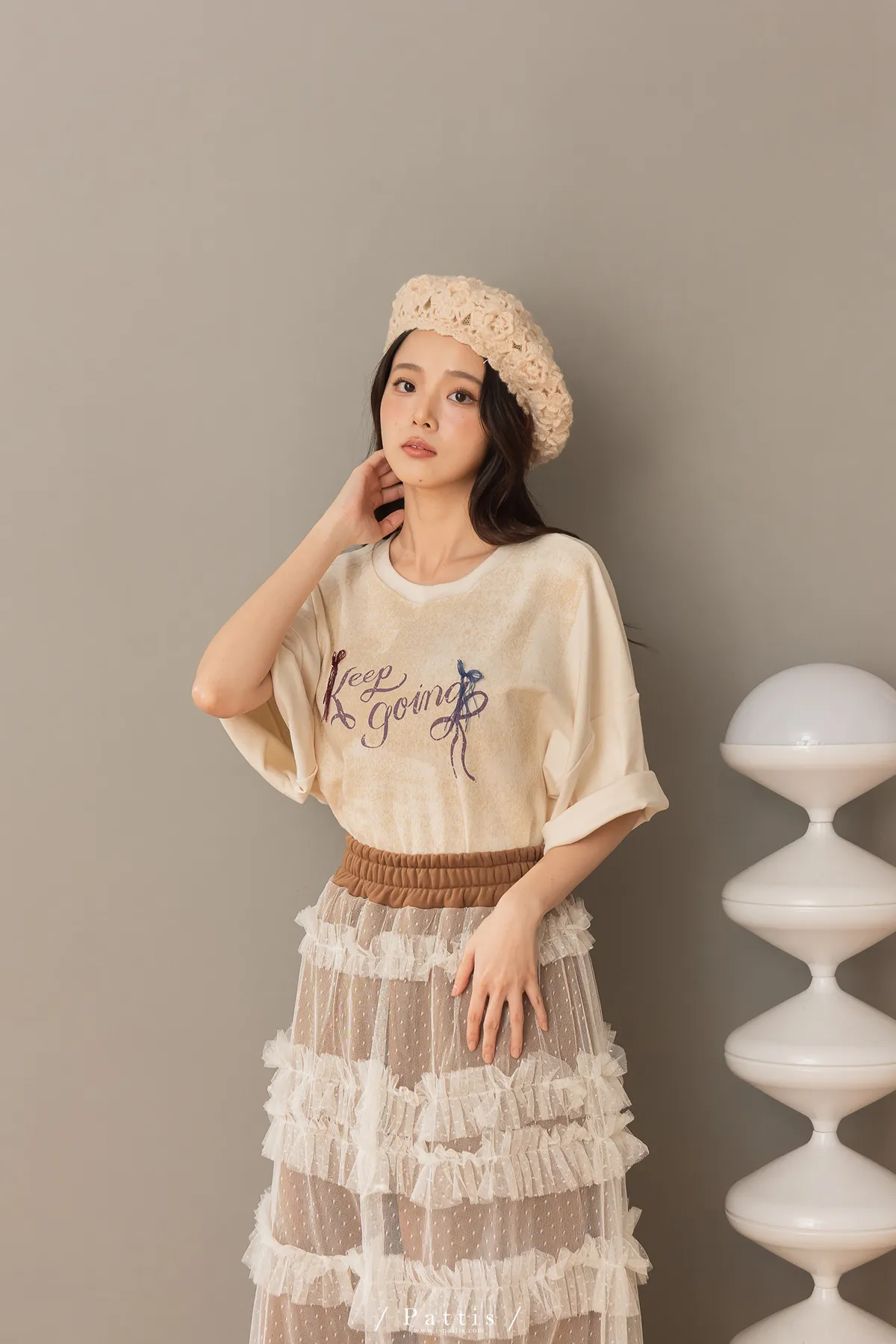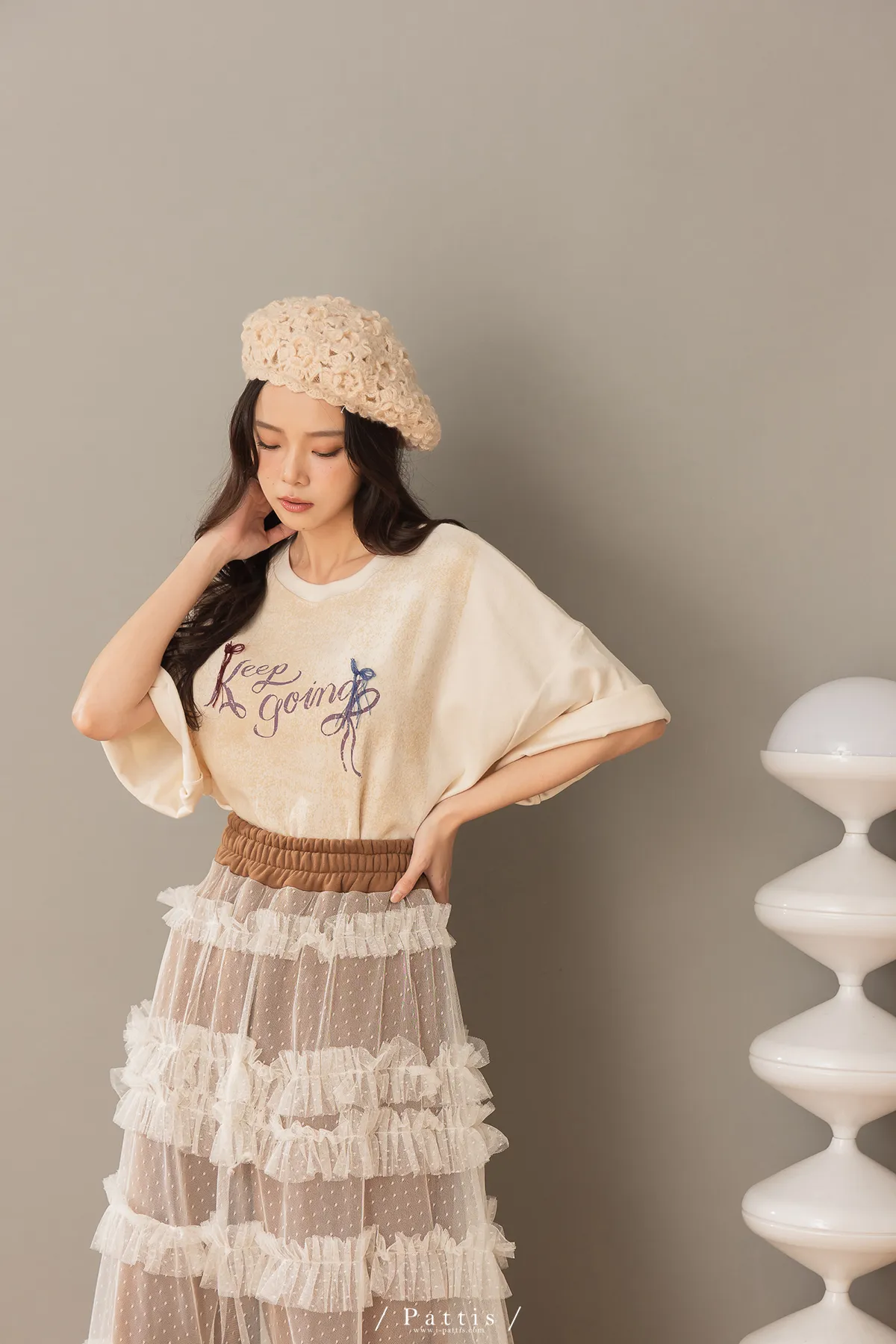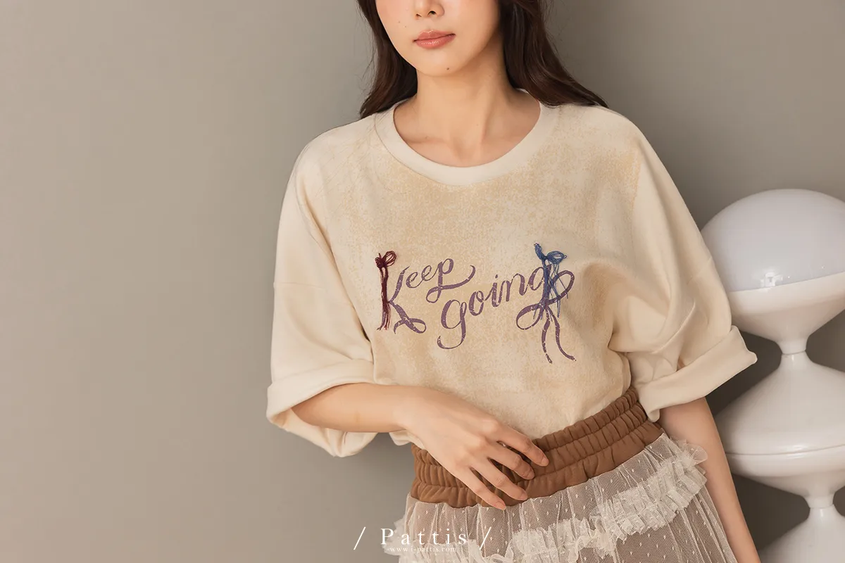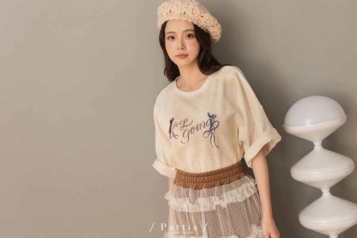 (現貨) 想念打了結 | 字母蝴蝶結刷舊造型長上衣(米杏)