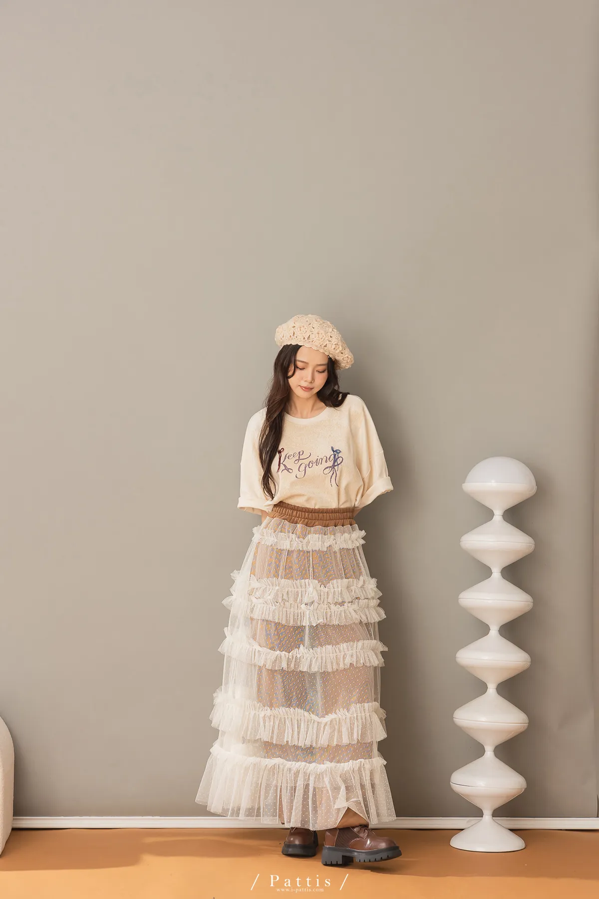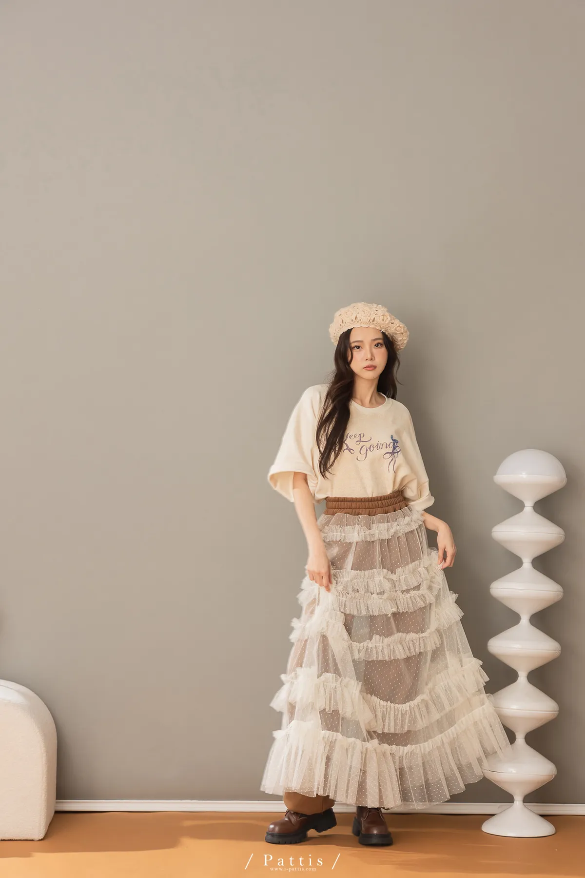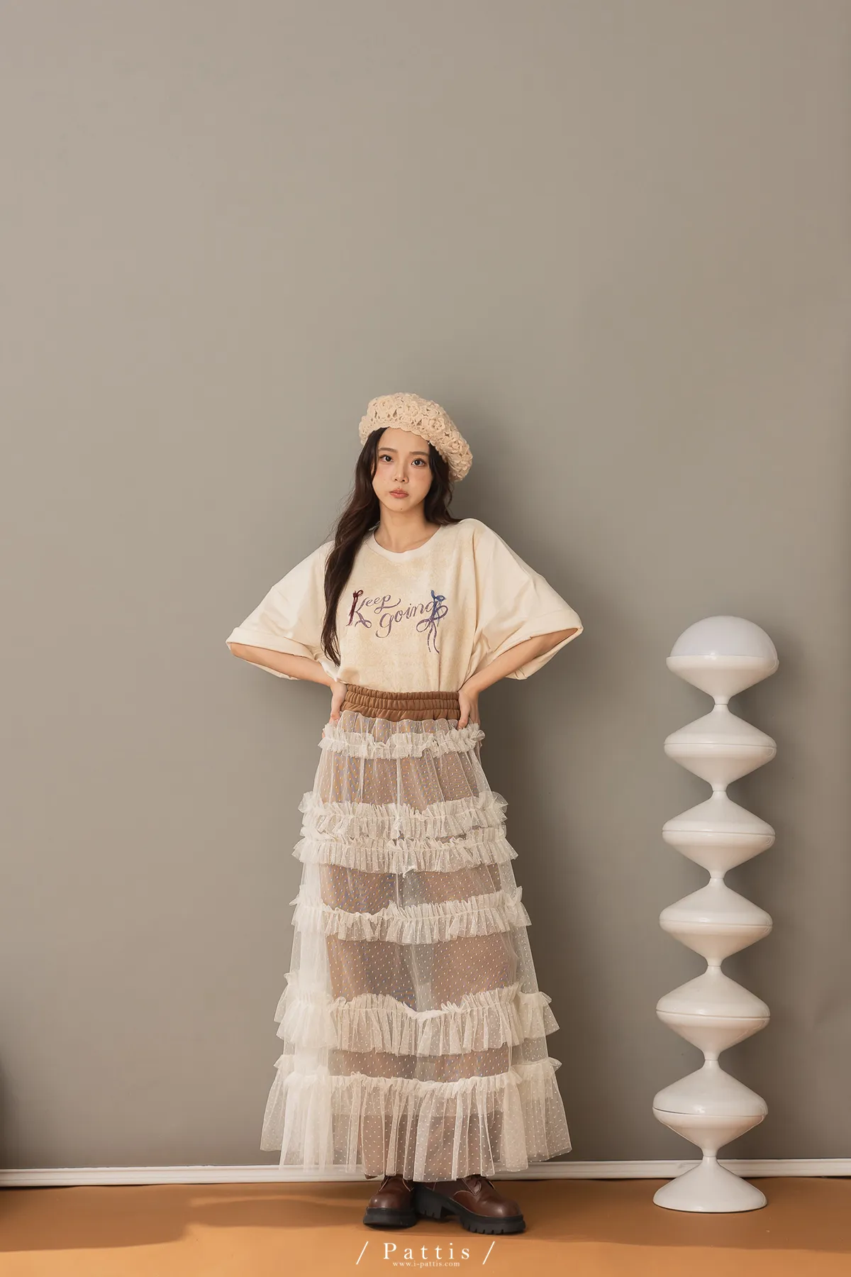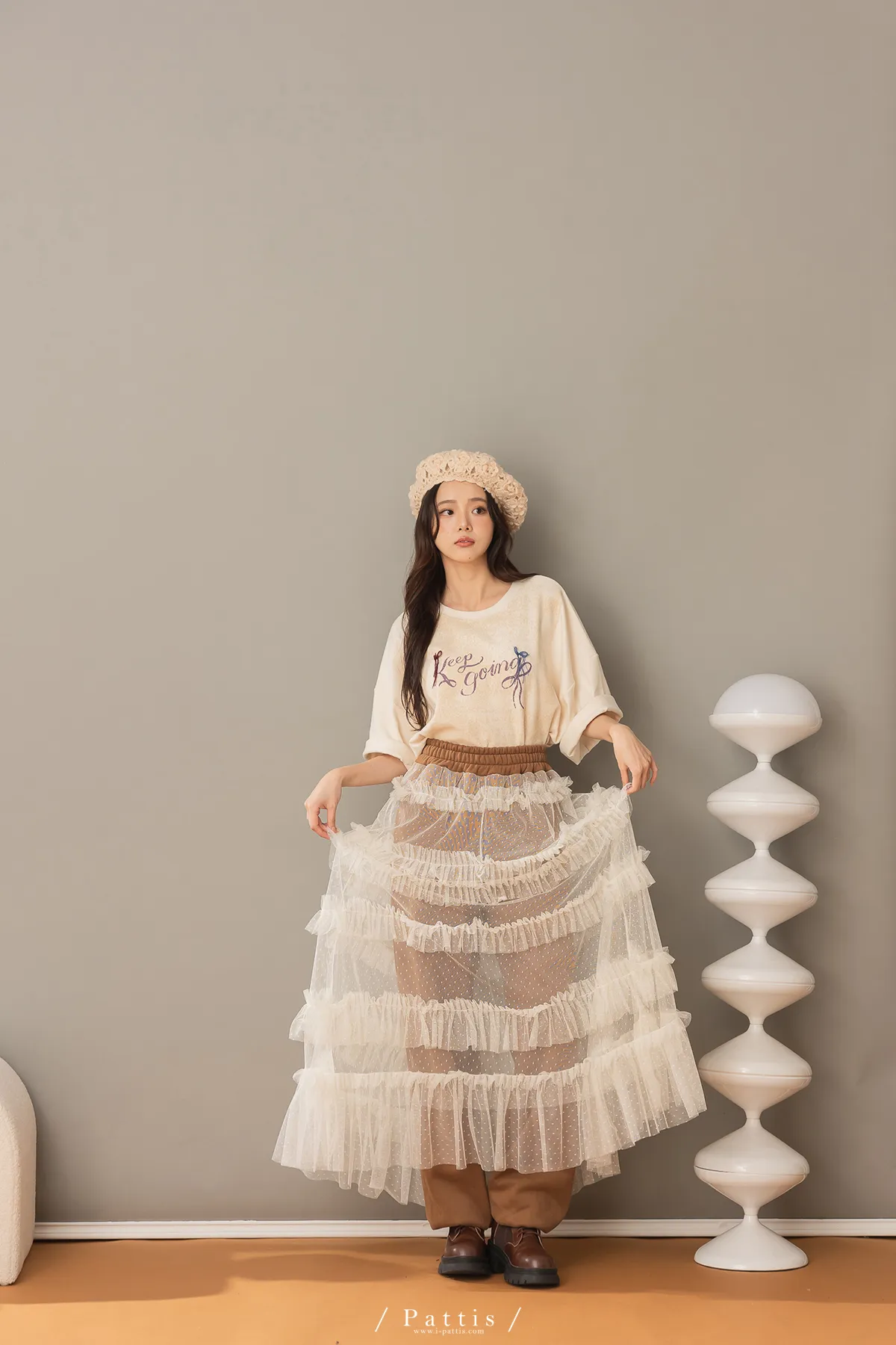 (現貨) 想念打了結 | 字母蝴蝶結刷舊造型長上衣(米杏)