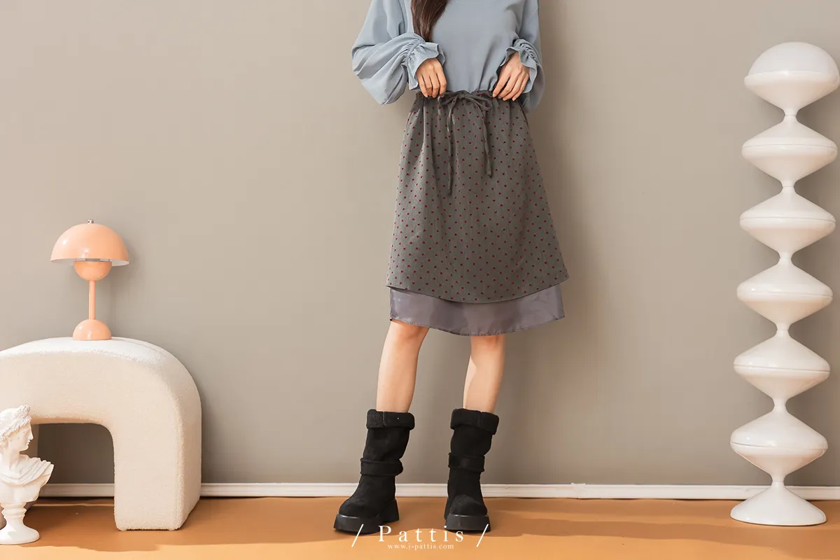 (現貨) 想你時畫一顆愛心 | 植絨愛心雙層抽繩五分裙(灰)