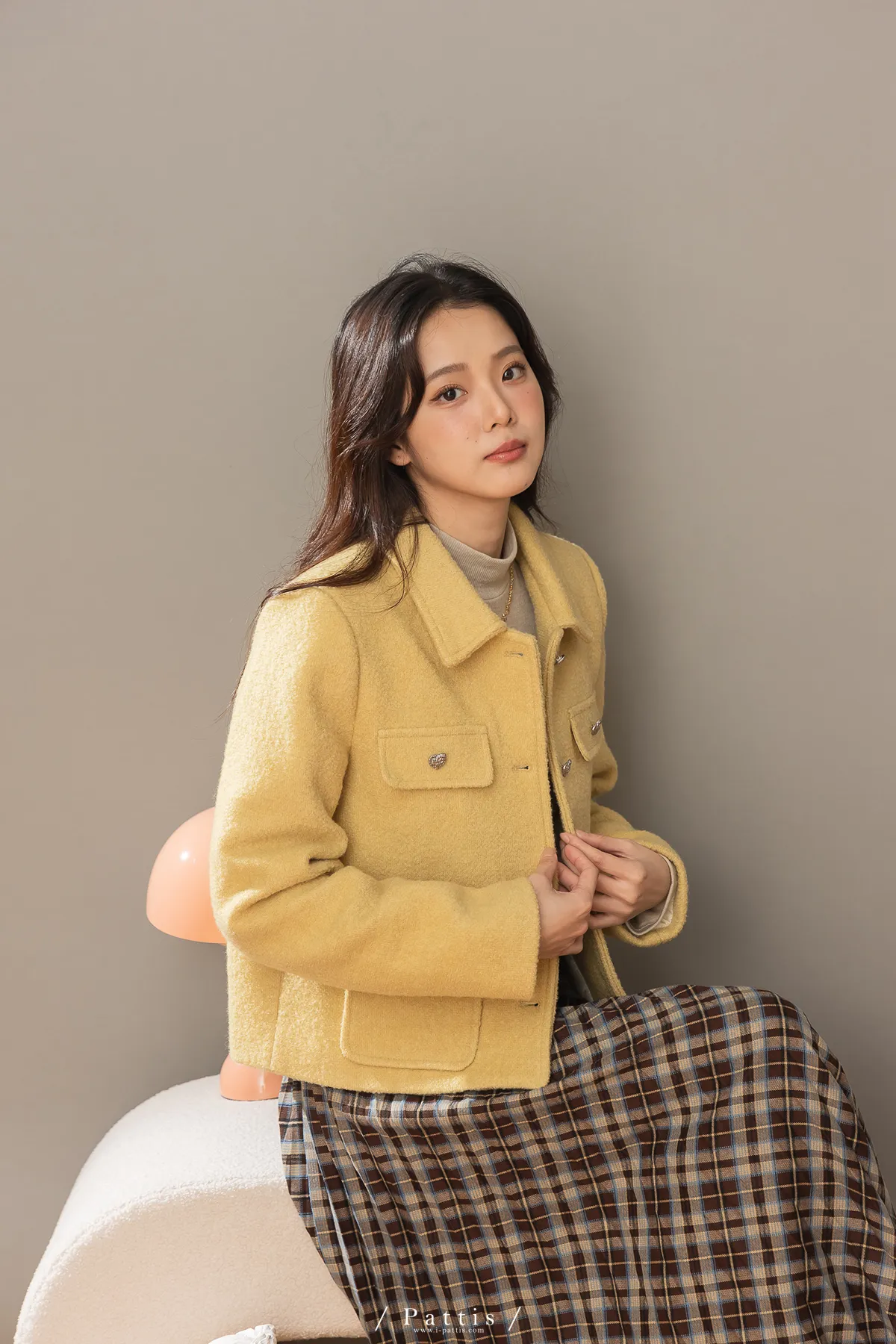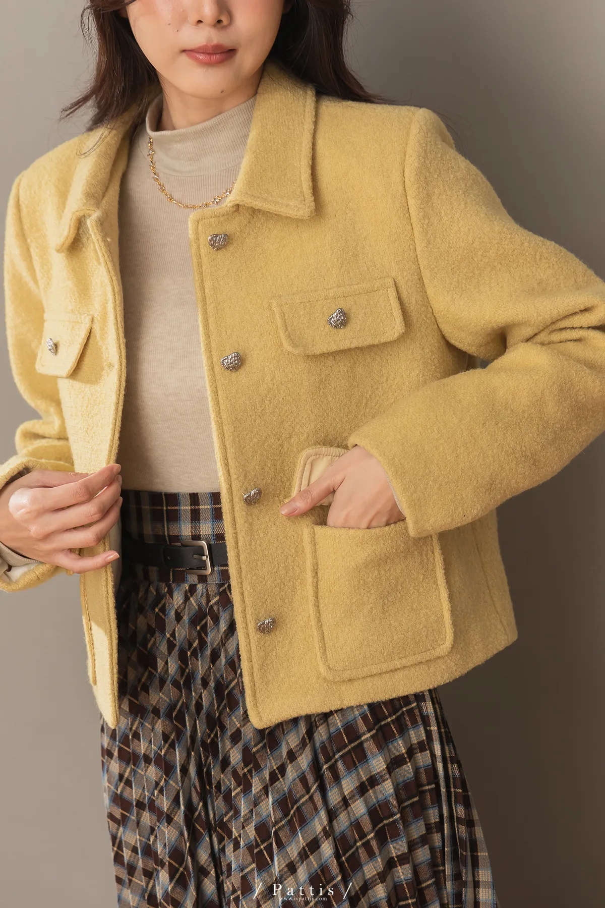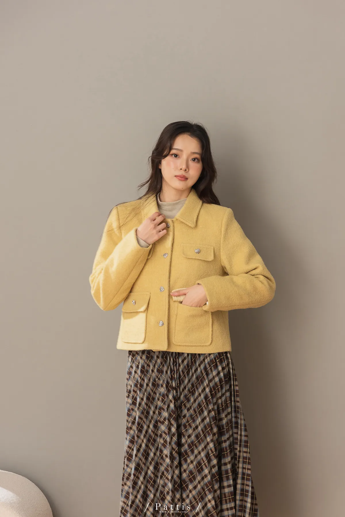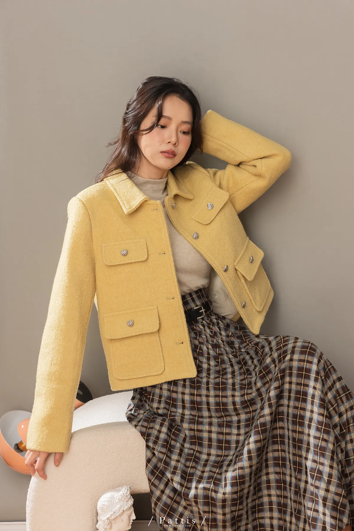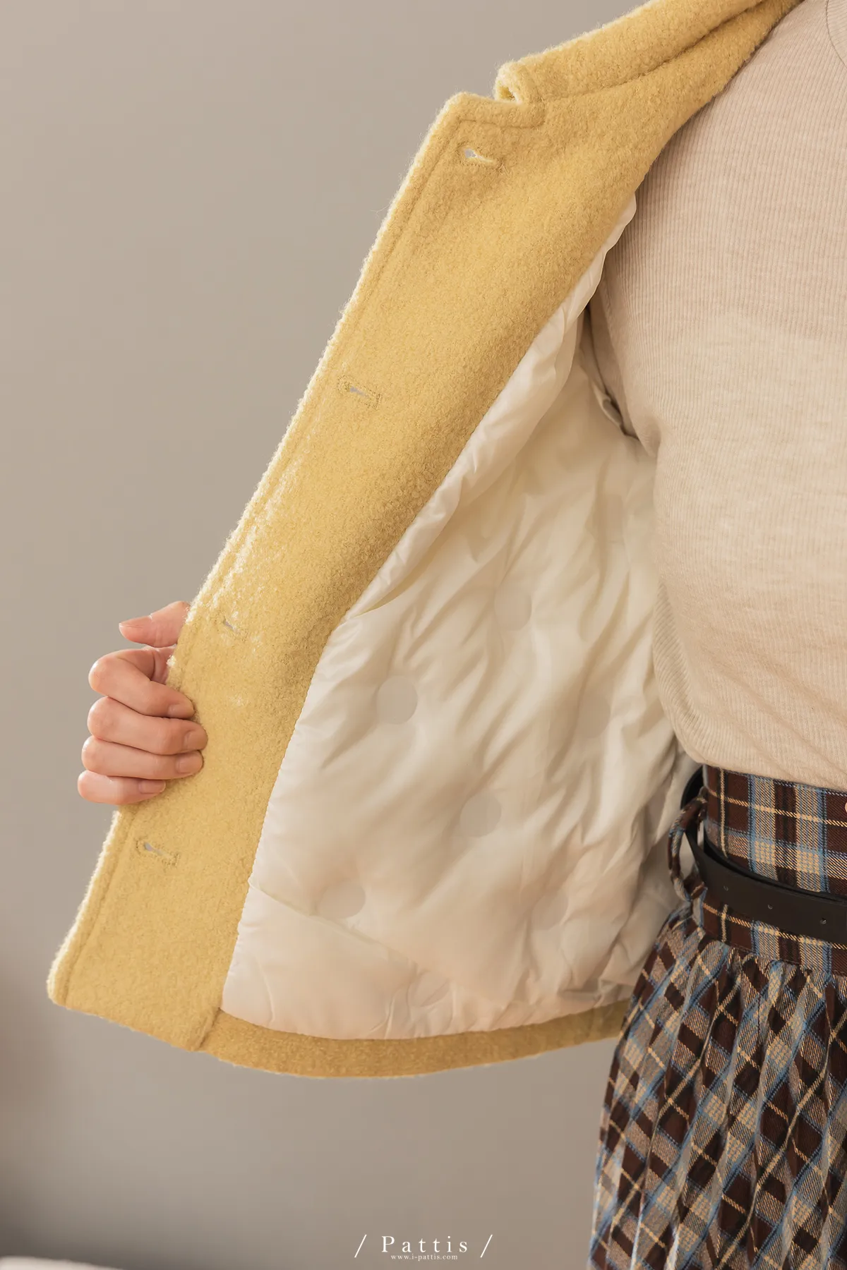 (現貨) 總之是喜歡吧 | 內鋪薄羽絨翻領毛呢口袋外套(黃)