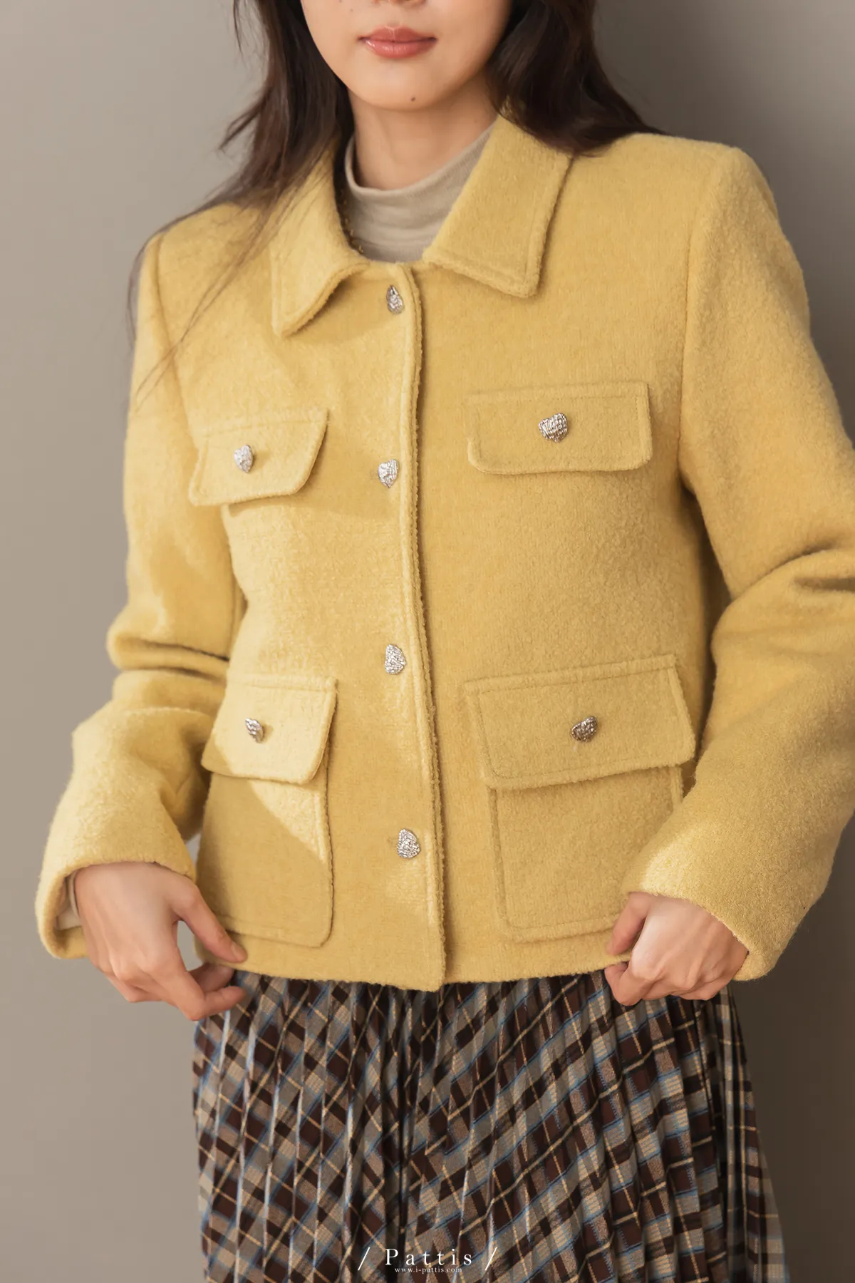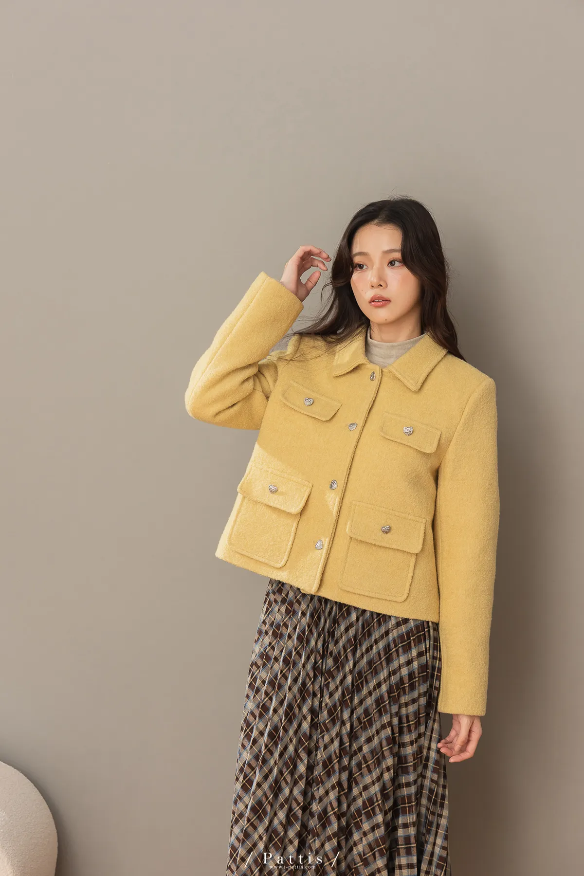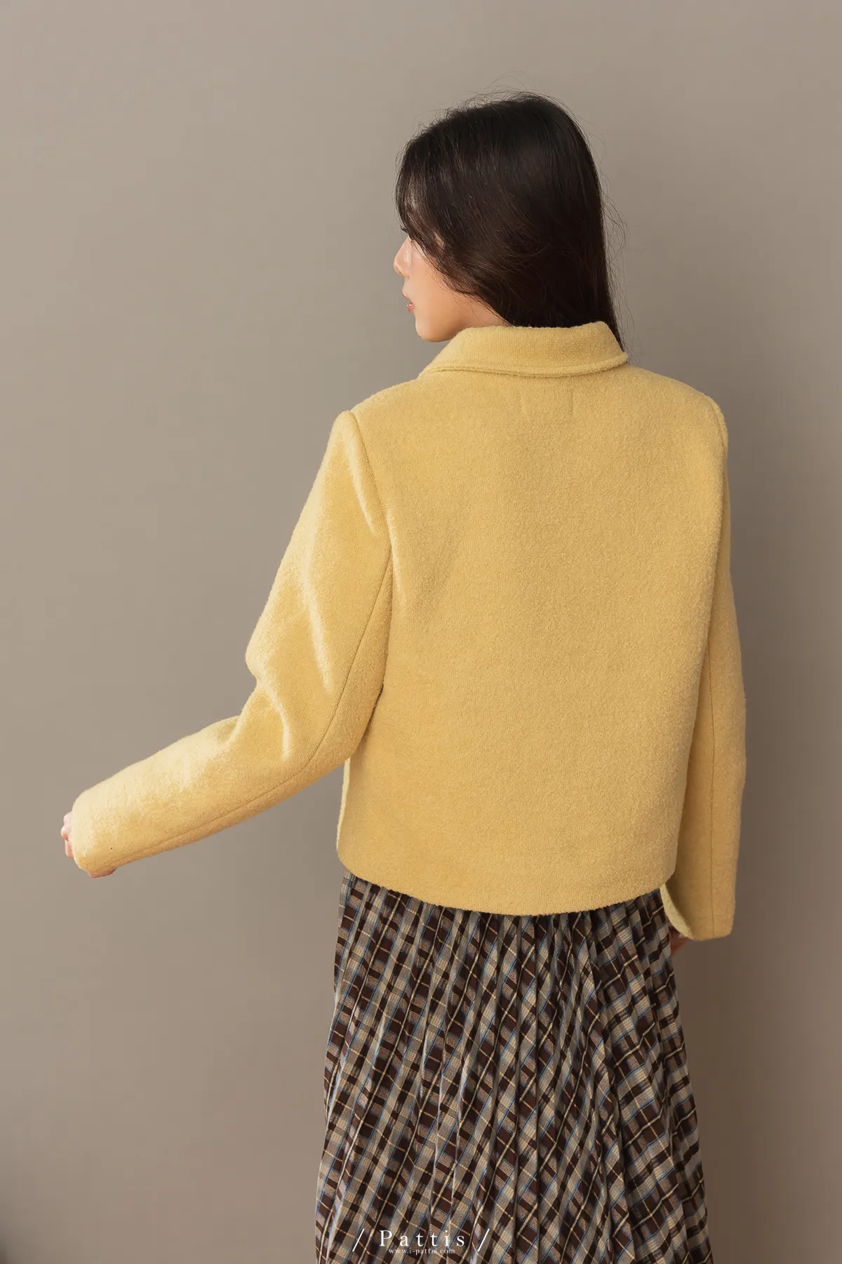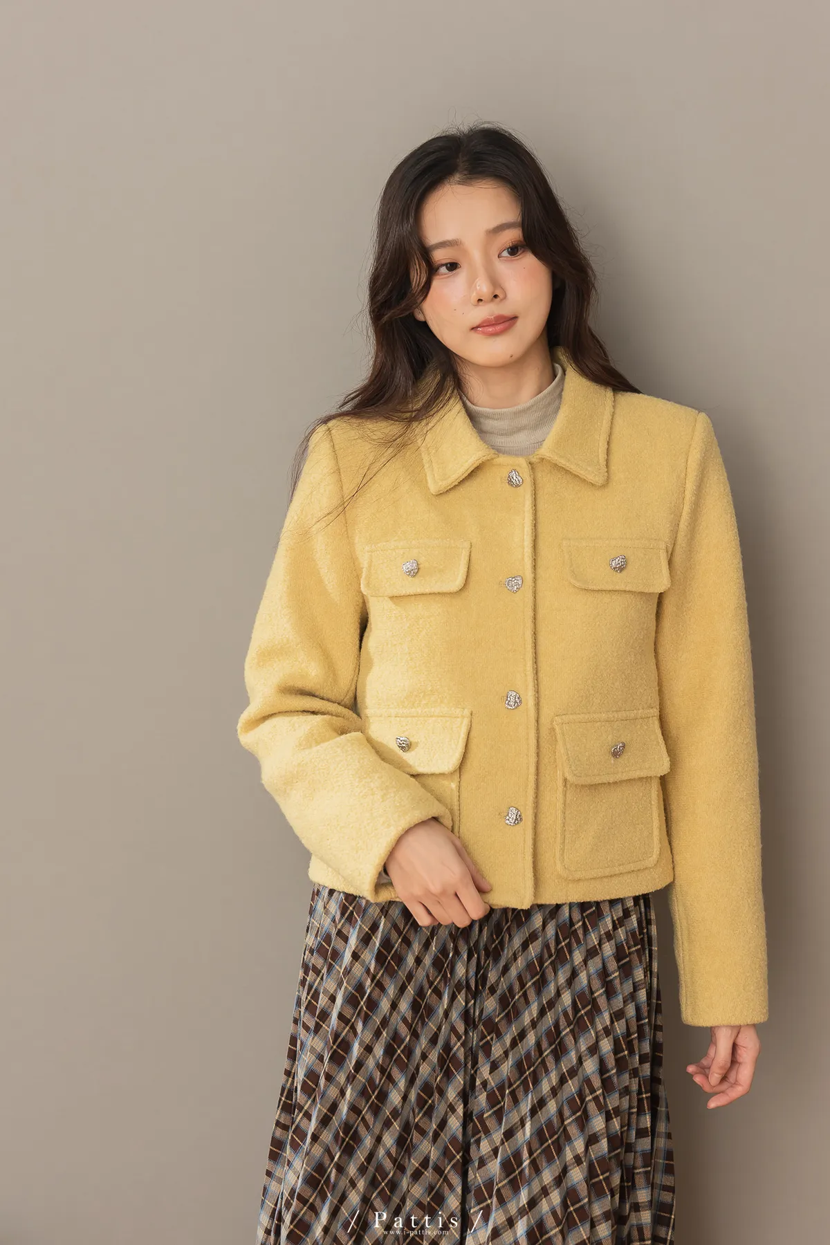 (現貨) 總之是喜歡吧 | 內鋪薄羽絨翻領毛呢口袋外套(黃)