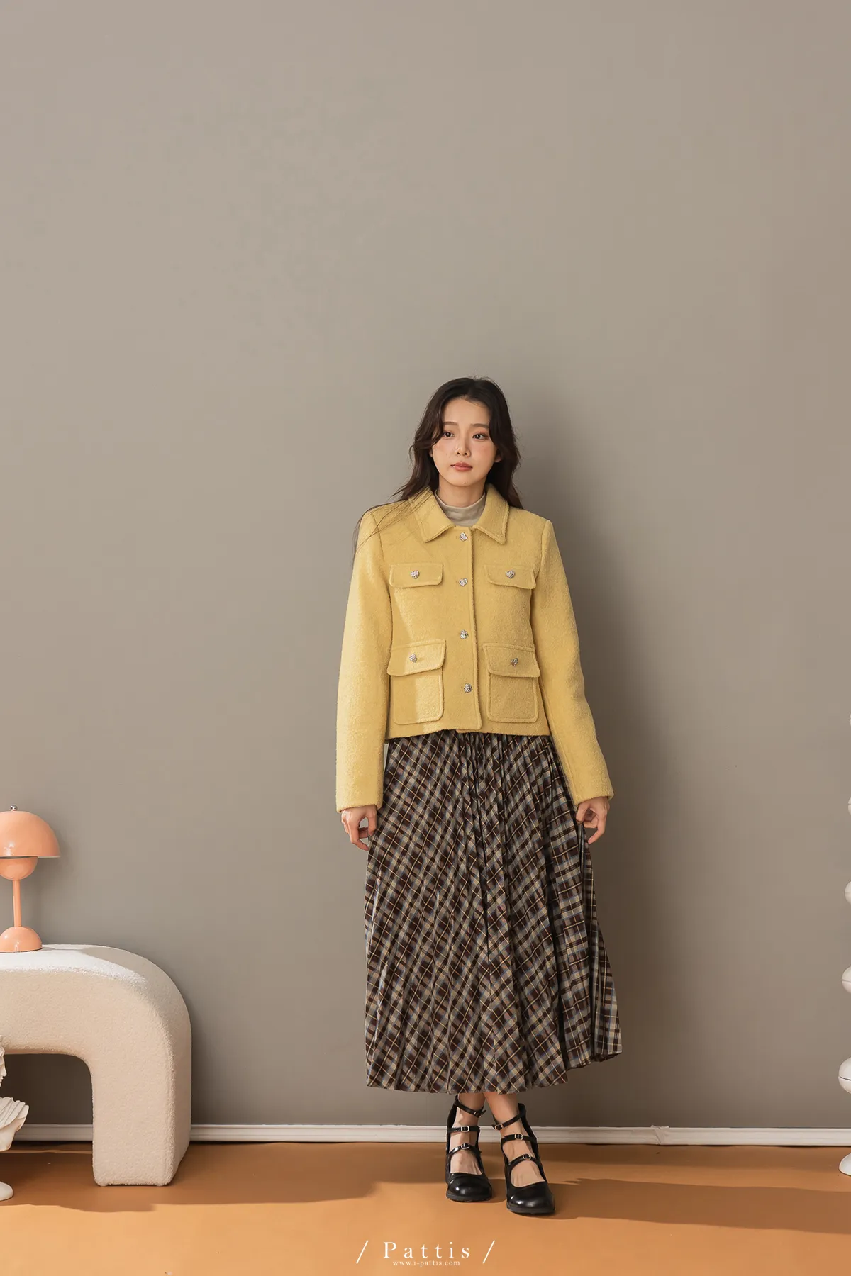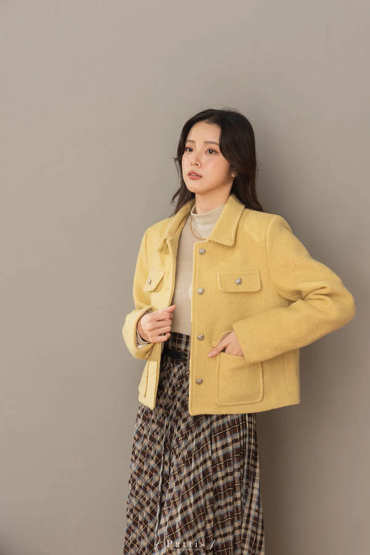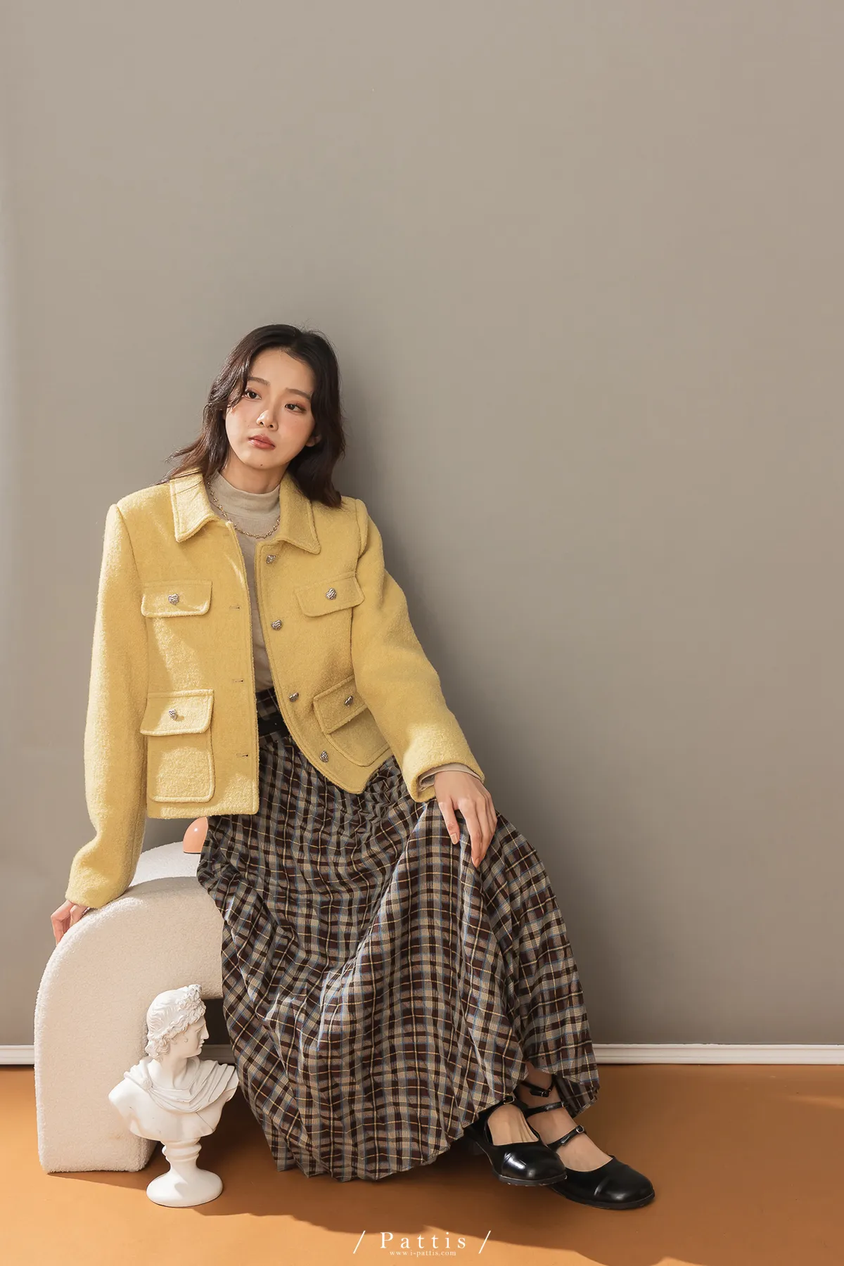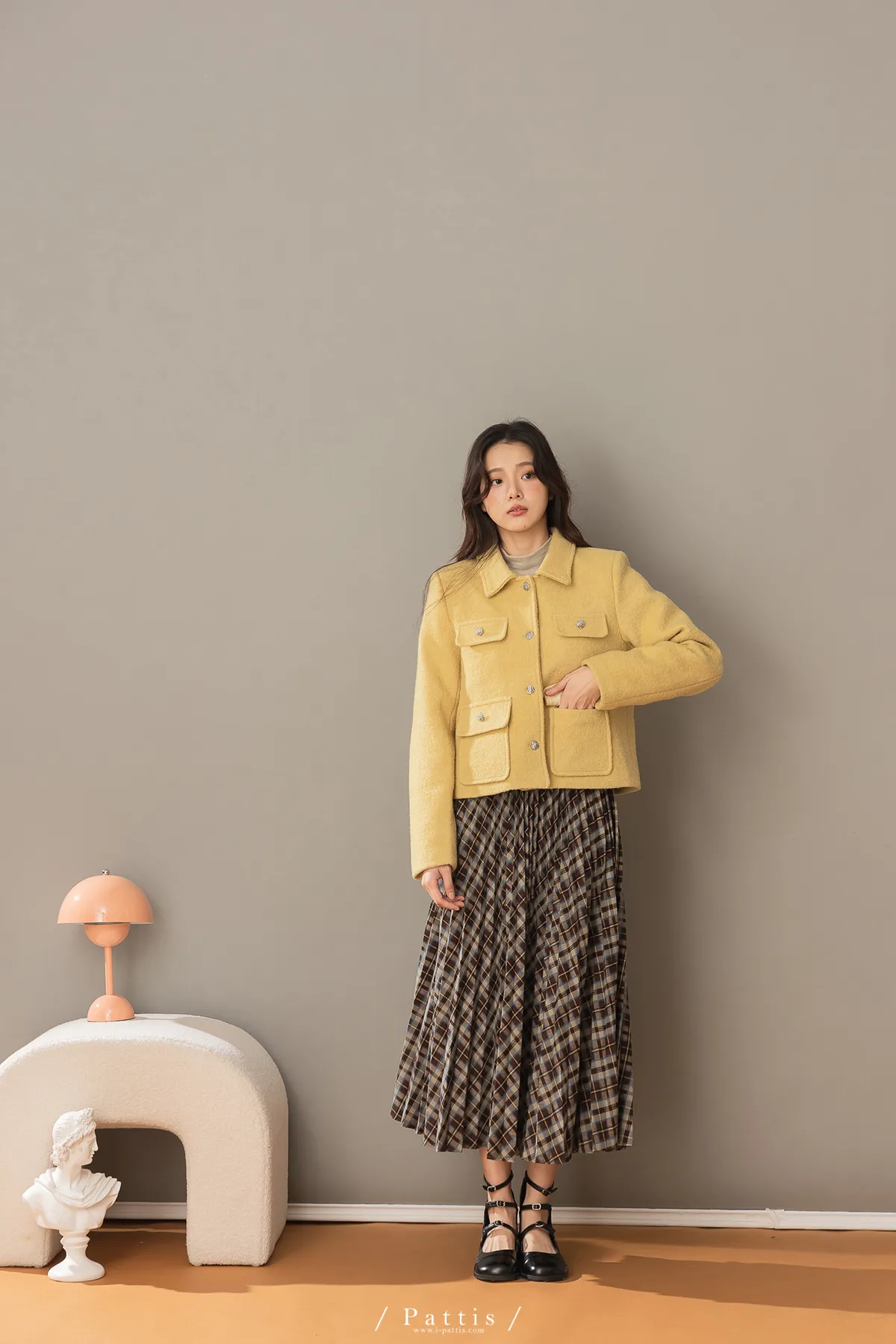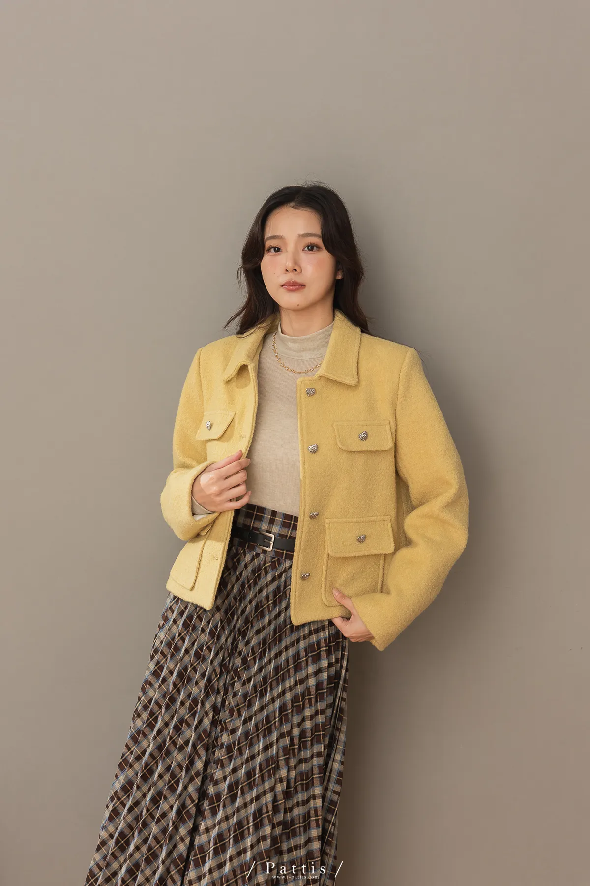 (現貨) 總之是喜歡吧 | 內鋪薄羽絨翻領毛呢口袋外套(黃)