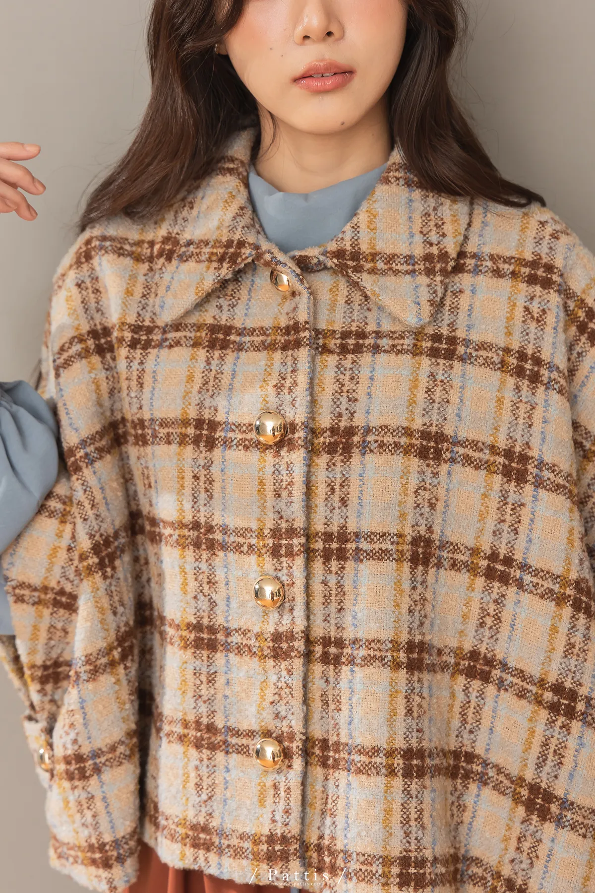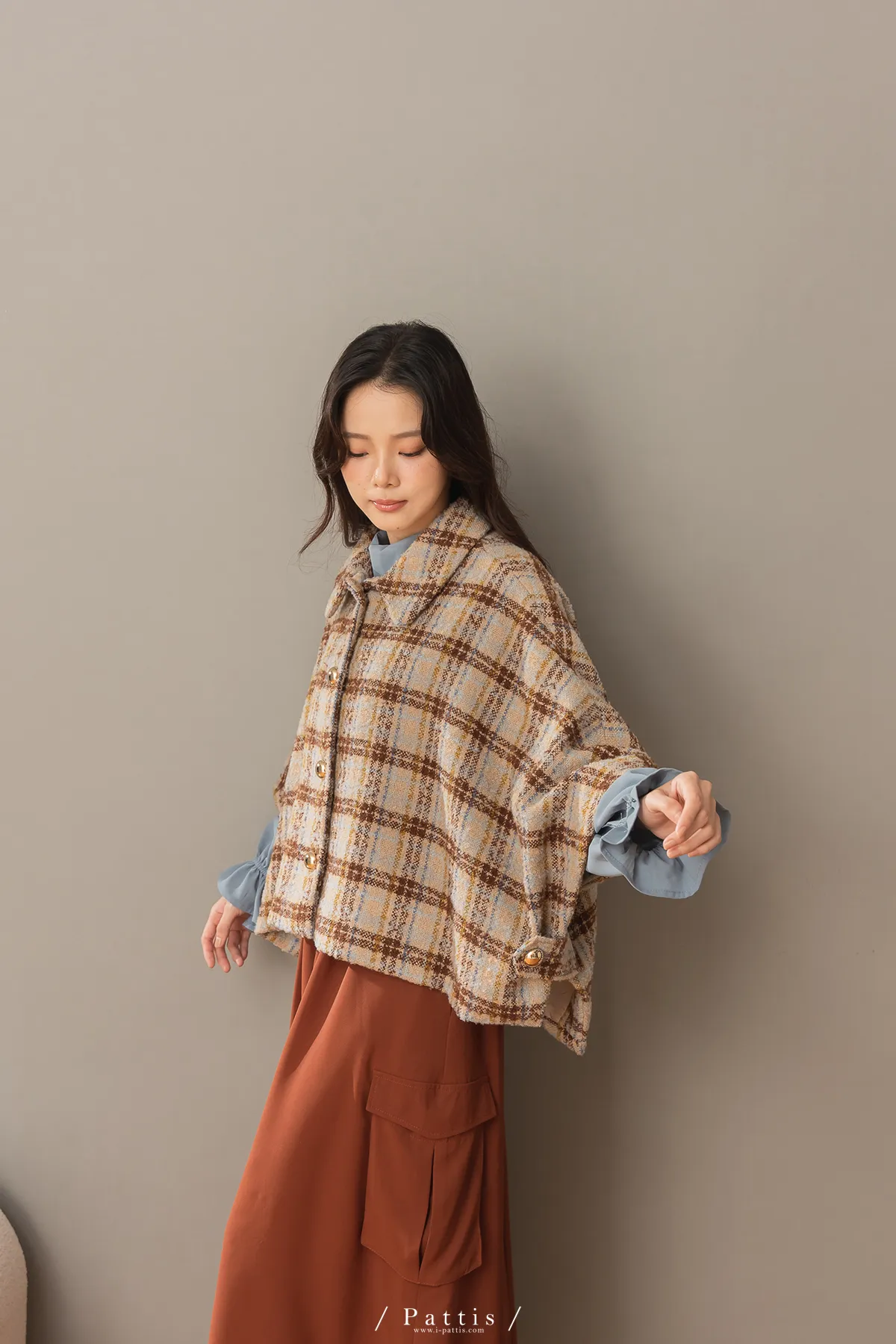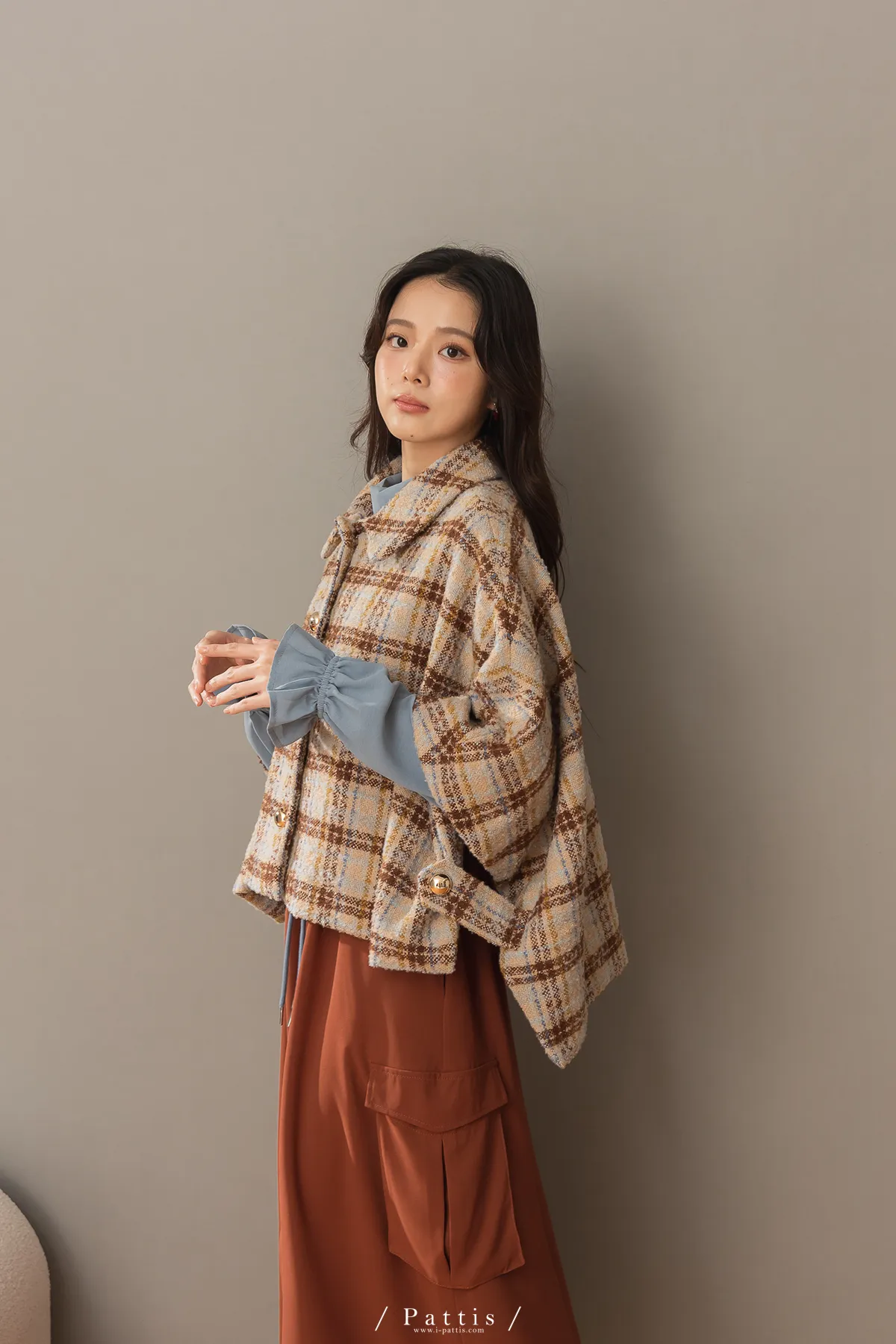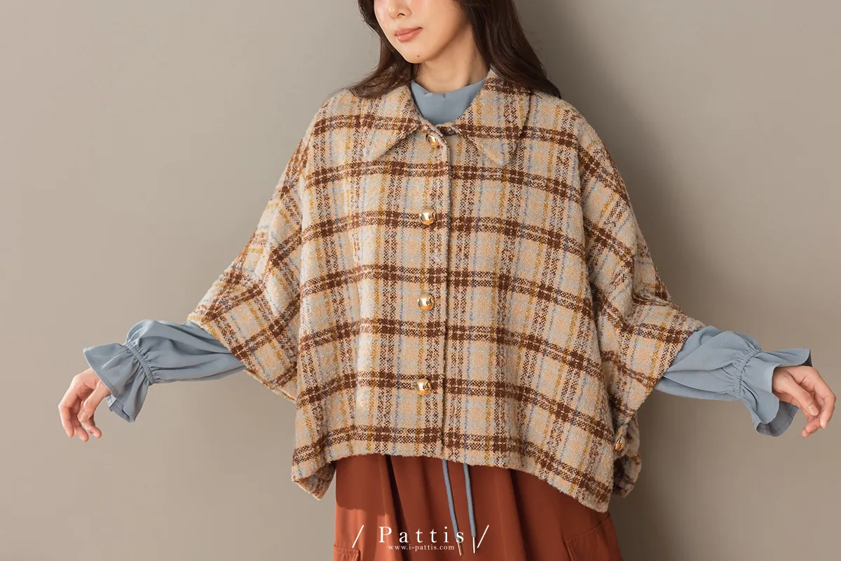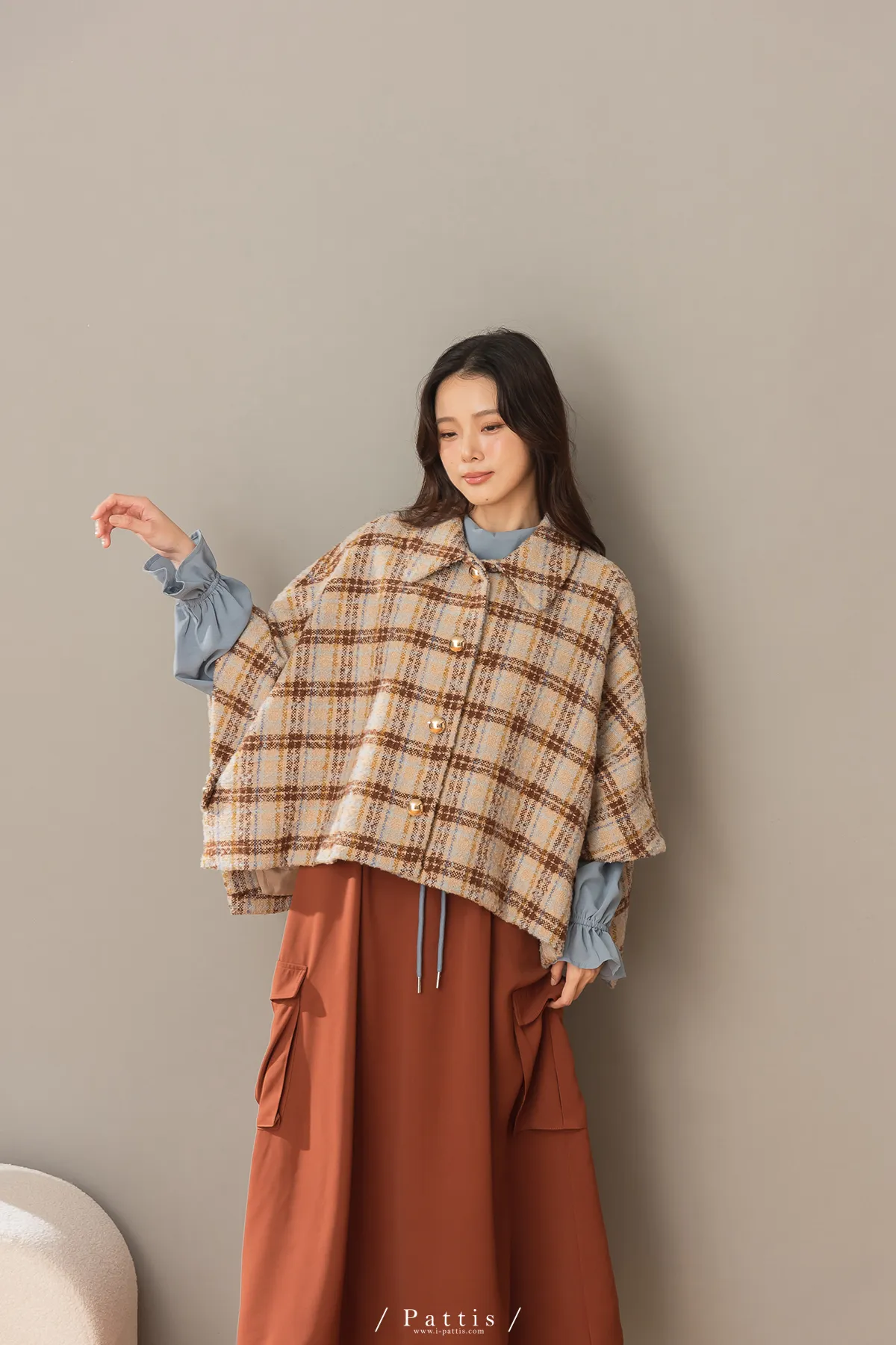 (現貨) 時光是一道證明題 | 格紋金釦斗篷外套(棕)