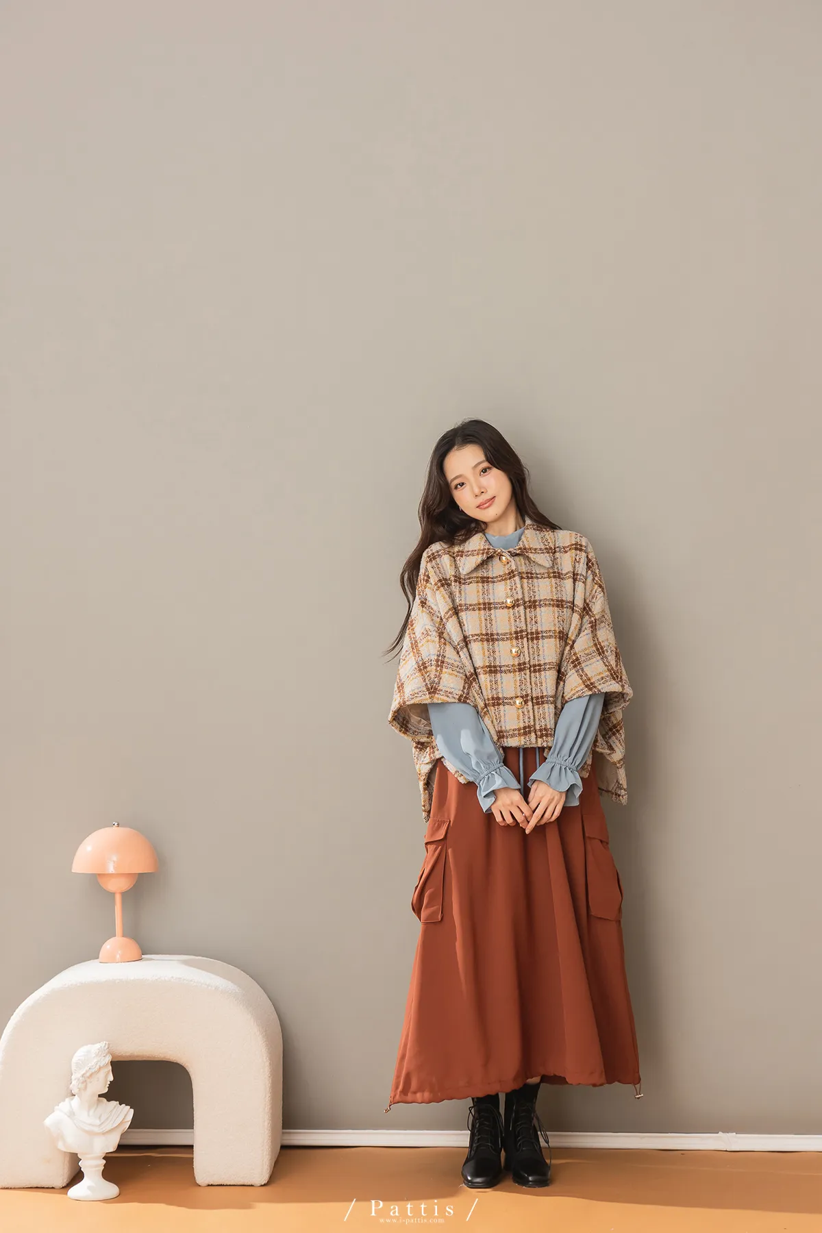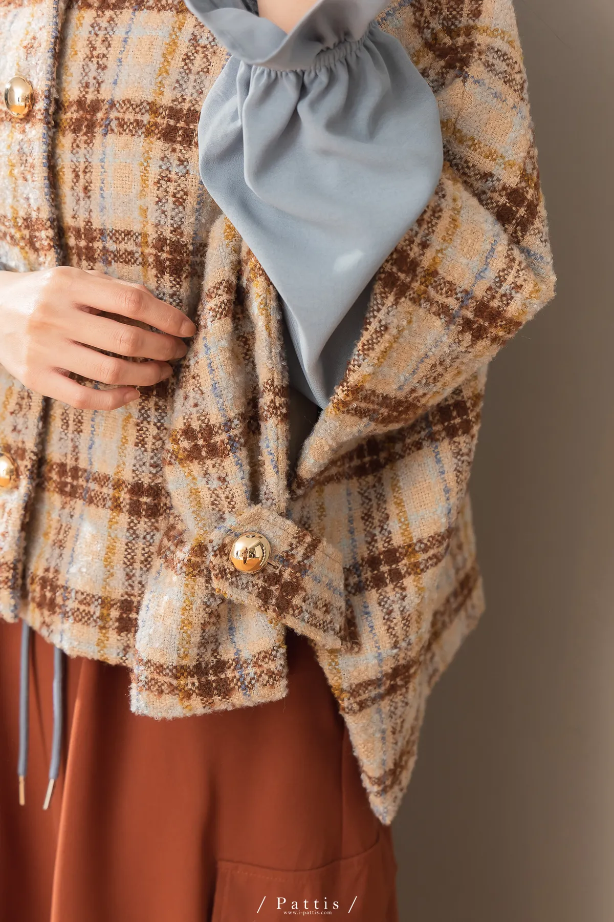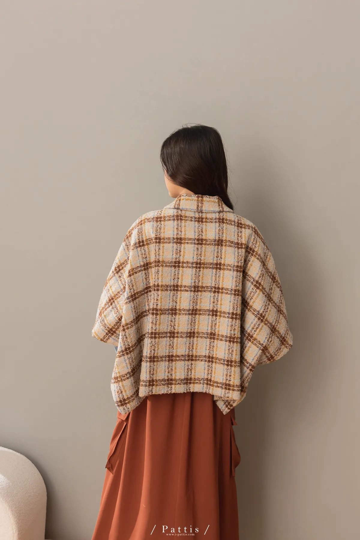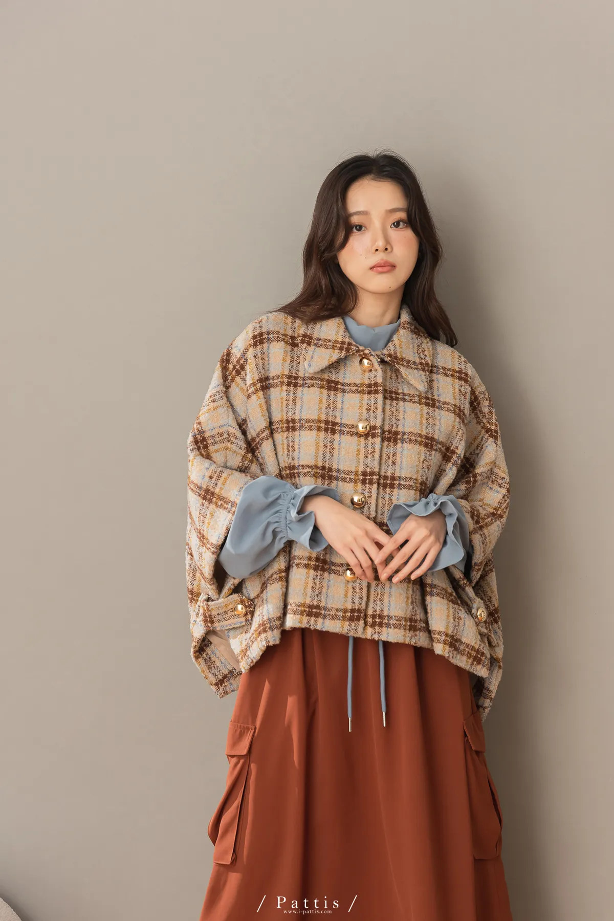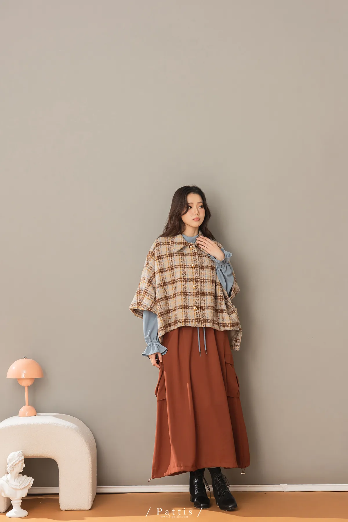 (現貨) 時光是一道證明題 | 格紋金釦斗篷外套(棕)