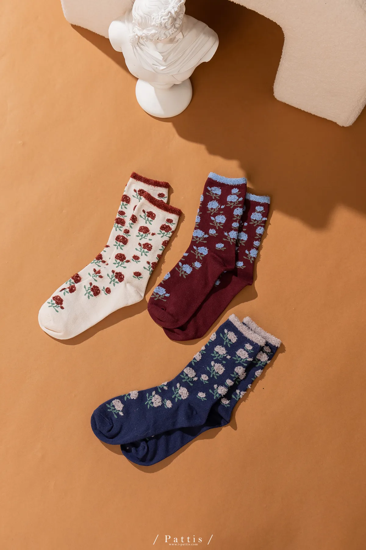 (現貨) 蝴蝶毛毛花朵復古襪(米杏/酒紅/深藍)