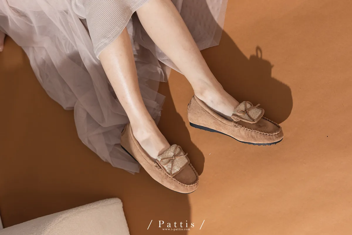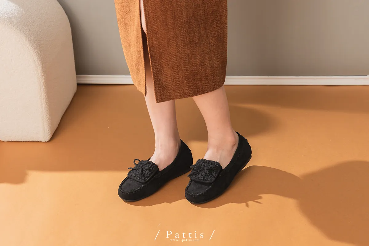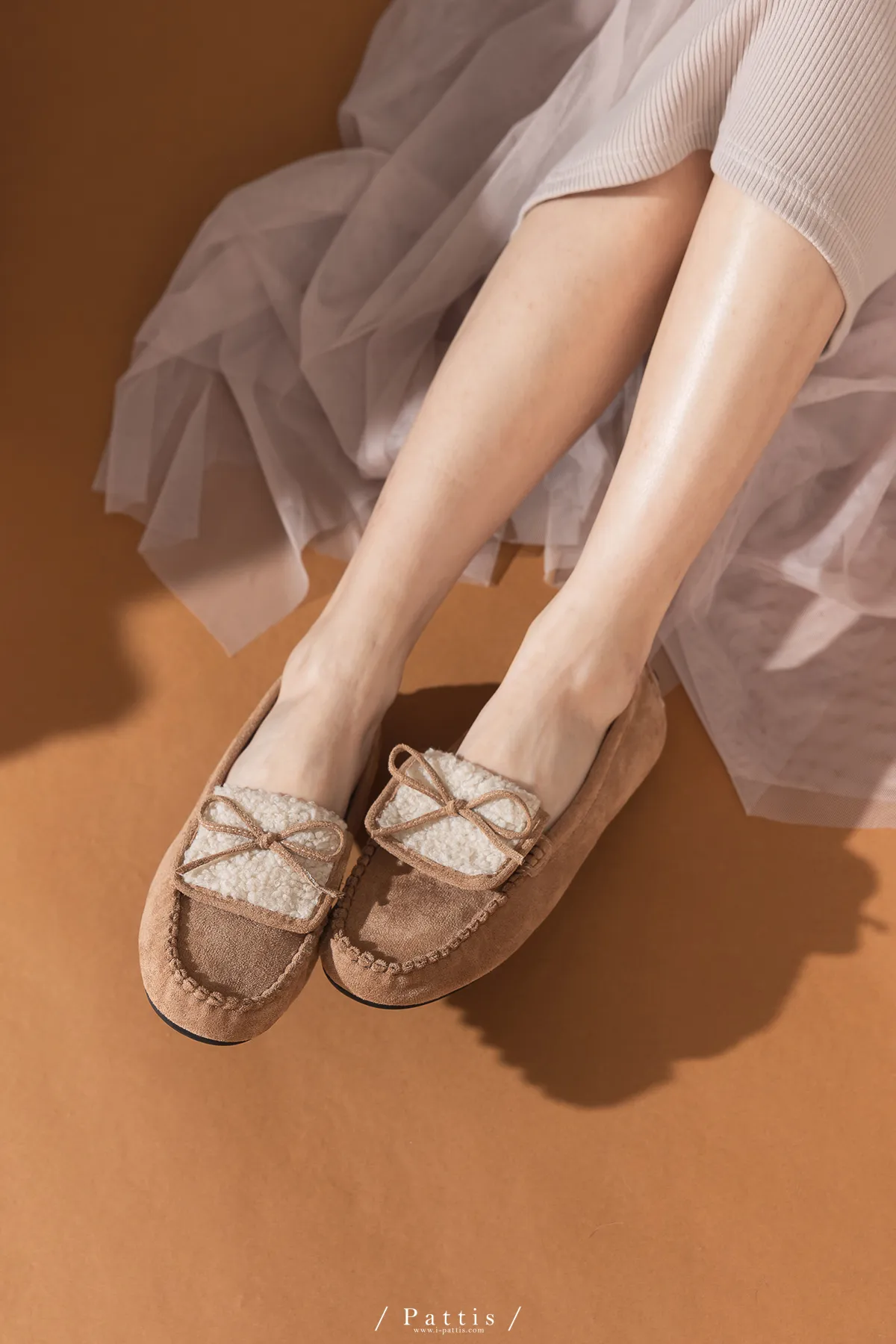 (現貨-米棕/黑24.0) 圈養那片羊 | 羊羔毛翻摺蝴蝶結軟墊鞋(米棕/黑)
