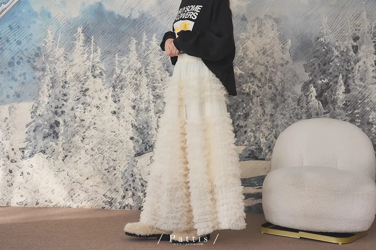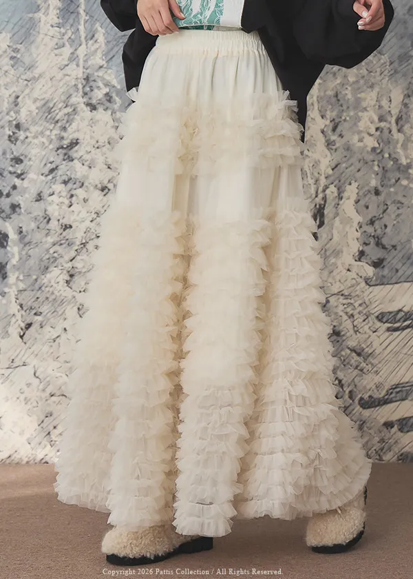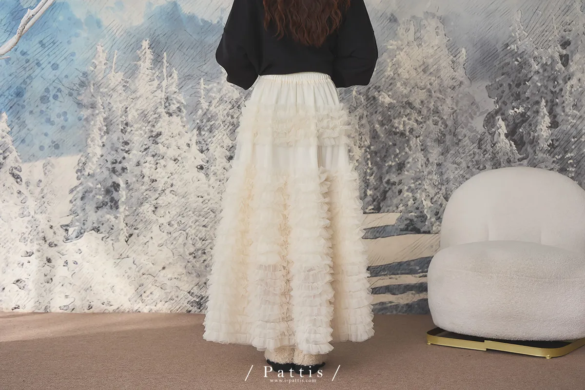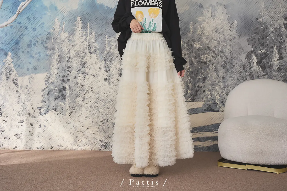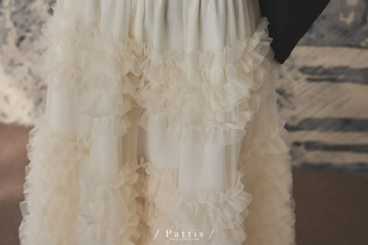 (開放追加,1/26收單)成為某個人的心上人 | 多層荷葉澎澎蛋糕長紗裙(米杏)