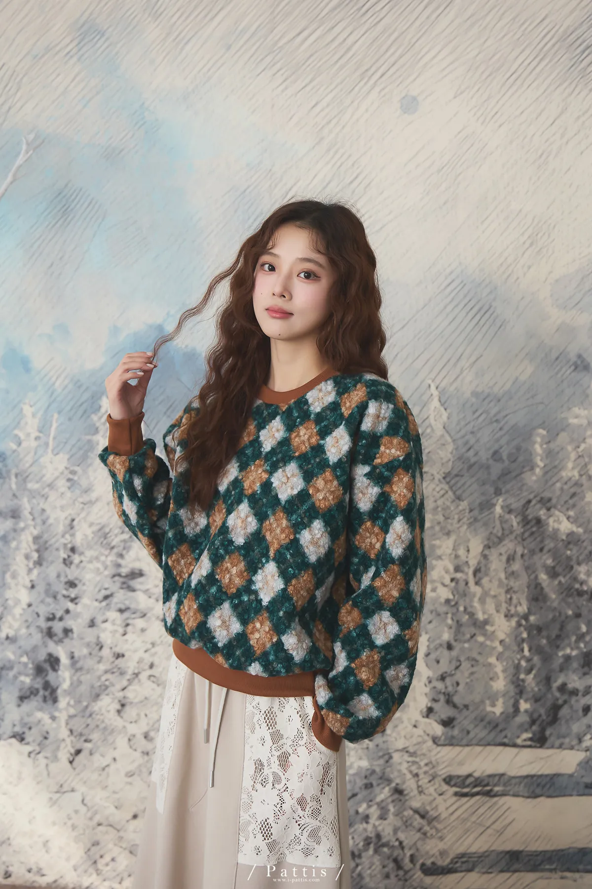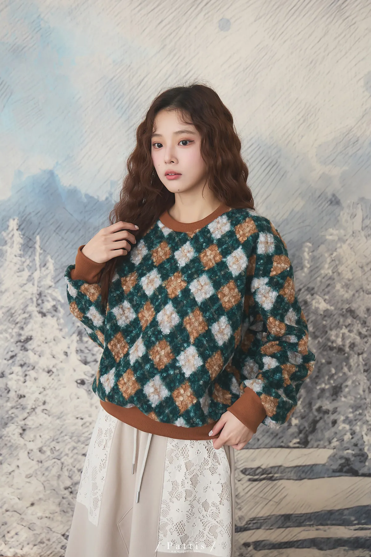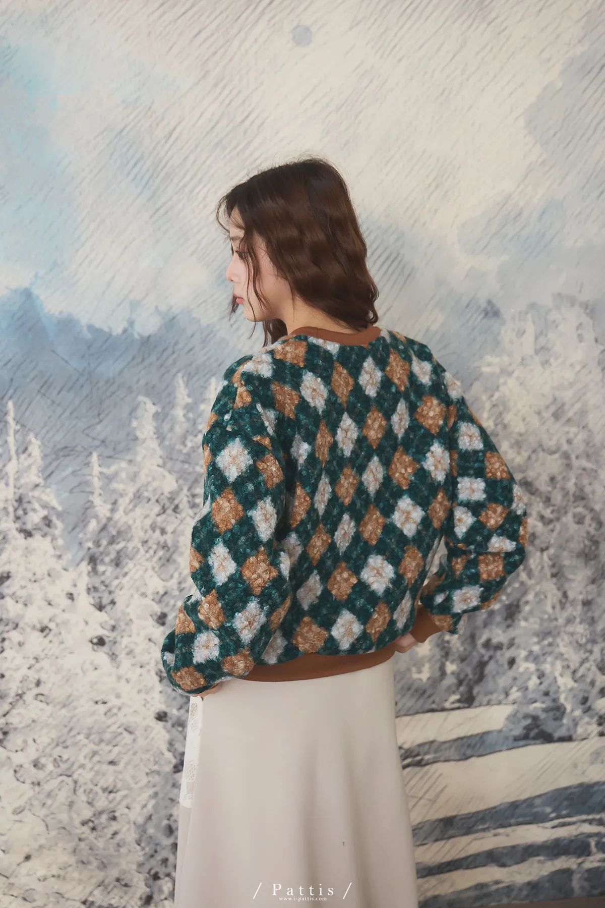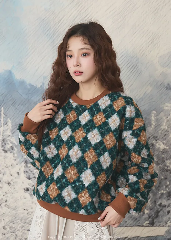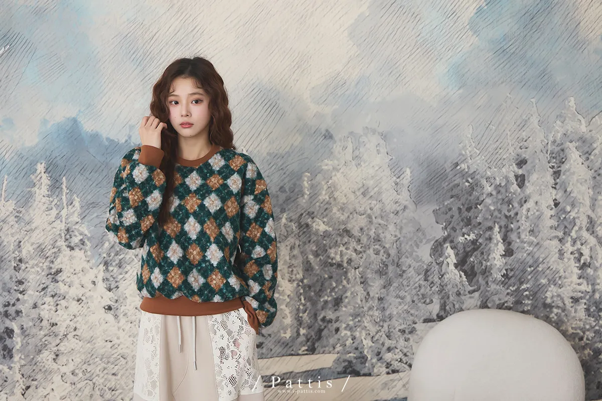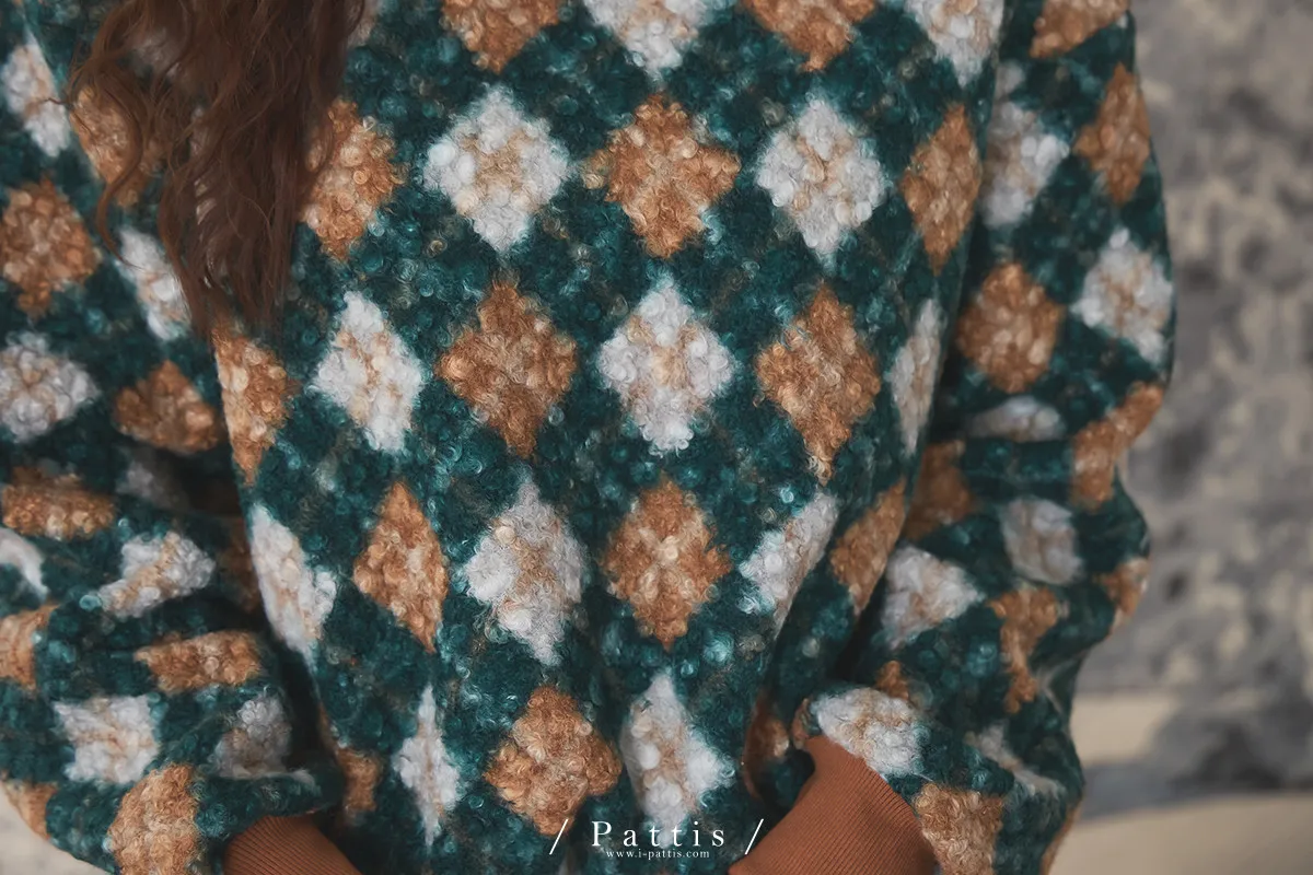 多面向的佔有慾 | 菱格撞色圓領毛衣(棕綠)