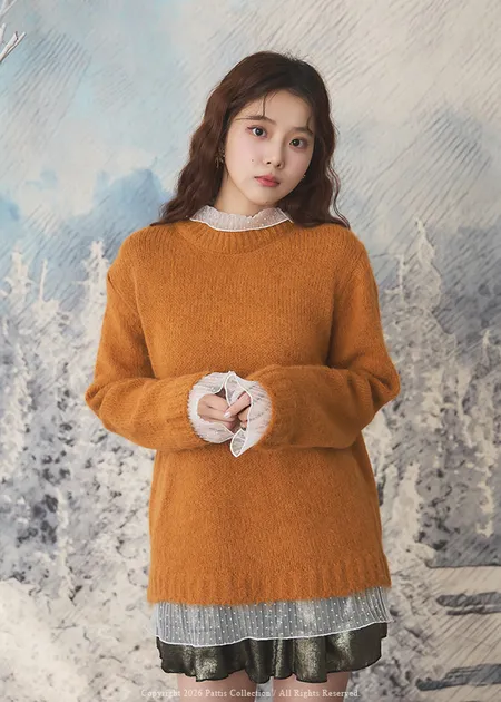 (限量現貨)*特*點點網紗滾邊拼接鬆軟毛衣(橘)