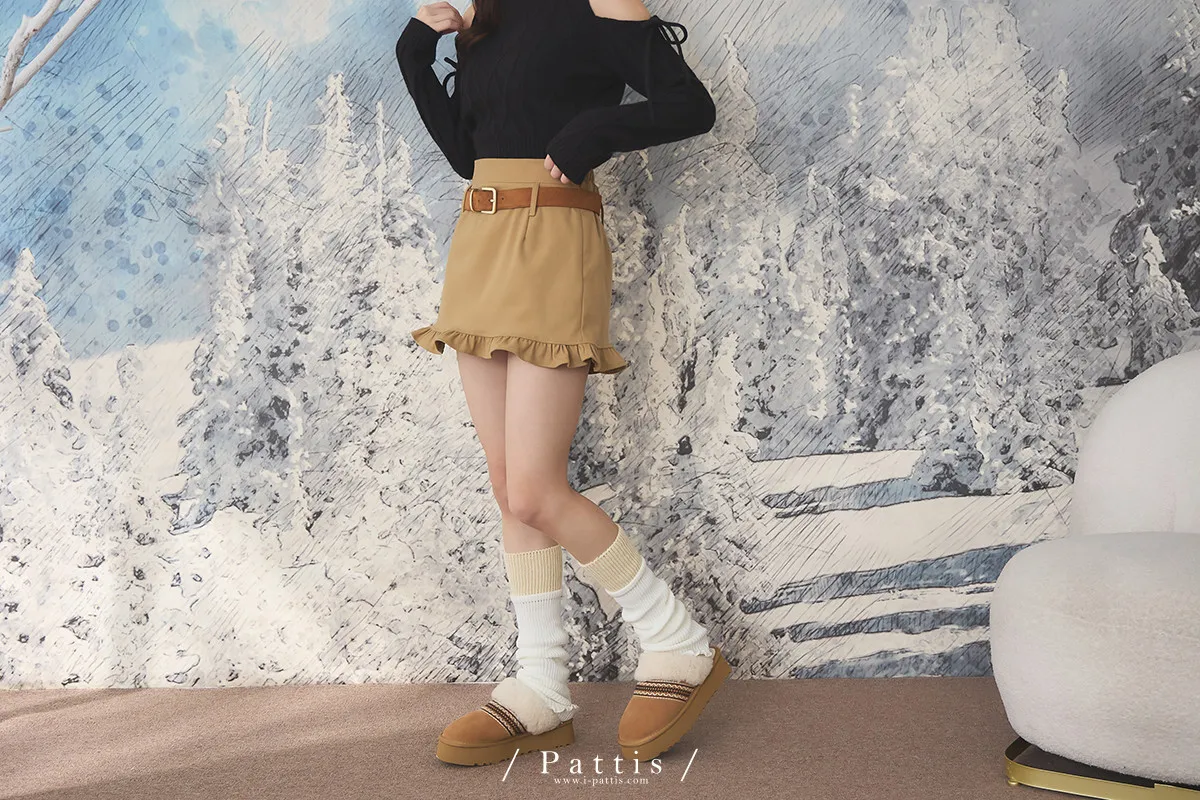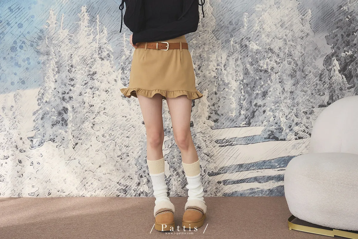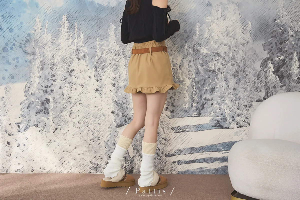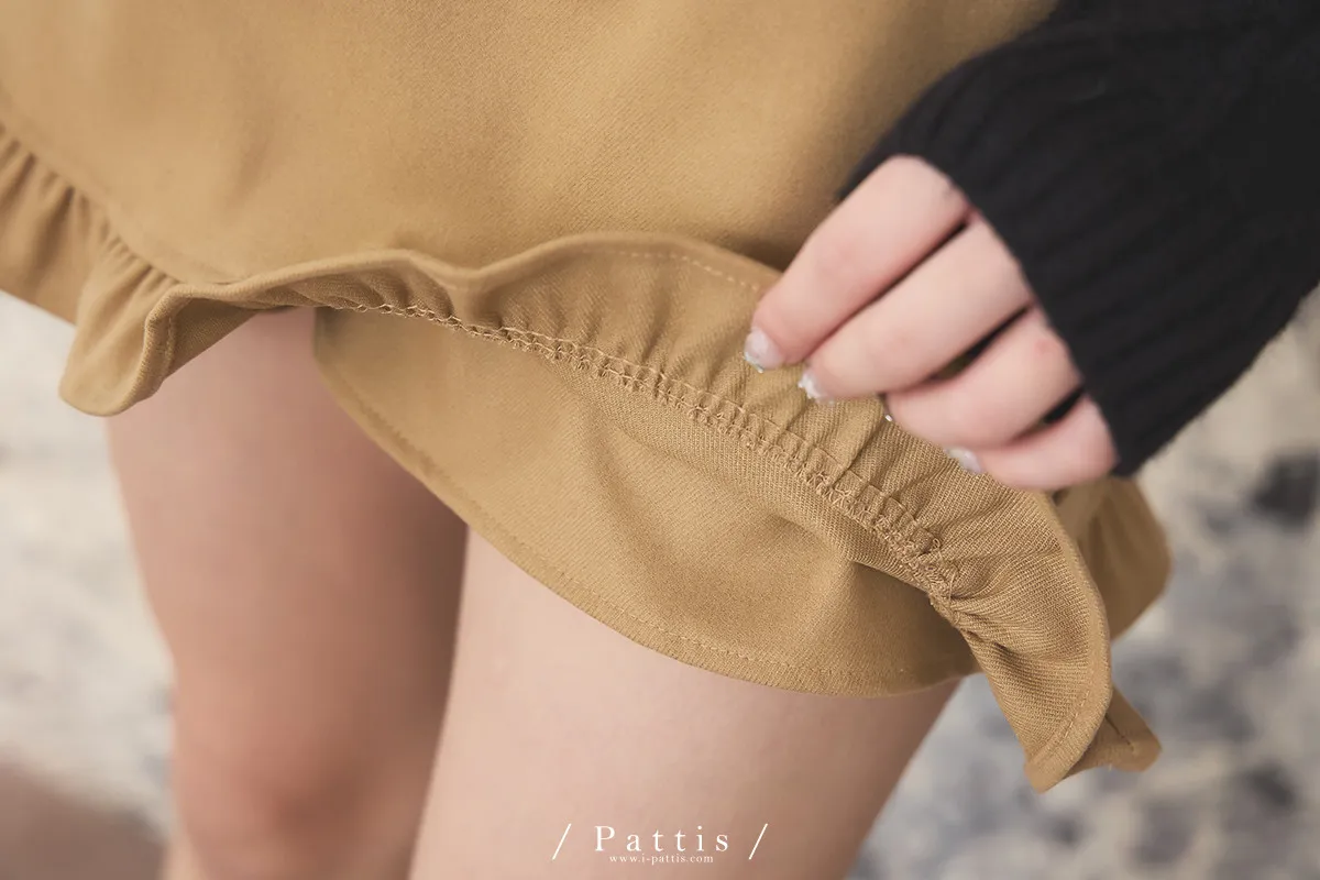今天單點一份可愛 | 環扣荷葉內襯褲短裙(棕)