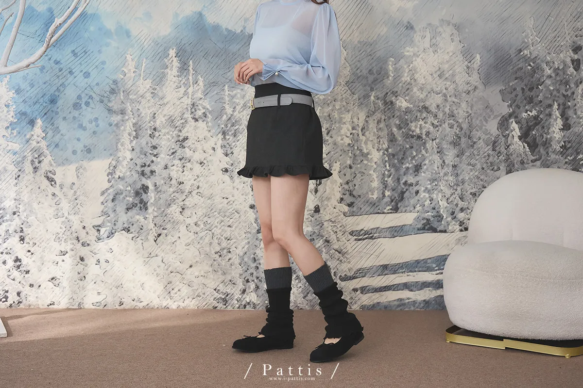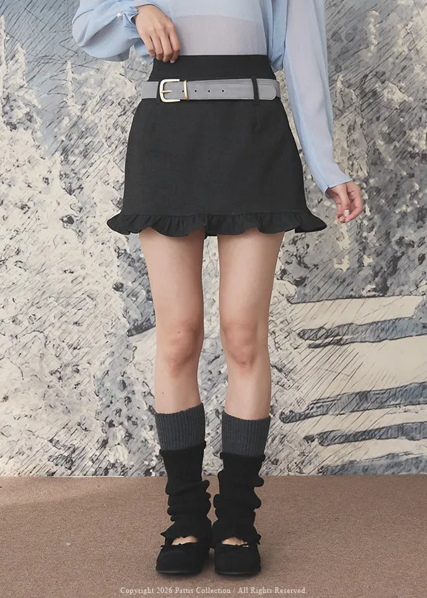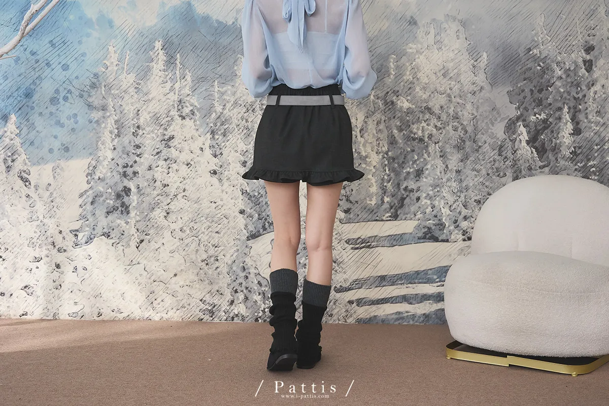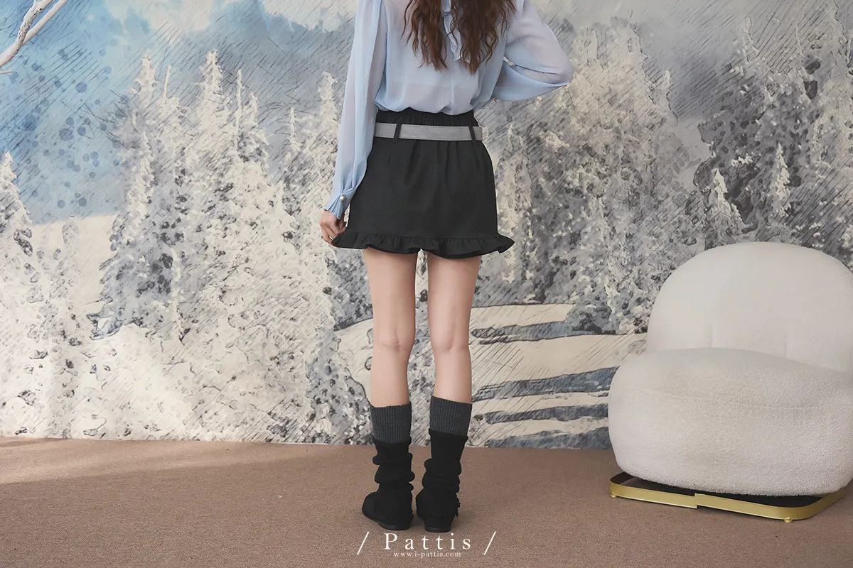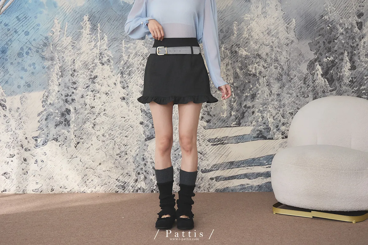 今天單點一份可愛 | 環扣荷葉內襯褲短裙(灰黑)