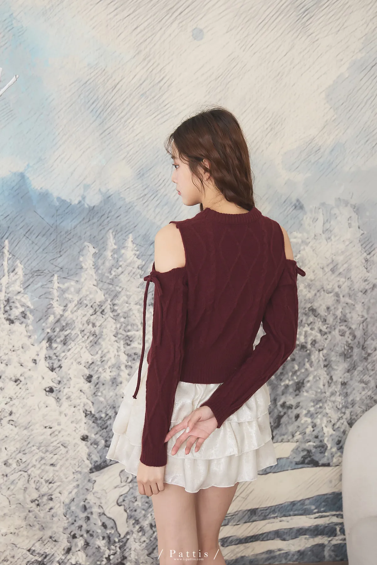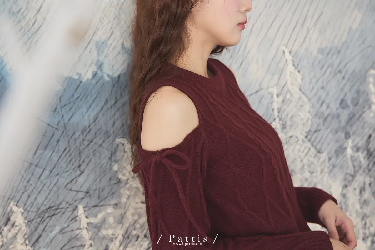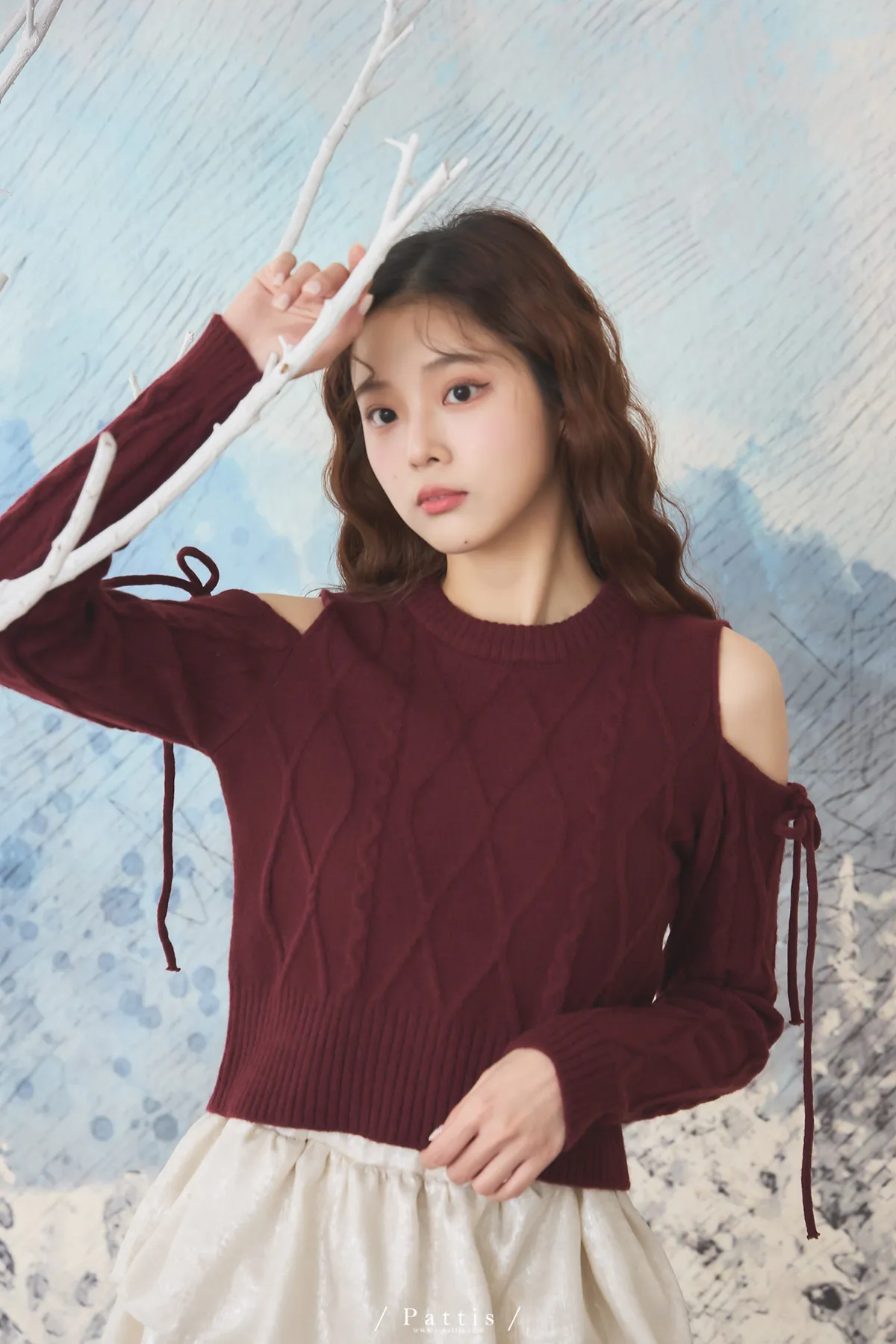 迷人的小節日 | 蝴蝶結挖肩造型麻花毛衣(酒紅)