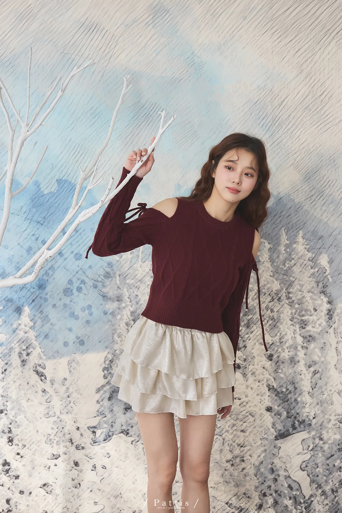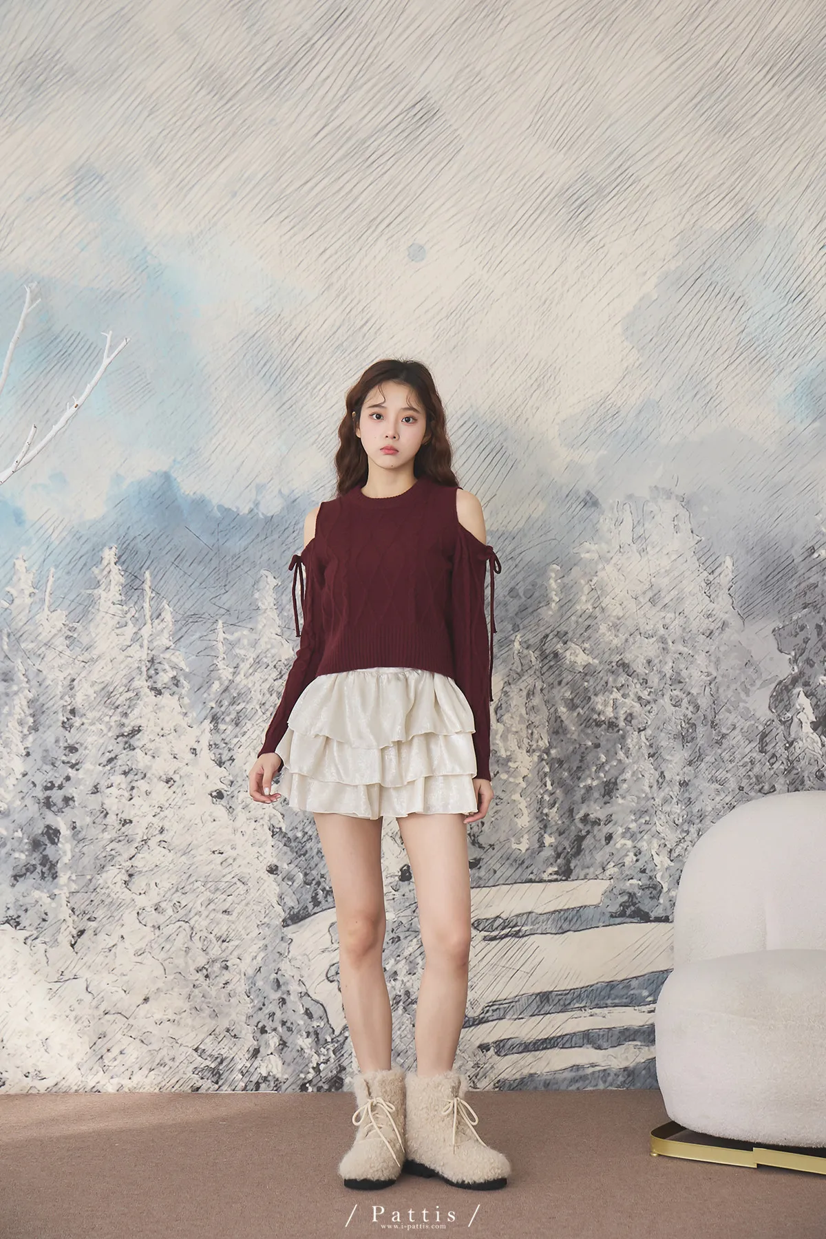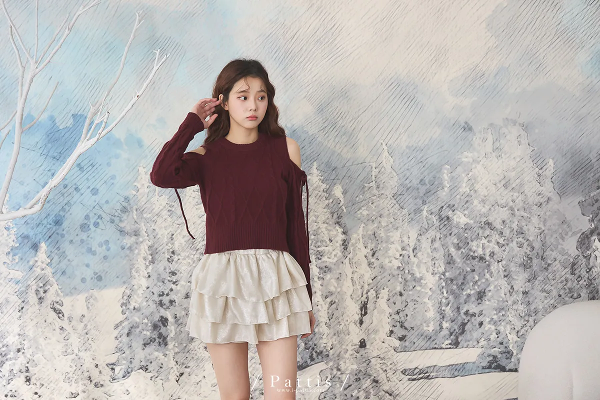 迷人的小節日 | 蝴蝶結挖肩造型麻花毛衣(酒紅)