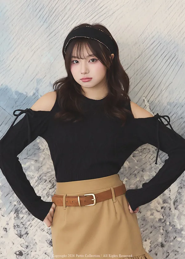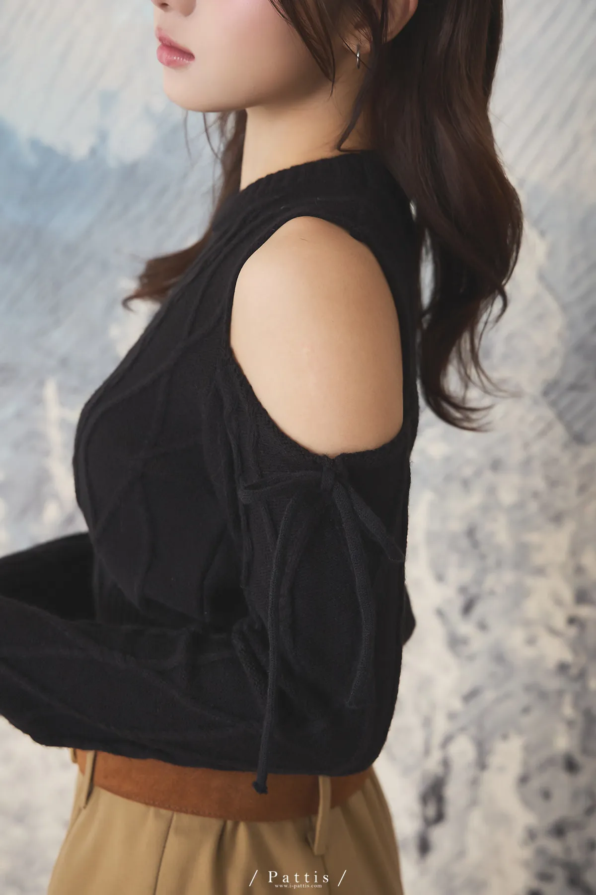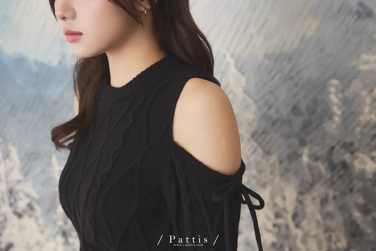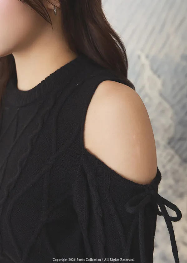 迷人的小節日 | 蝴蝶結挖肩造型麻花毛衣(黑)
