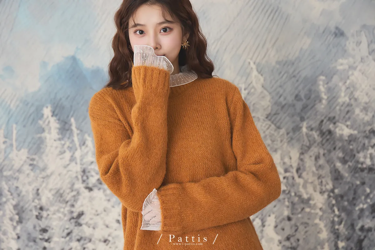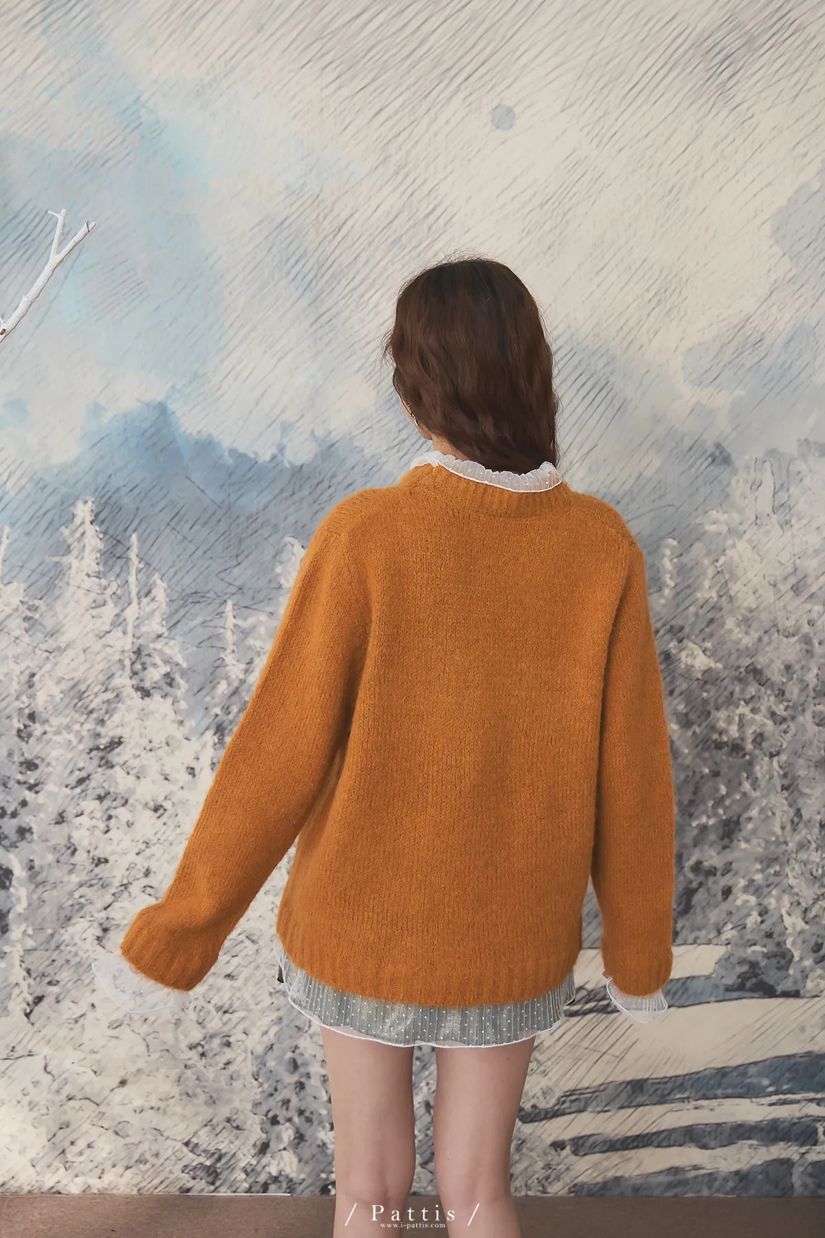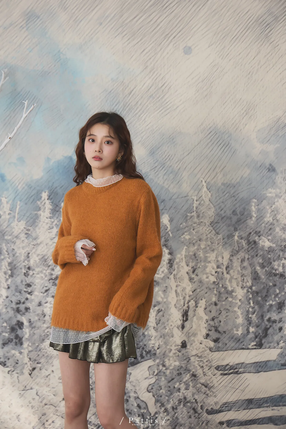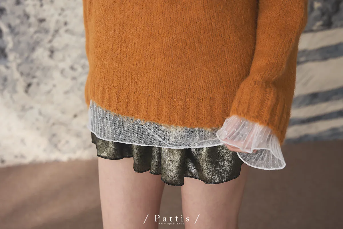 (限量現貨)*特*點點網紗滾邊拼接鬆軟毛衣(橘)