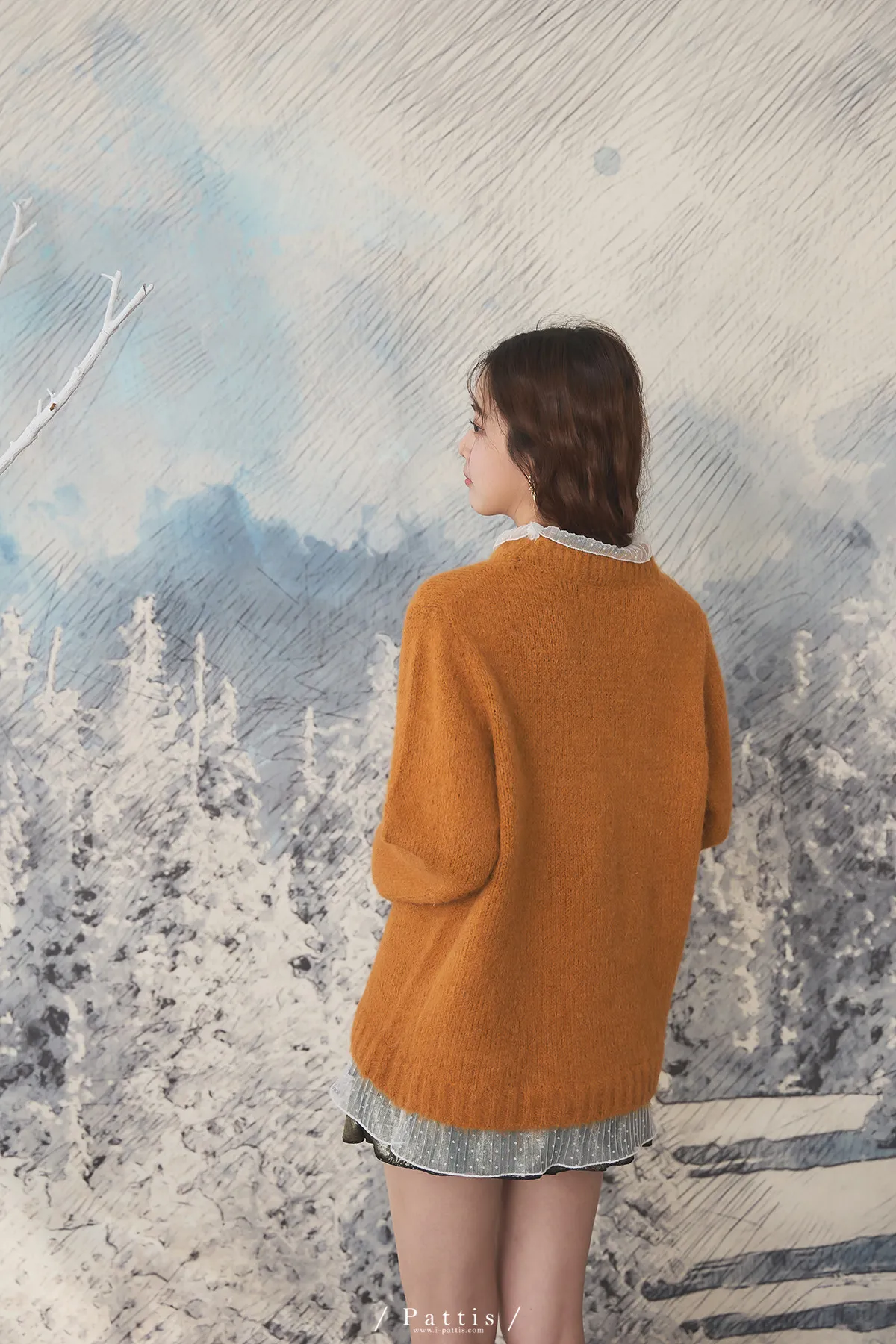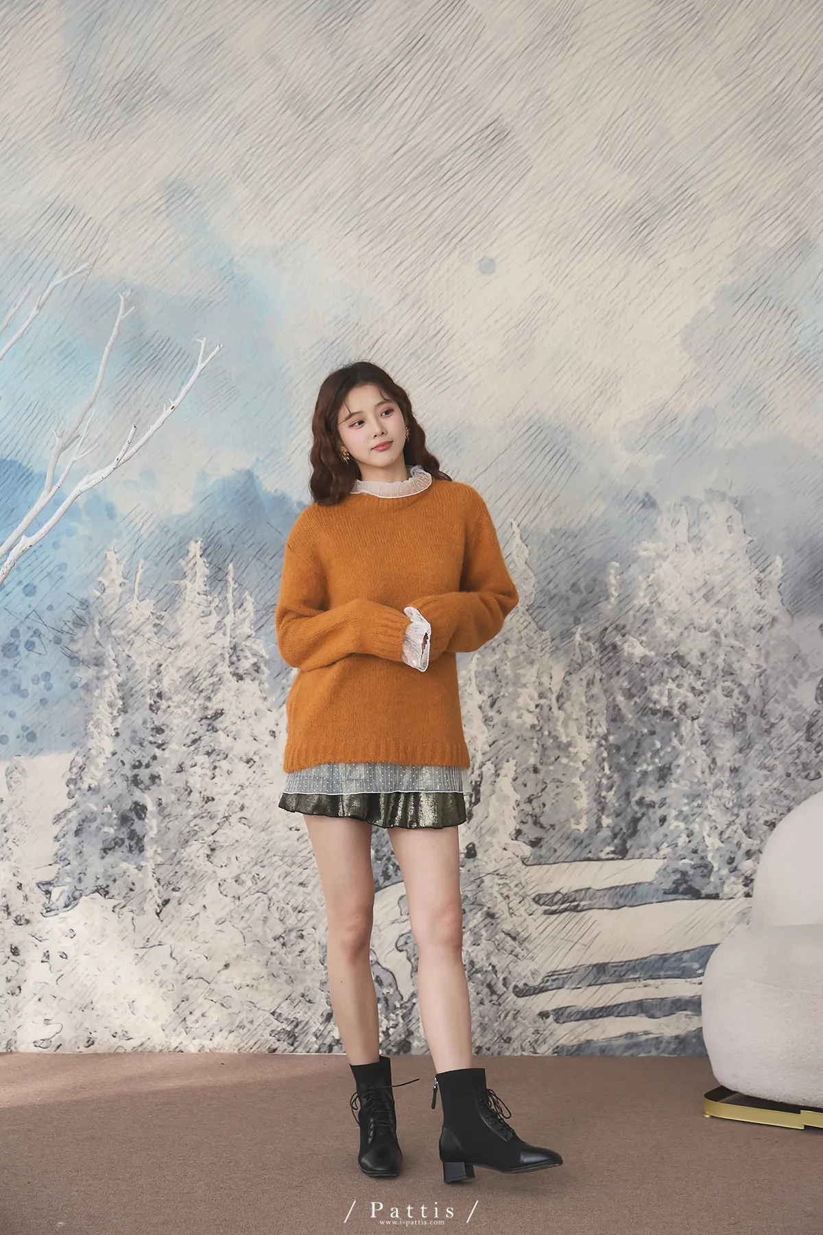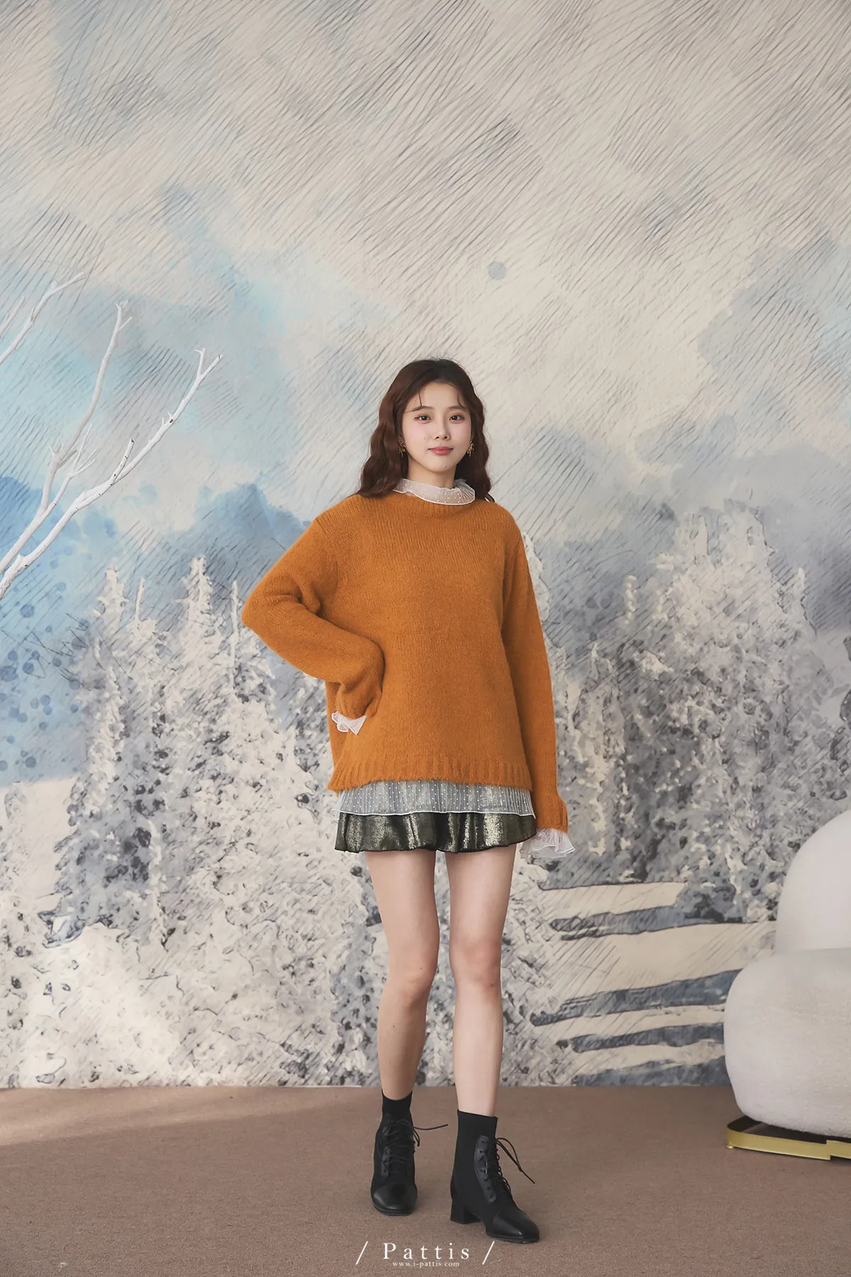 (限量現貨)*特*點點網紗滾邊拼接鬆軟毛衣(橘)