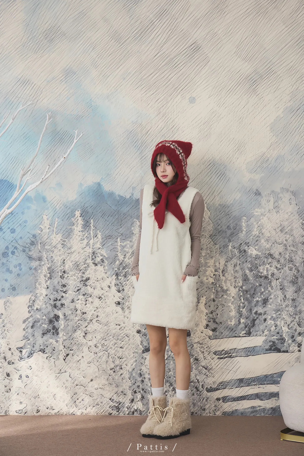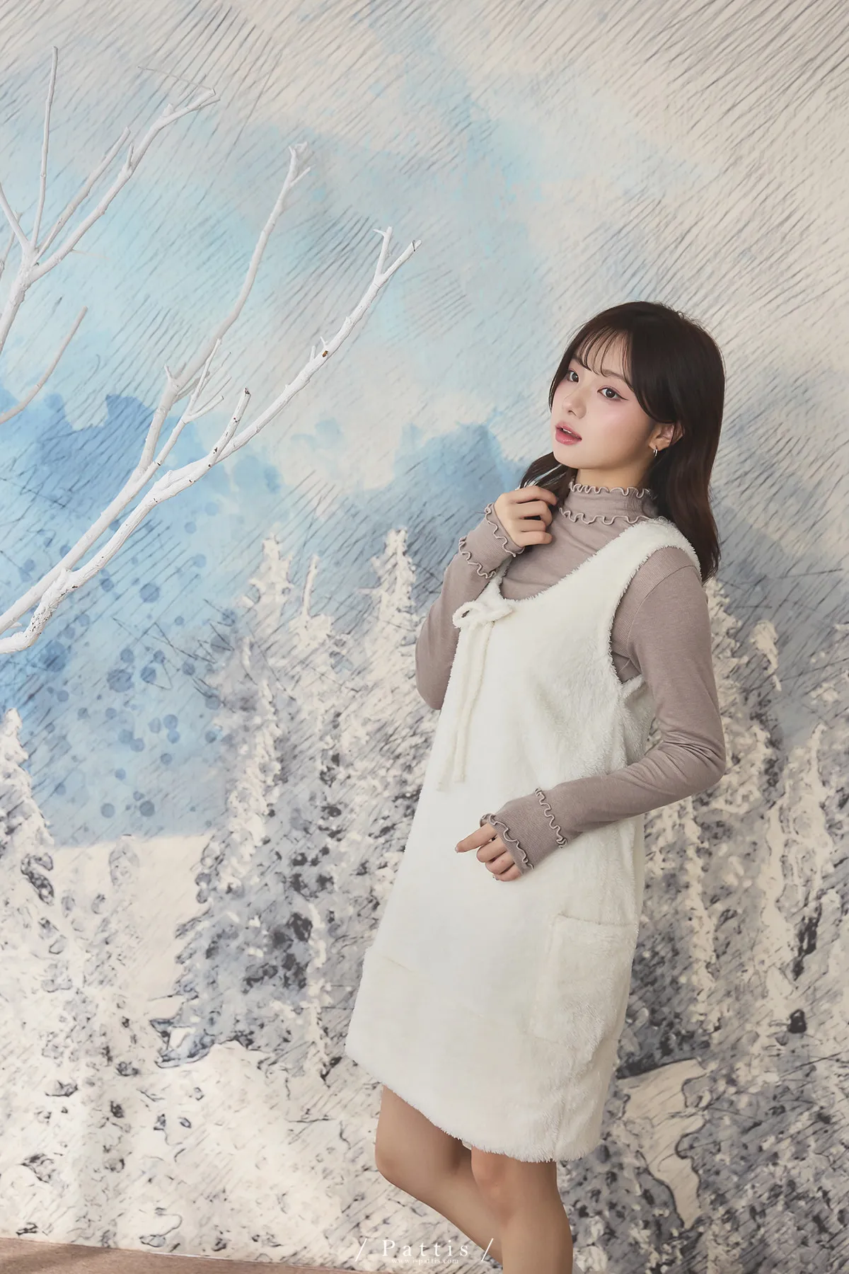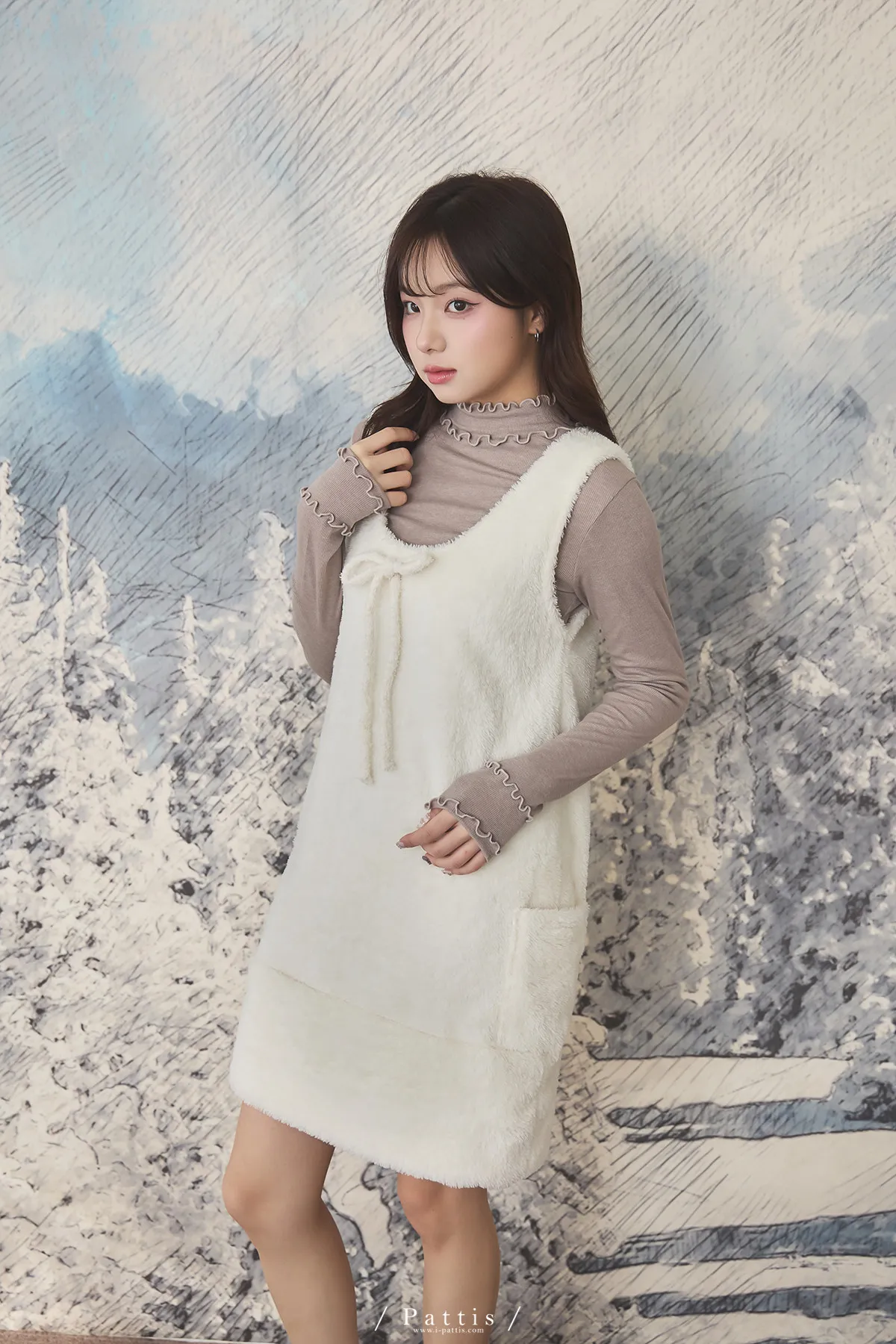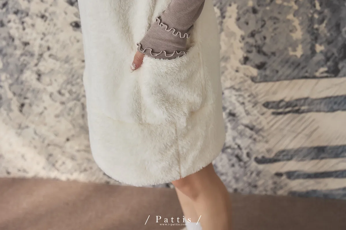 (現貨) 小公寓裡的泰迪 | 軟毛蓬鬆雙口袋圓領蝴蝶結短洋裝(米白)