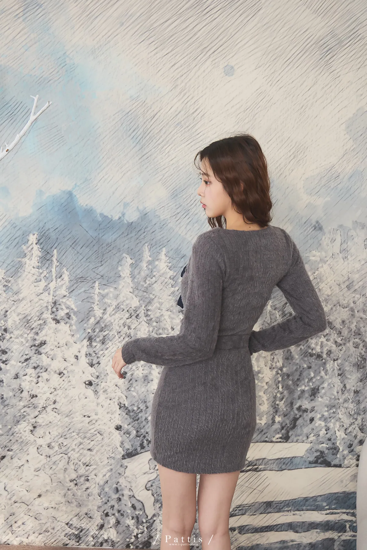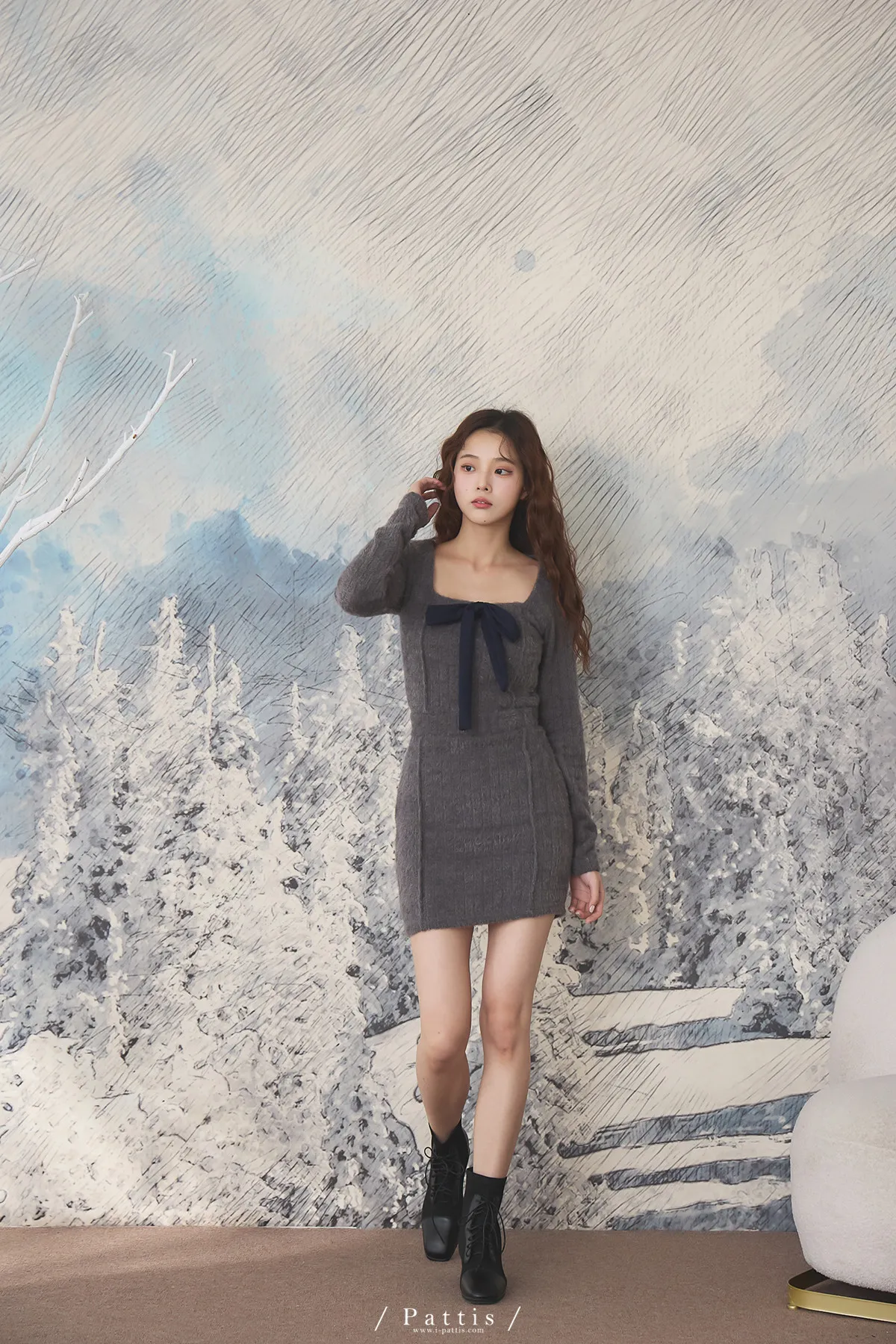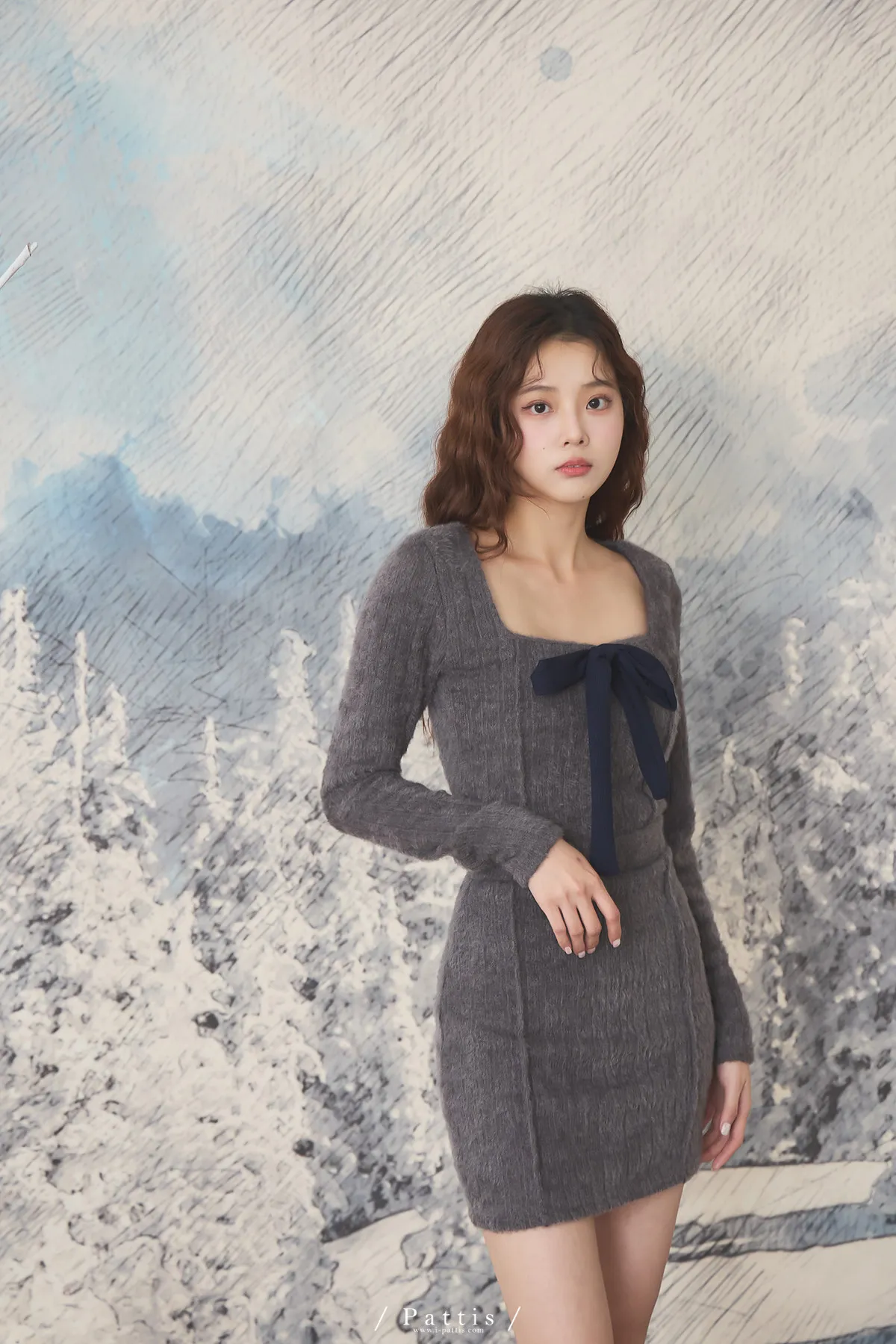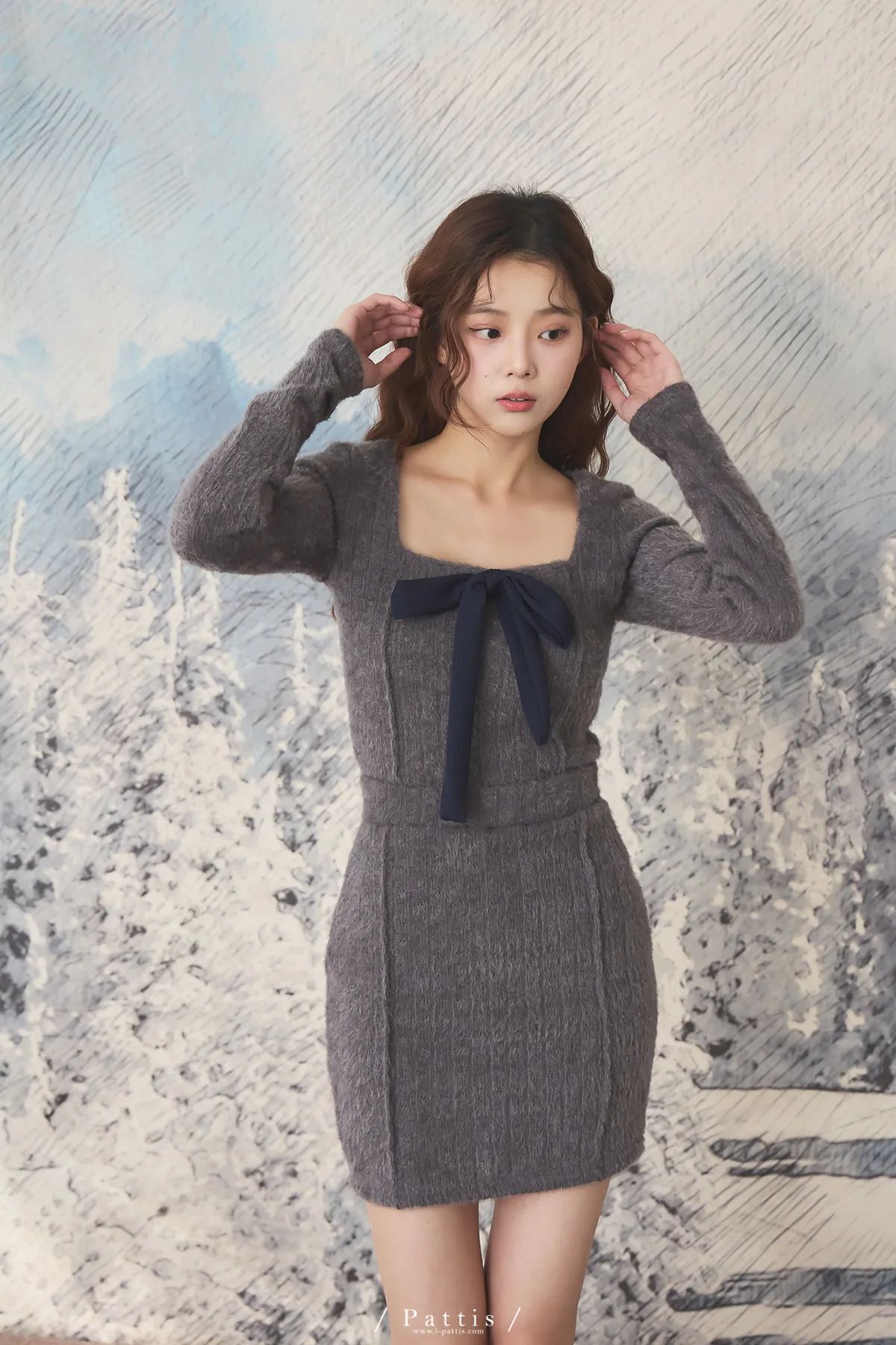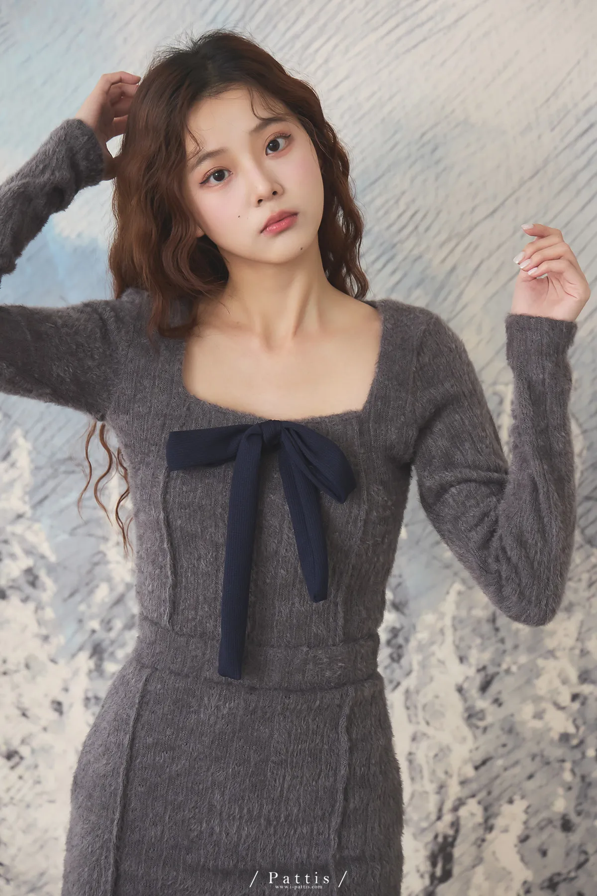 (現貨)甜美超載中 | 軟毛薄料彈性蝴蝶結上衣+壓褶短裙set(藍灰)