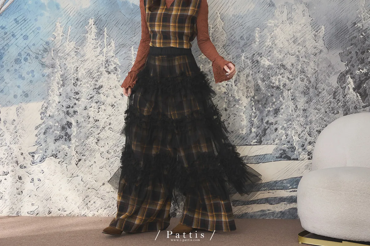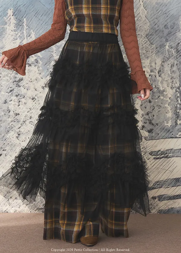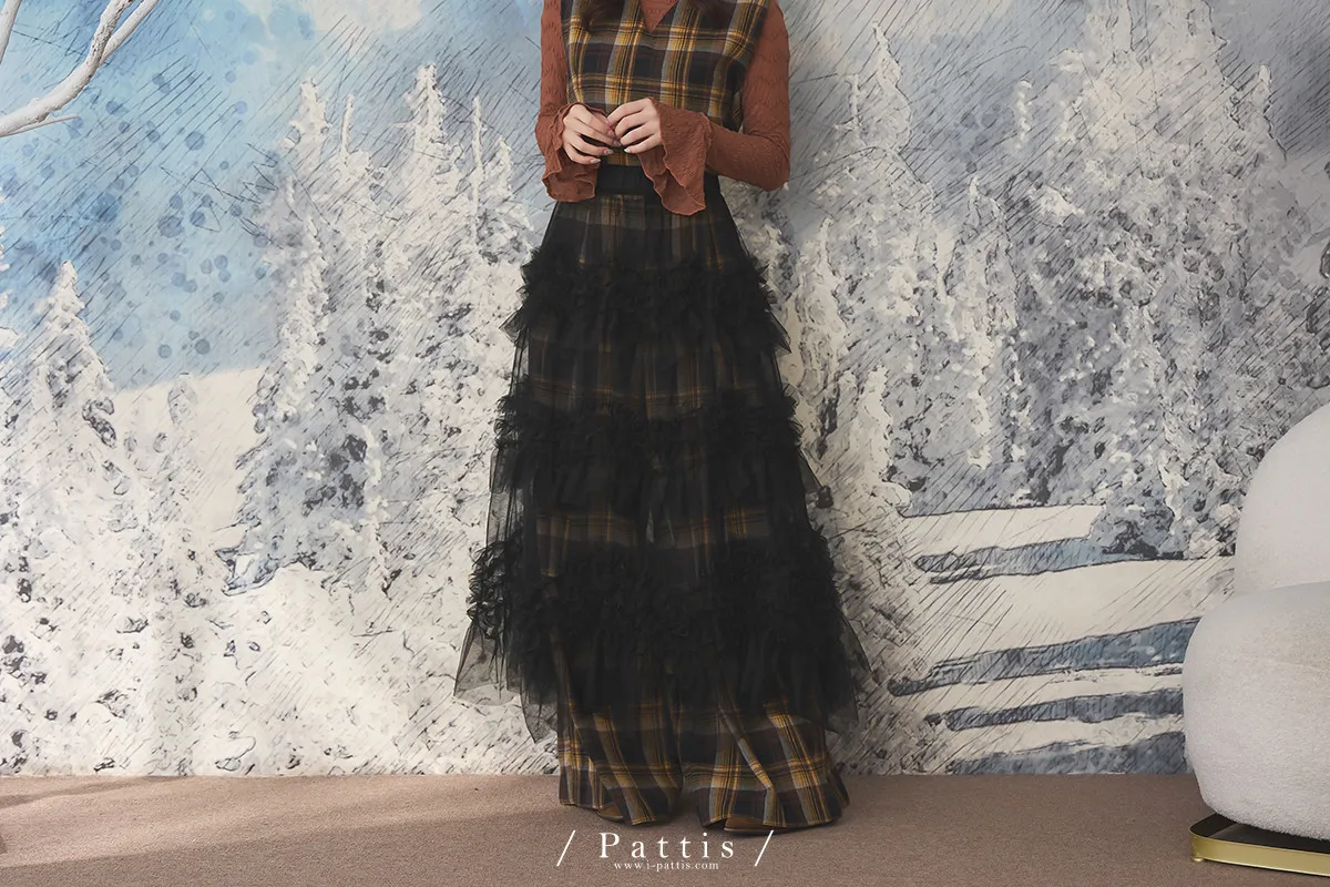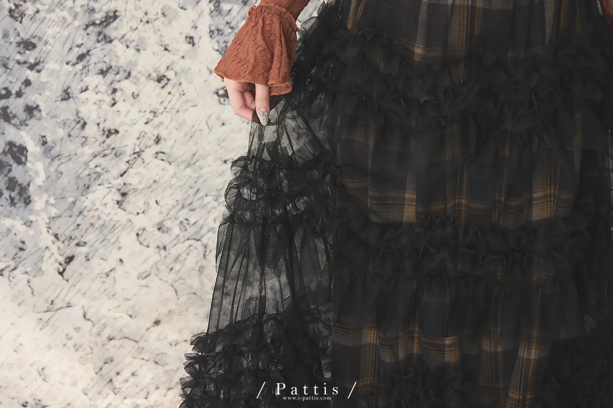沒有難題的戀情 | 透肌抓皺蛋糕網紗長裙(黑)