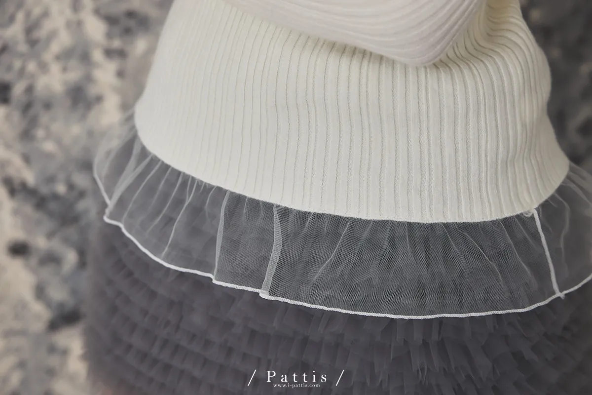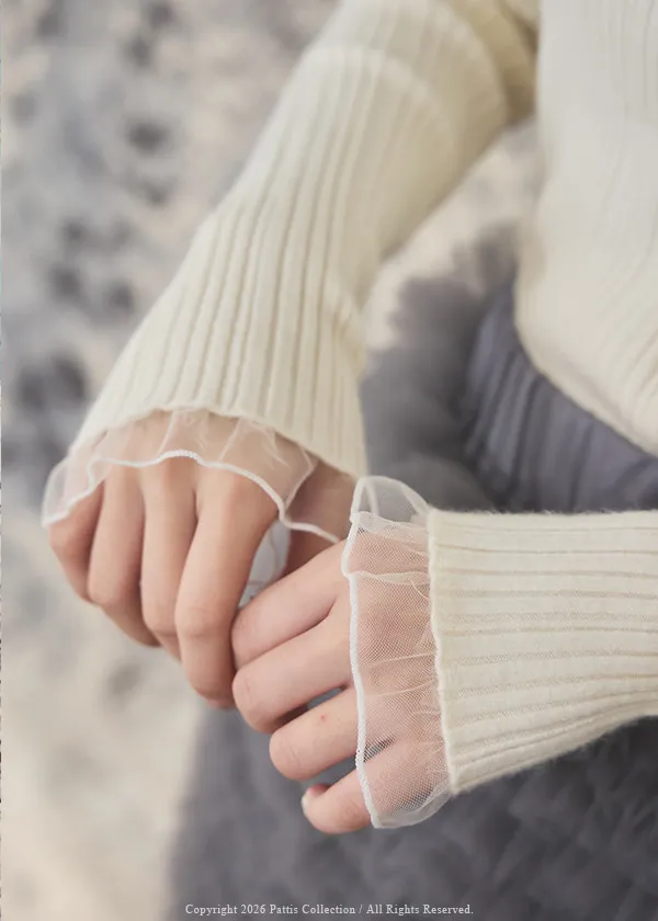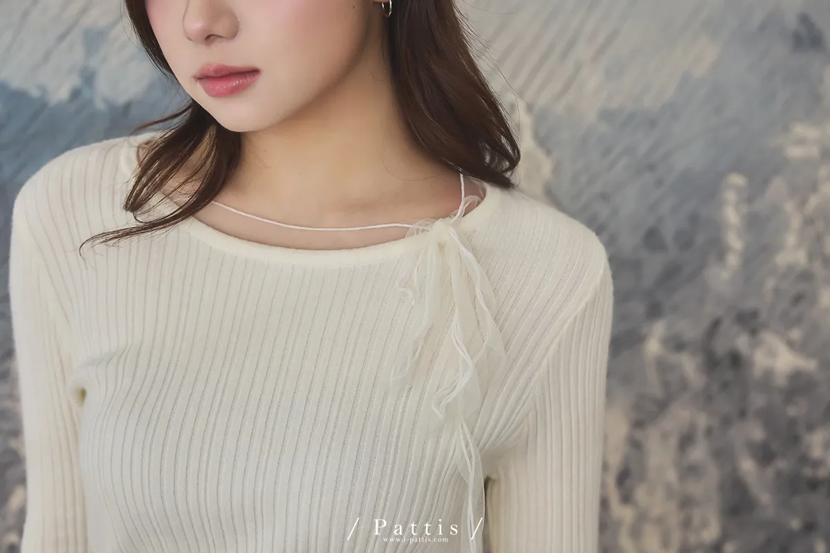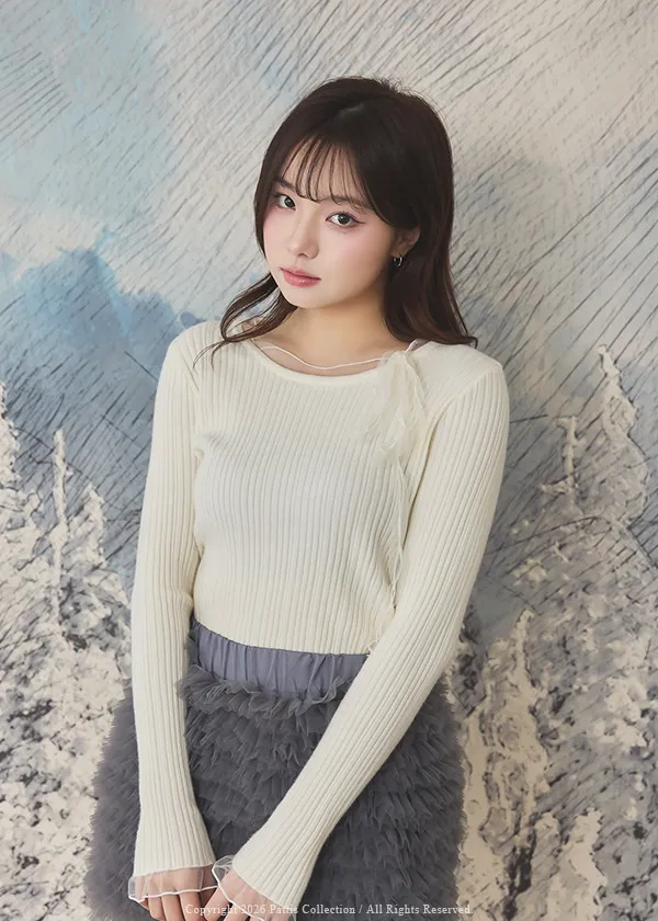 (限量現貨)*特*網紗蝴蝶結拚接薄針織上衣(米白)