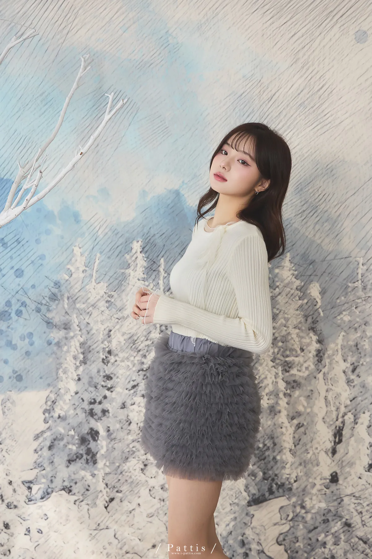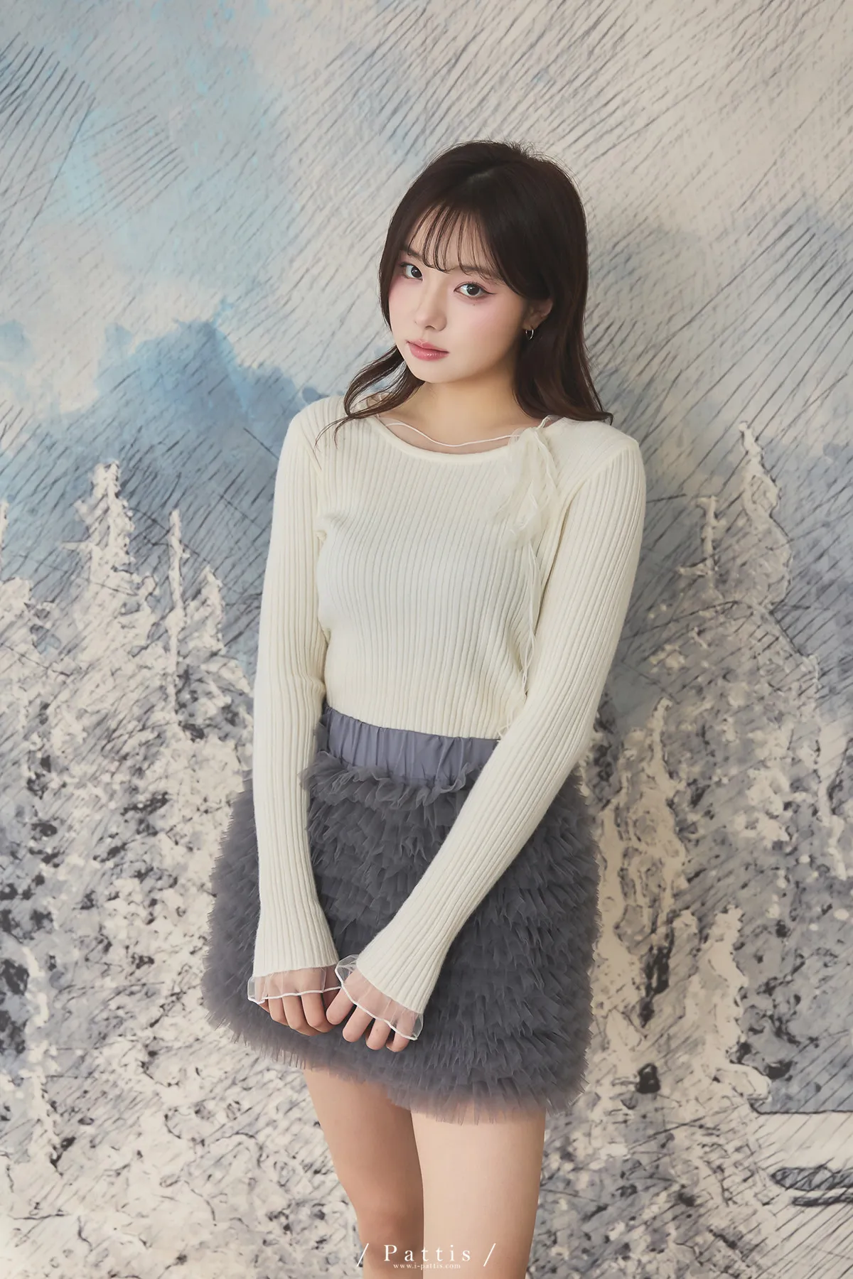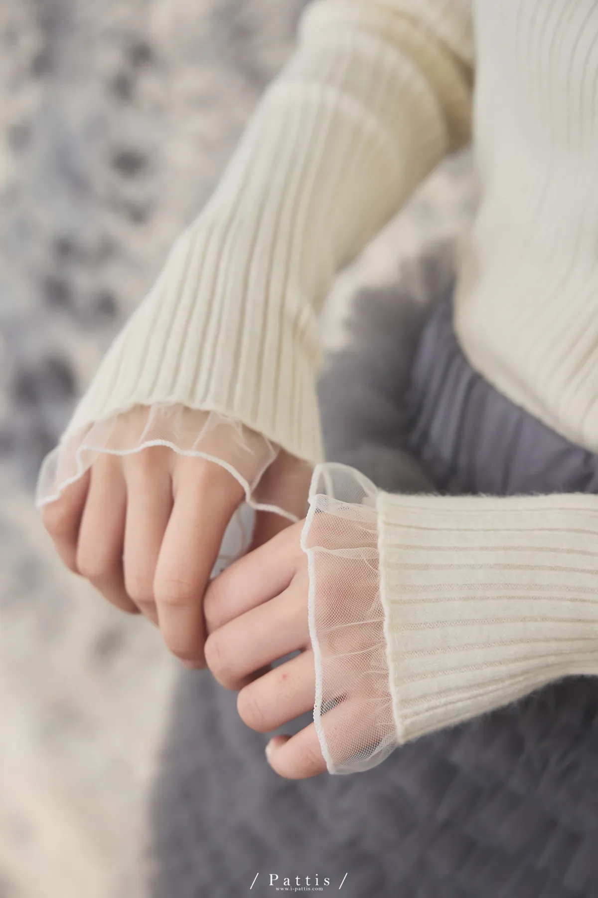 (限量現貨)*特*網紗蝴蝶結拚接薄針織上衣(米白)