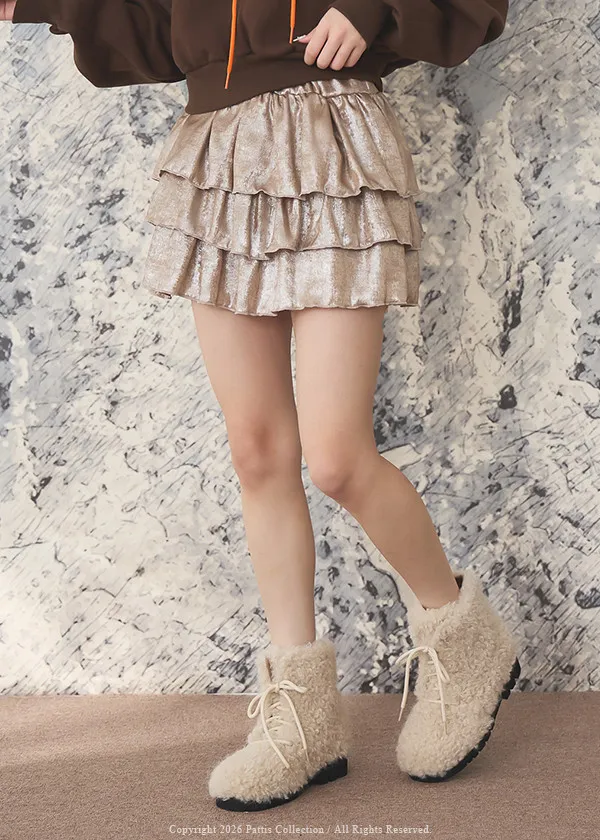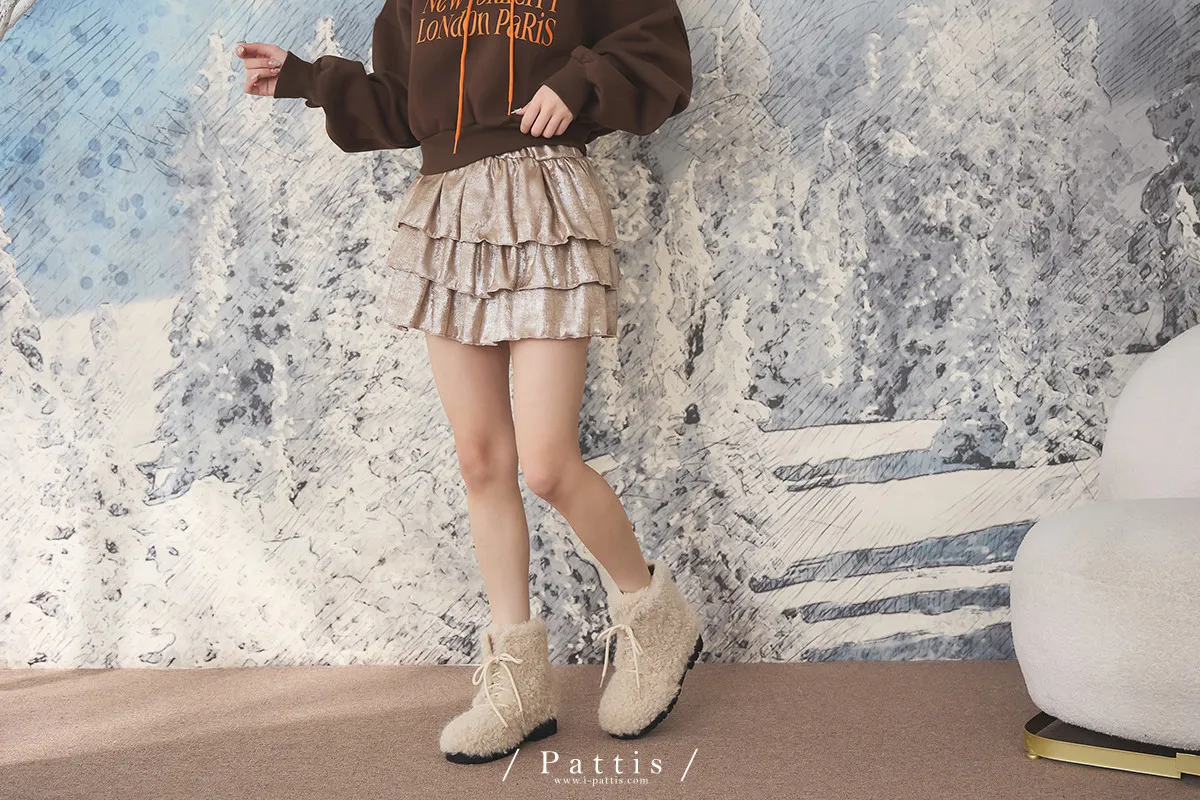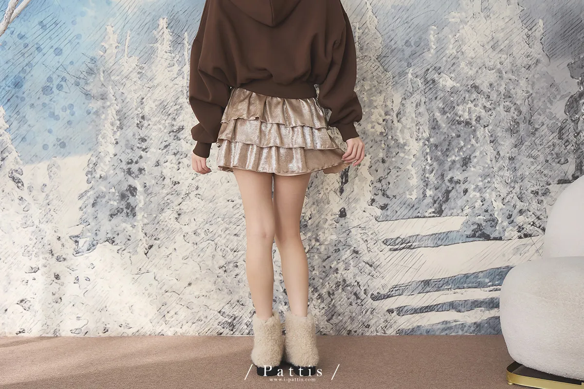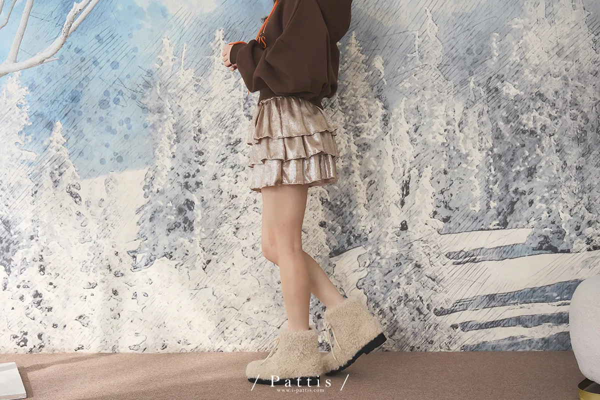 最初的聚光燈 | 金屬光澤感內襯褲蛋糕短裙(粉杏)